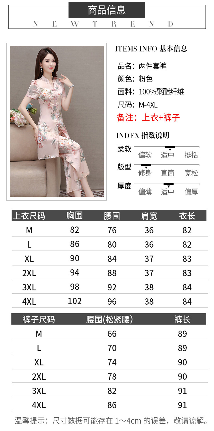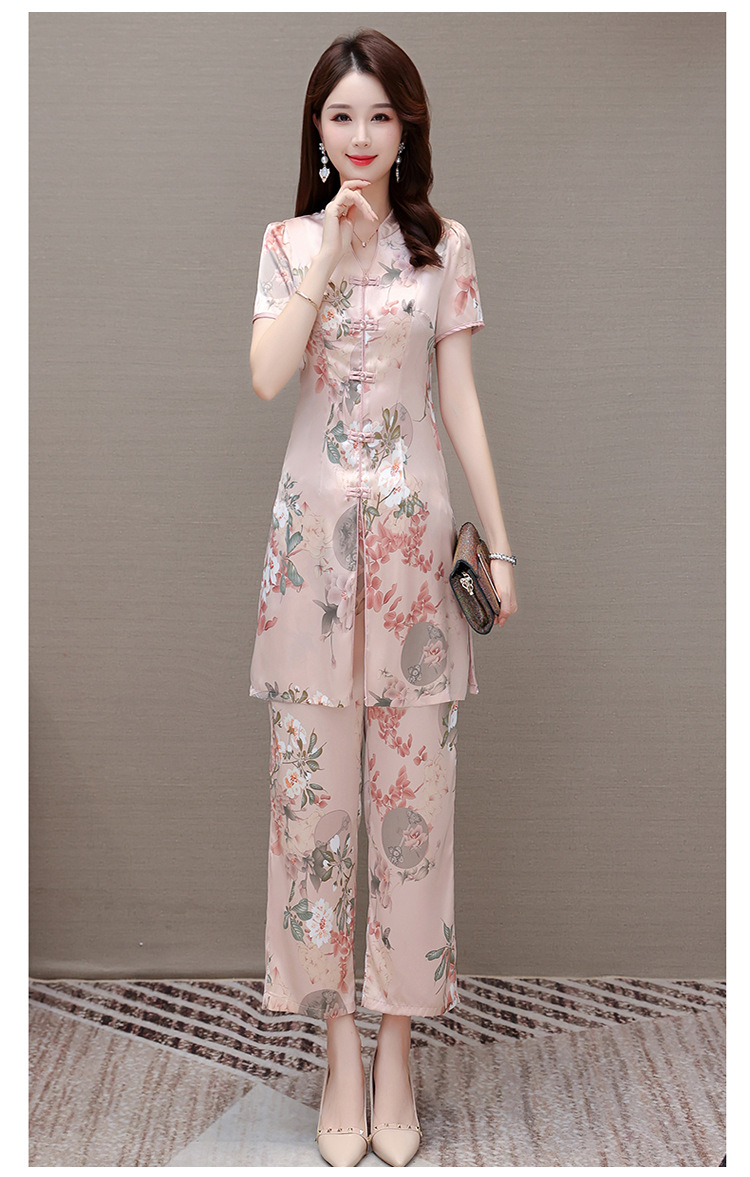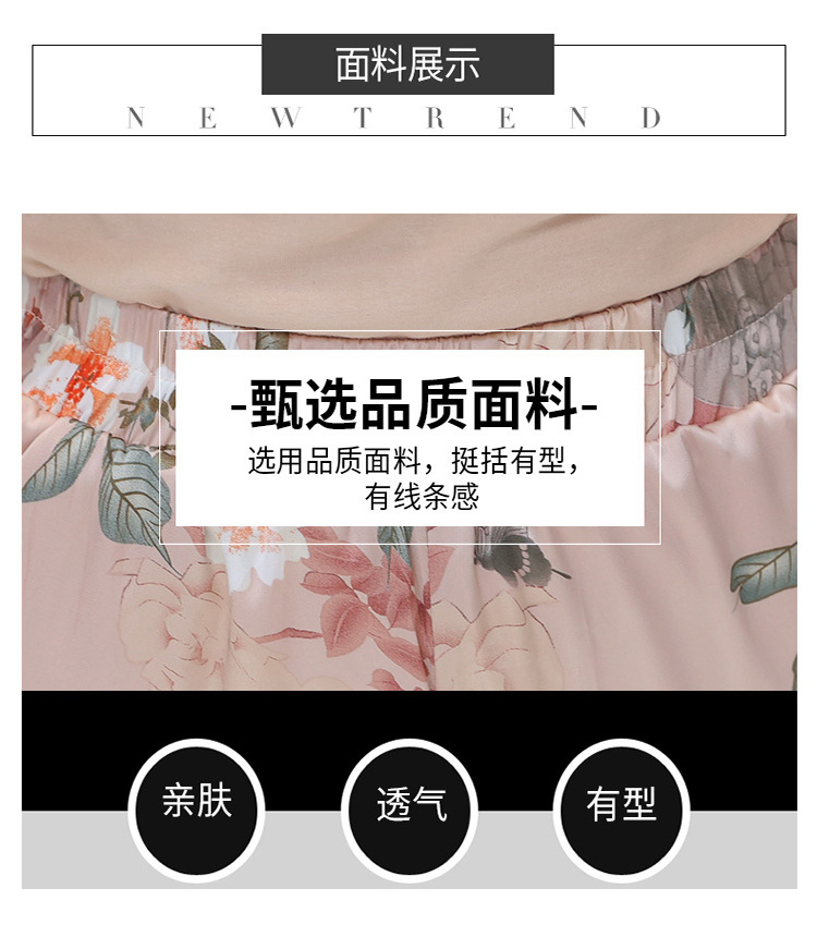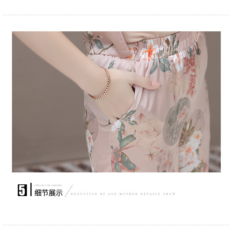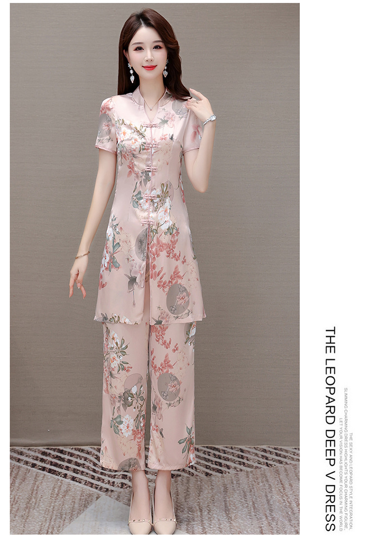 夏季新款,复古长袖直筒长裤妈妈装休闲两件印花套裤装QYM-TYP-A618-Y