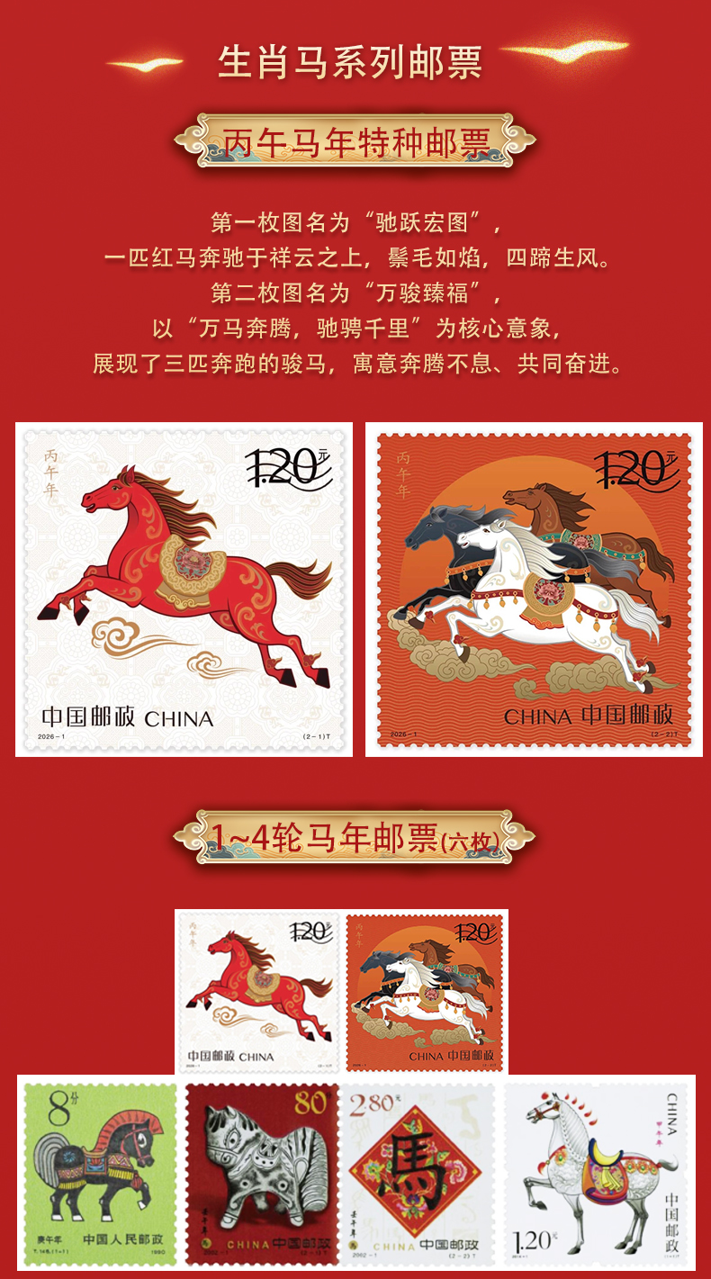 【1月中下旬陆续发货】【马跃紫禁】马年珍藏册,福马迎新春2026马年纪念钞币马年邮票,紫禁文创金箔钞手机贴大套装
