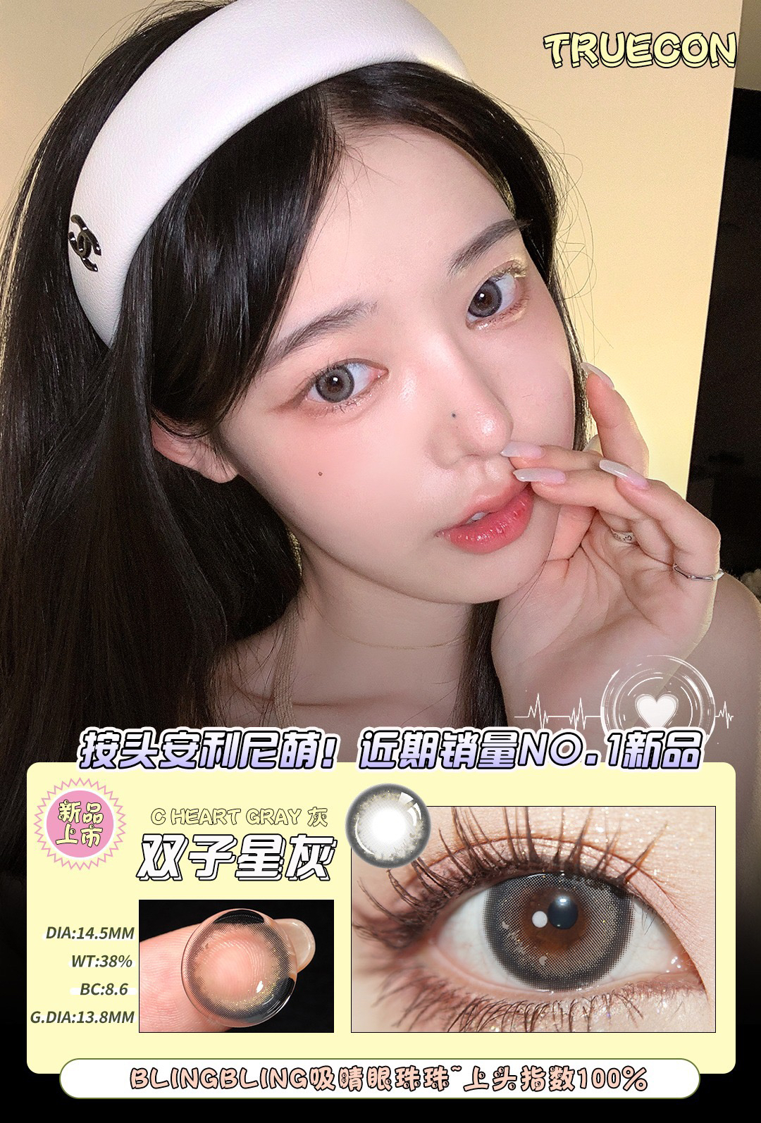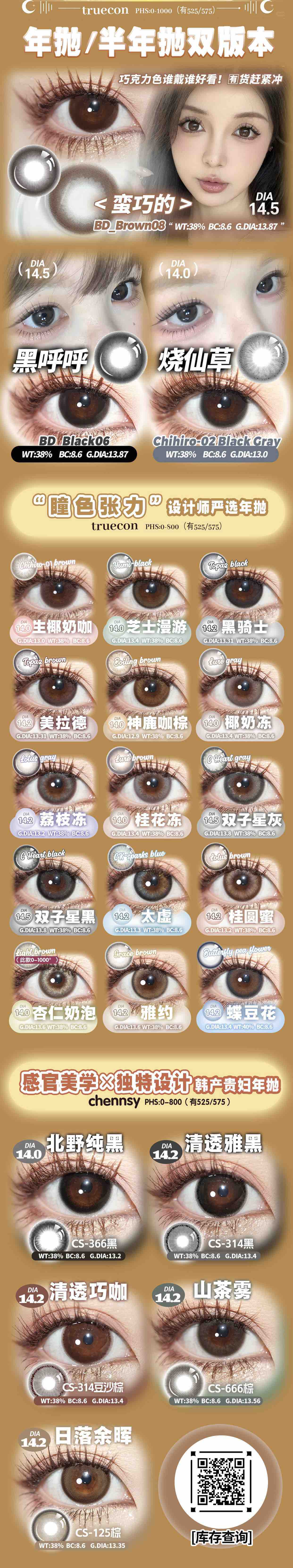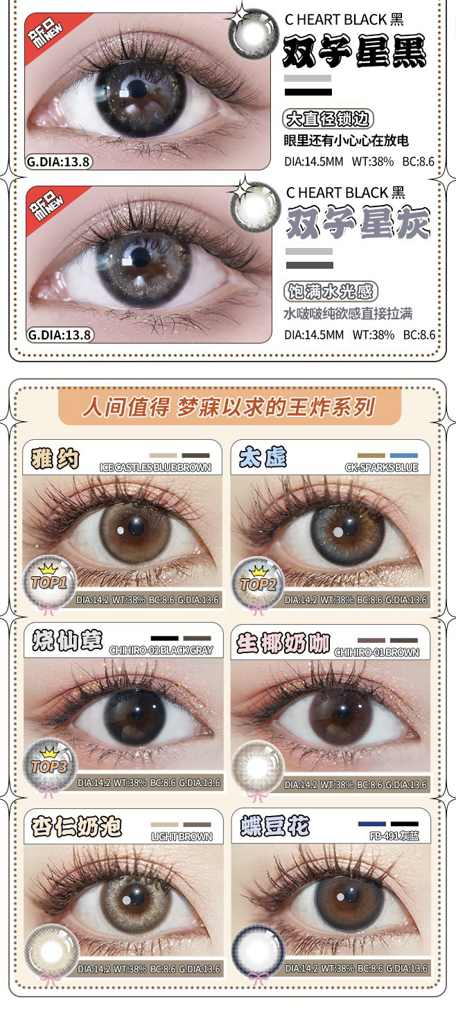 truecon韩产年抛/半年抛梦幻香草/暗夜玫瑰/雅约棕灰蓝绿美瞳