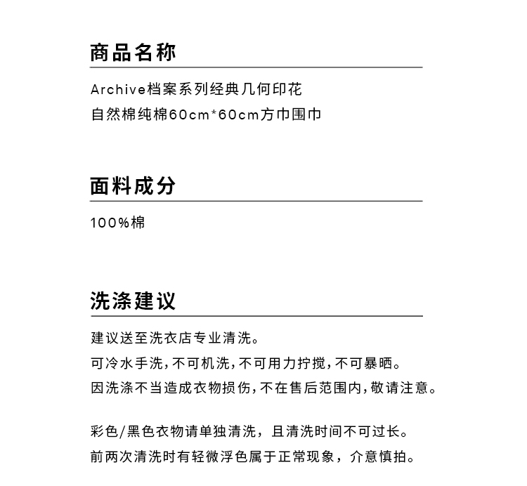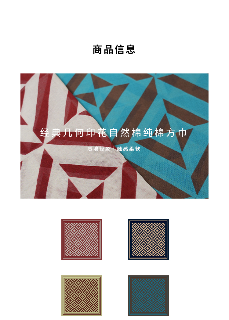HIDEMI Archive档案系列经典几何印花自然棉纯棉60cm*60cm方巾围巾