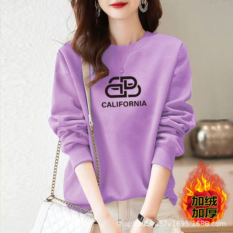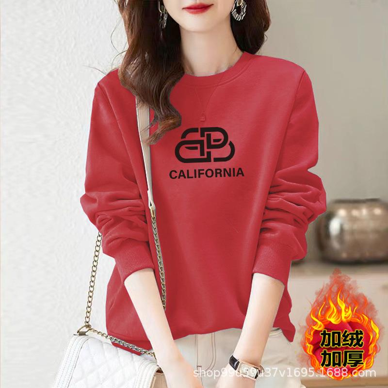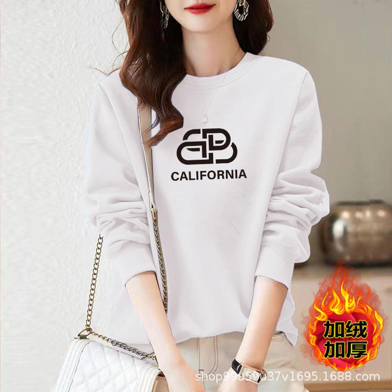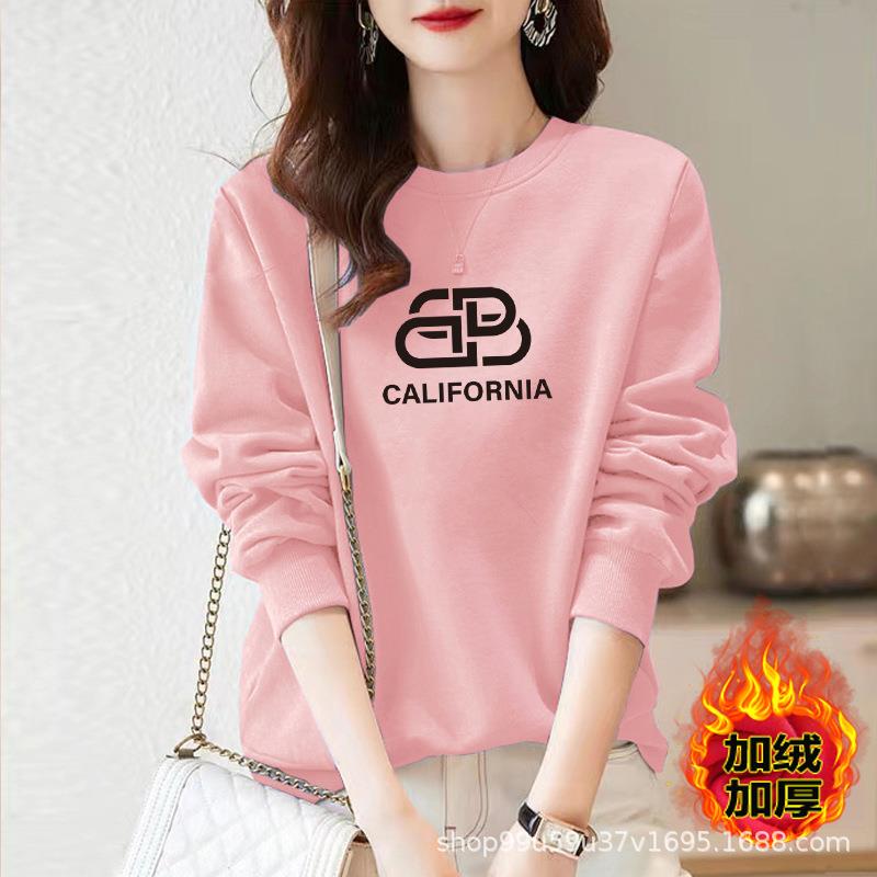 加绒女式棉质圆领宽松卫衣休闲运动衣显瘦时尚字母印花外套上衣