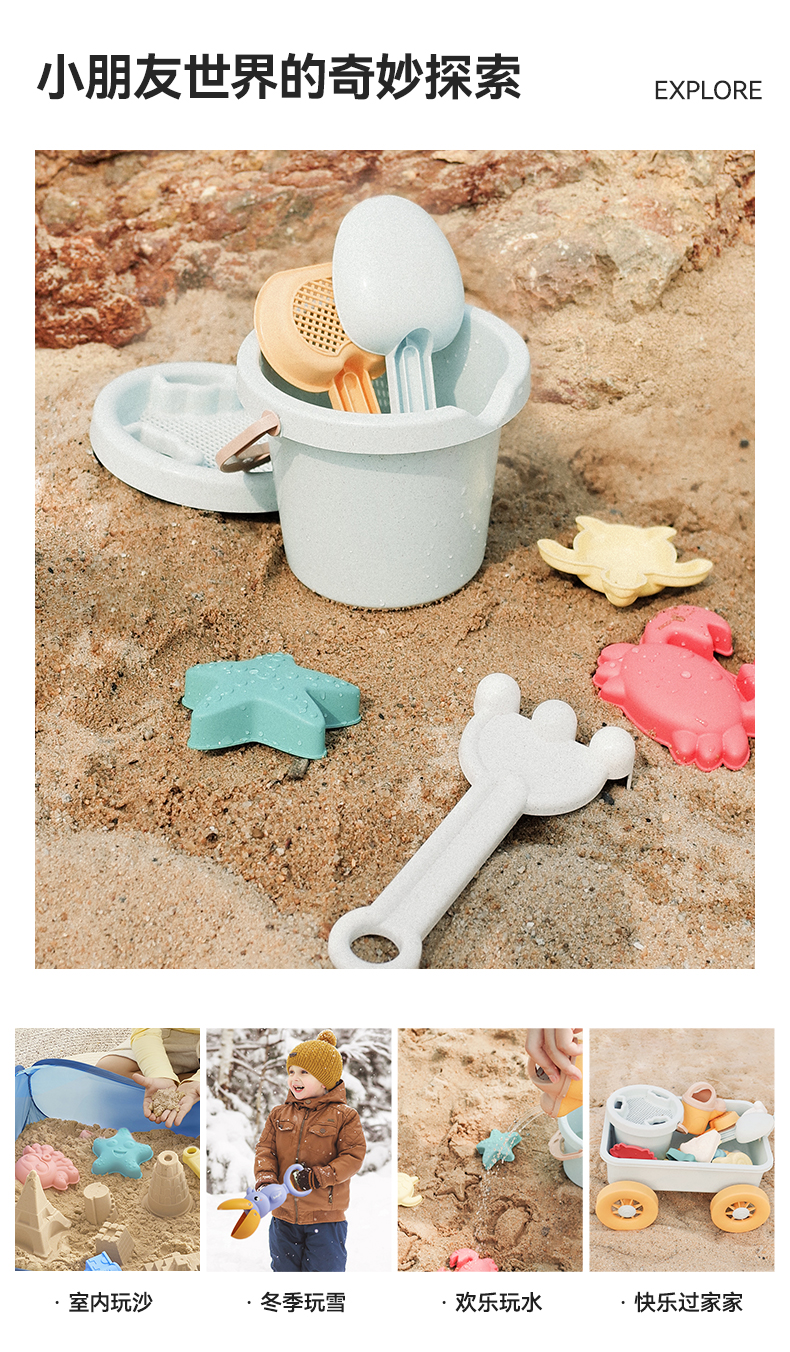 BABYGO沙滩玩具宝宝戏水玩具沙铲子水桶海边套装