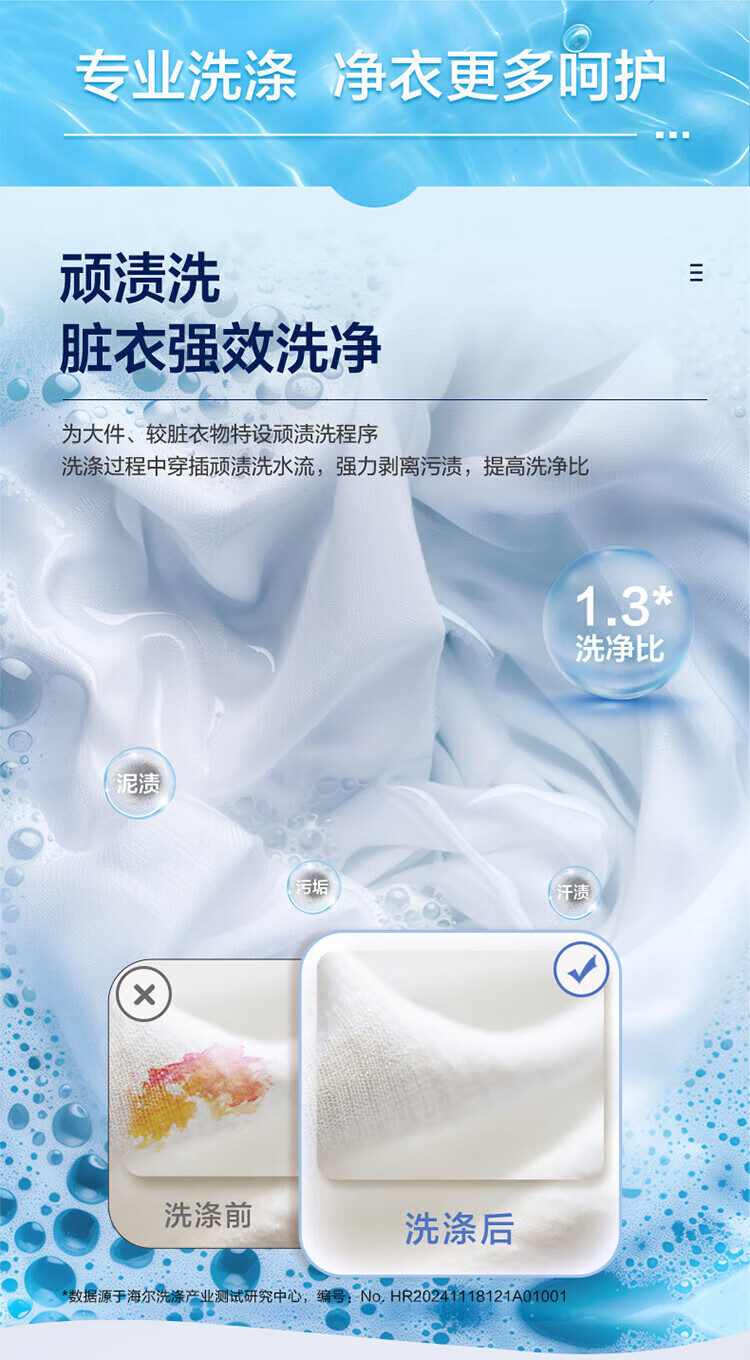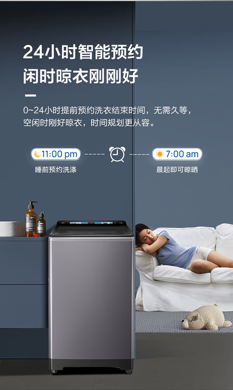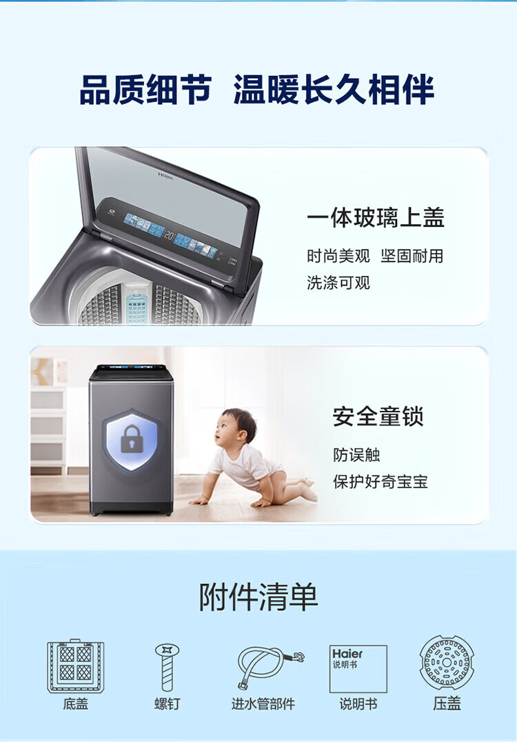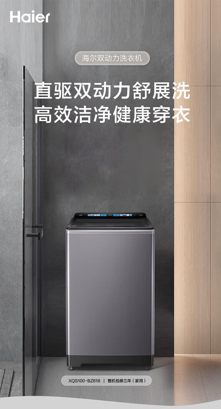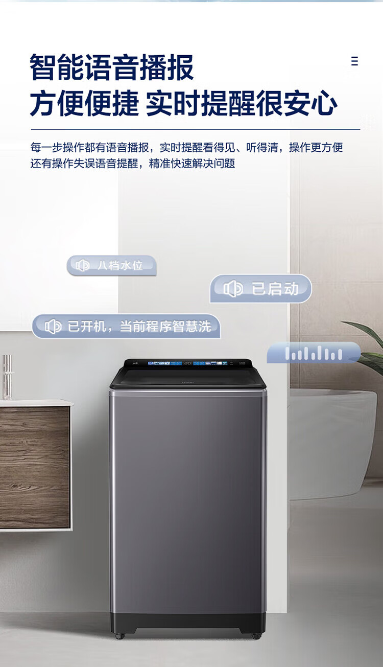海尔(Haier)10公斤全自动波轮洗衣机 直驱双动力防缠绕 一级变频 留水功能+语音播报+彩屏玻璃盖XQS100-BZ618