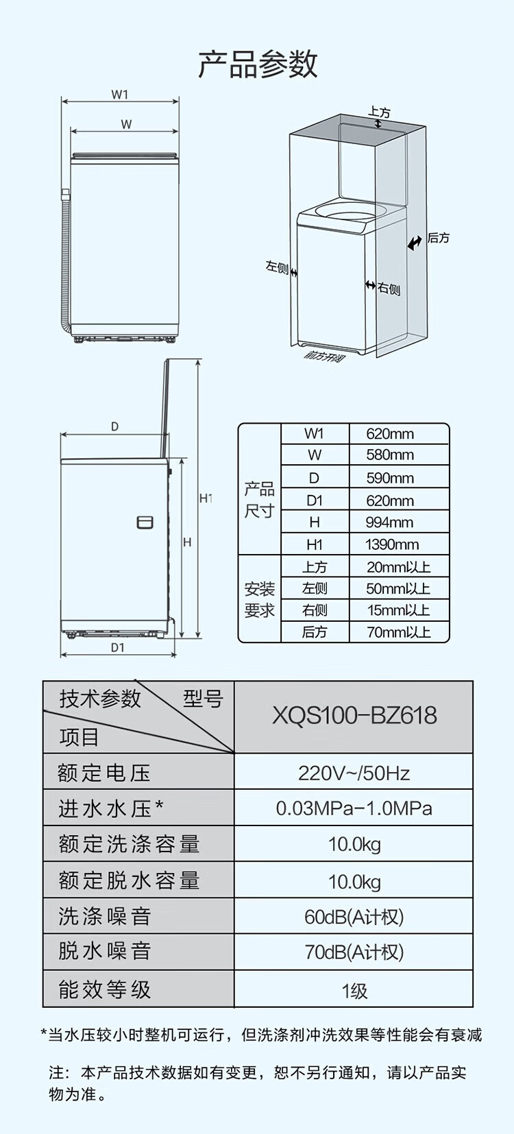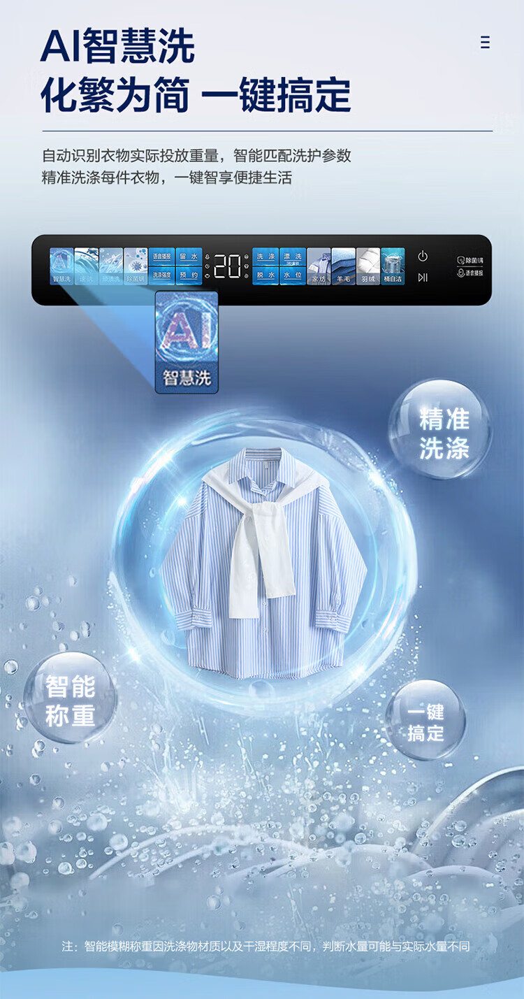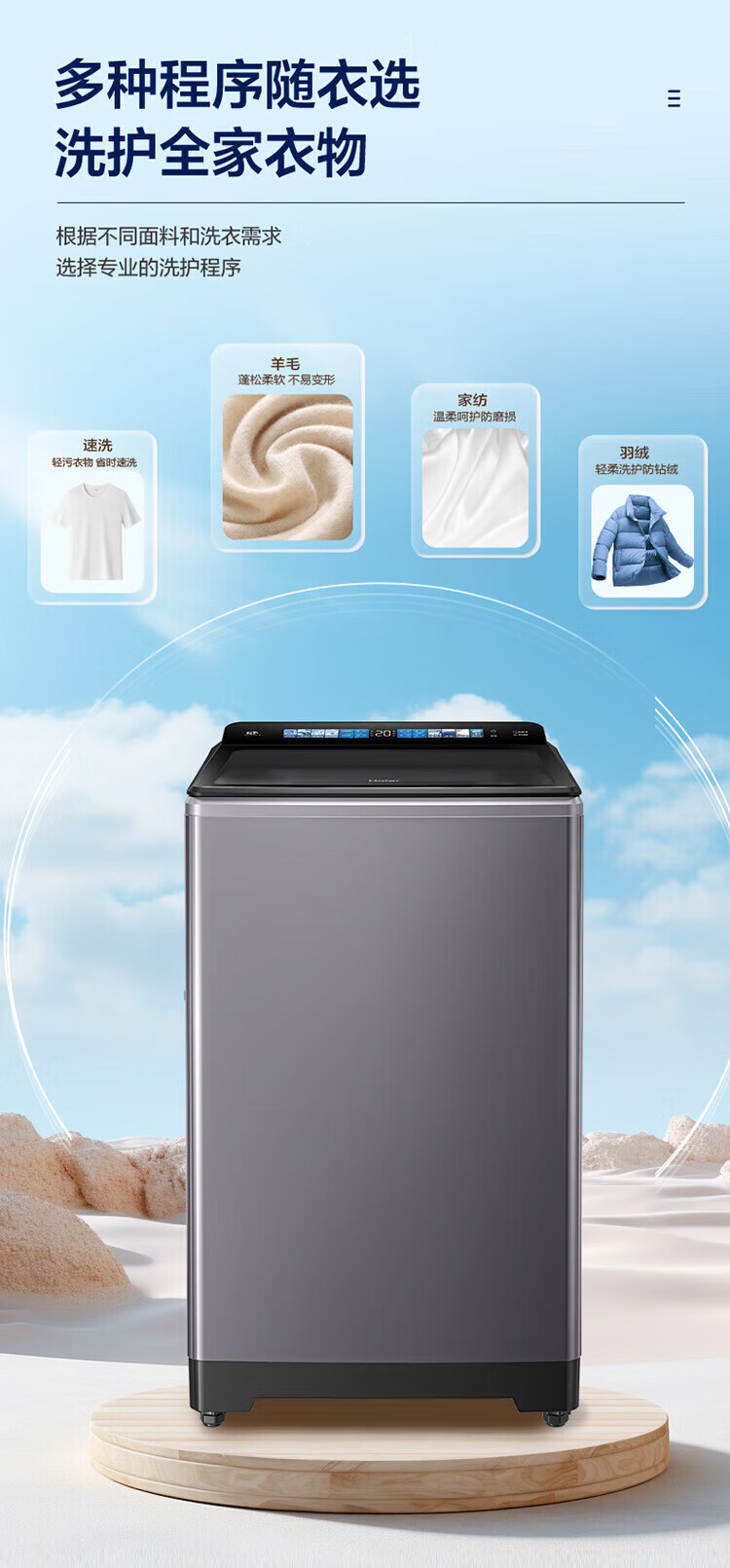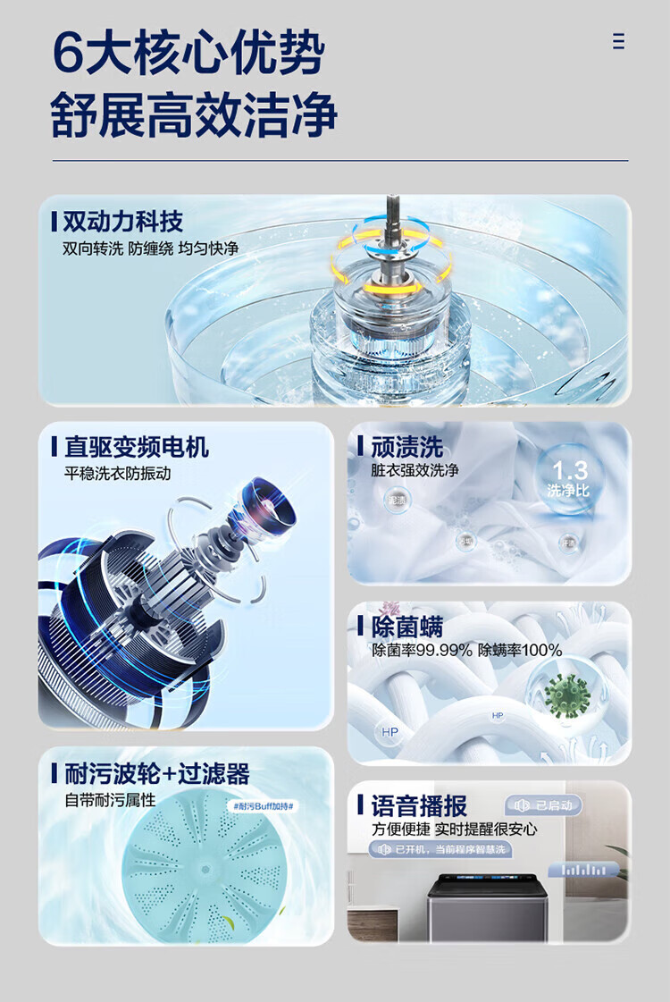 海尔(Haier)10公斤全自动波轮洗衣机 直驱双动力防缠绕 一级变频 留水功能+语音播报+彩屏玻璃盖XQS100-BZ618