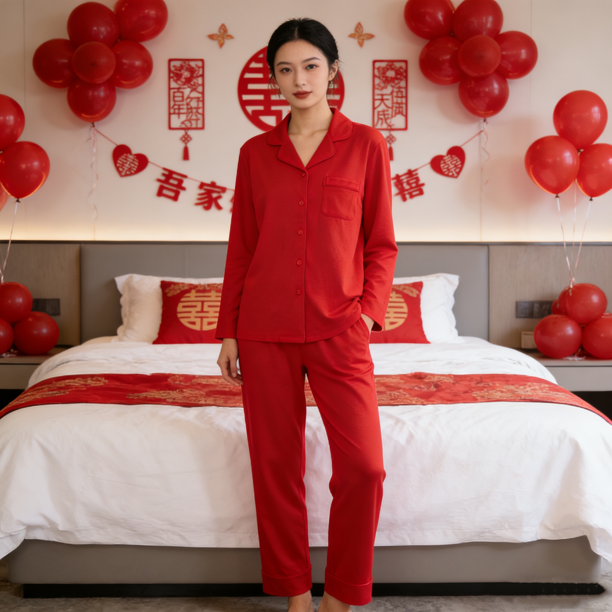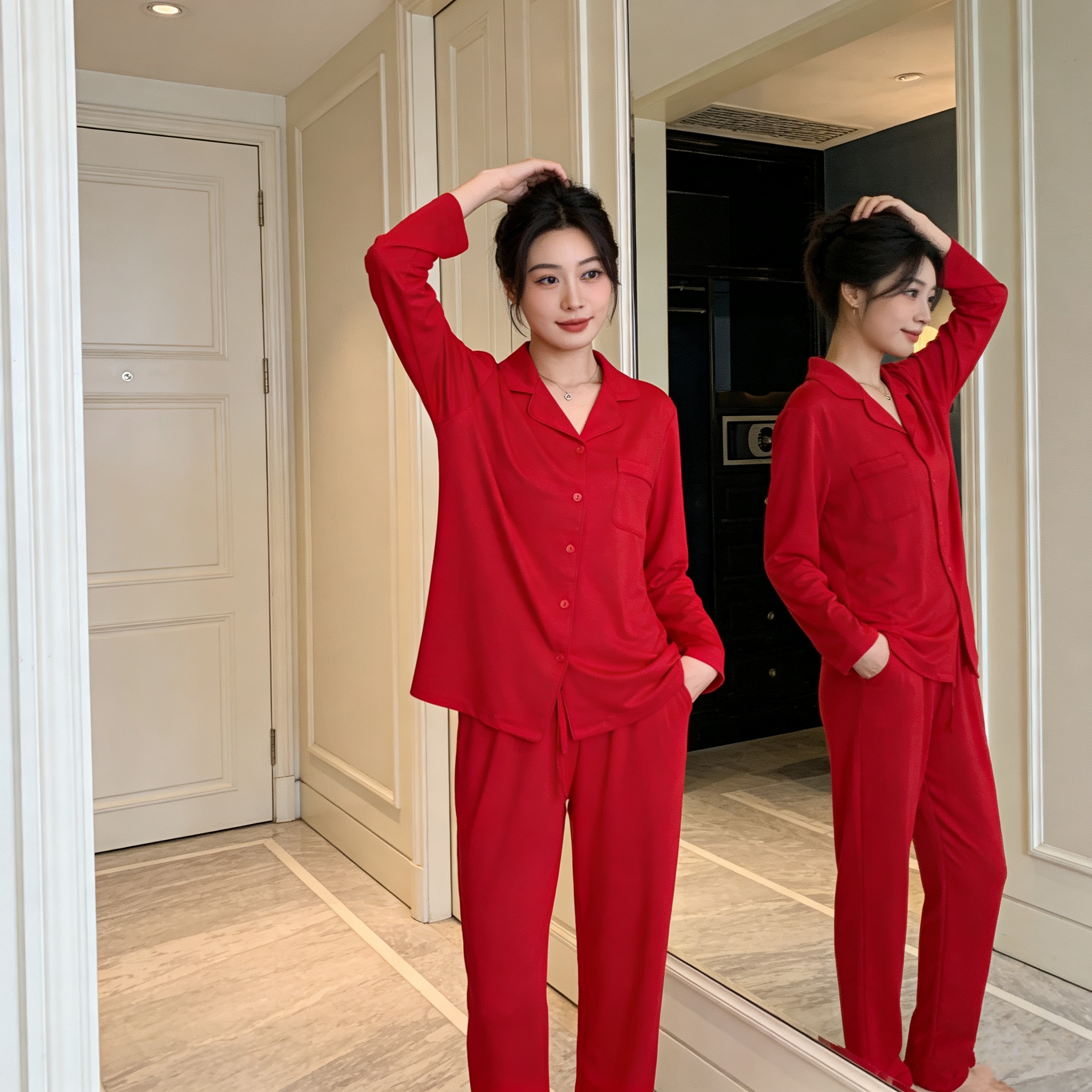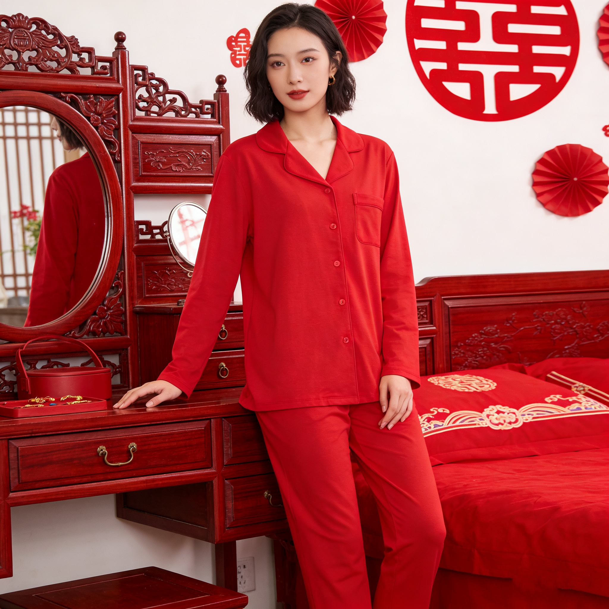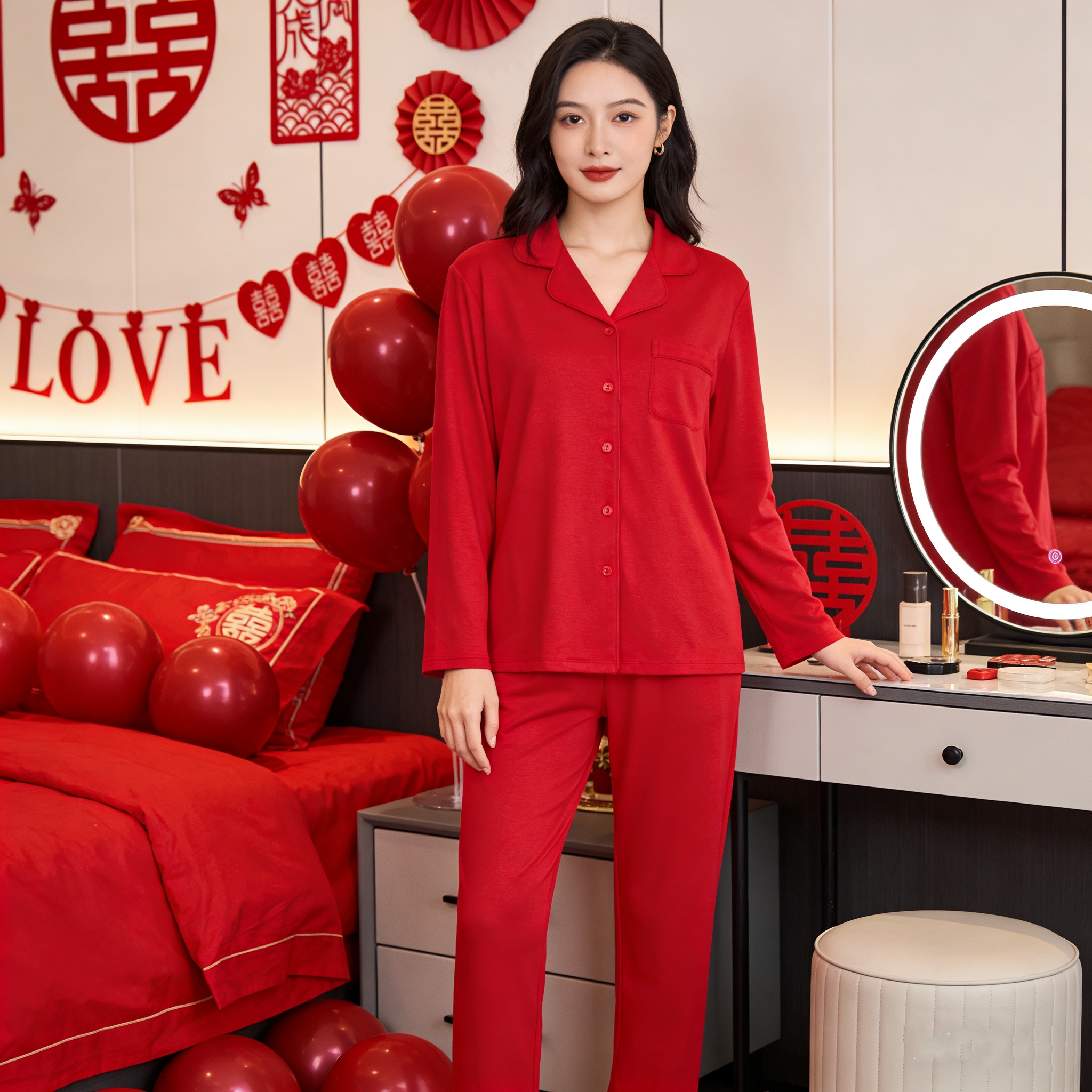【鸿运棉莫 红红火火】SCHIESSER德国舒雅棉莫代尔中国红女士家居服套装,专为喜庆的日子而生31/25976H