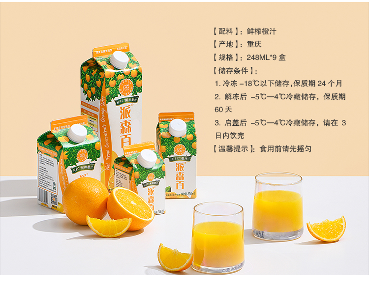 派森百鲜榨橙汁 锥汁压榨 果味醇正 营养健康鲜美果汁 酸甜解腻 多品种鲜橙组合 休闲聚会餐桌饮品