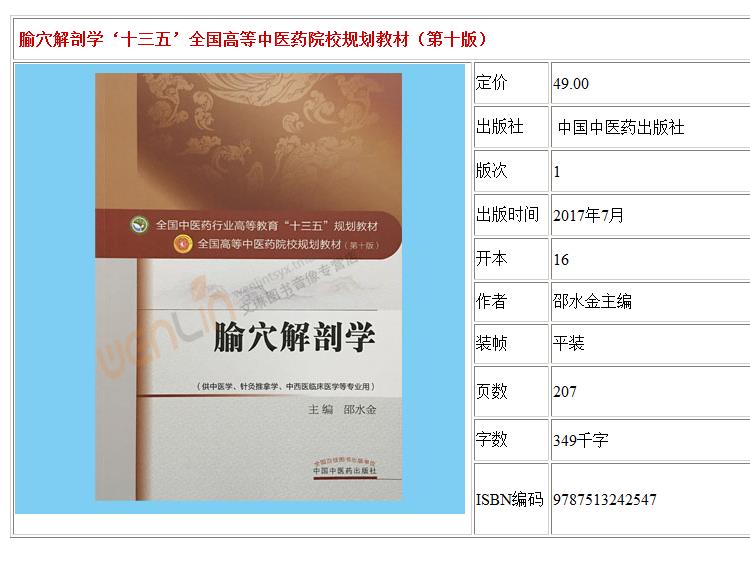 正版 腧穴解剖学 第10十版 邵水金主编 中医学 针灸推拿学 中西医临床医学等专业用 本科中医院校十三五规划教材中国中医药出版社