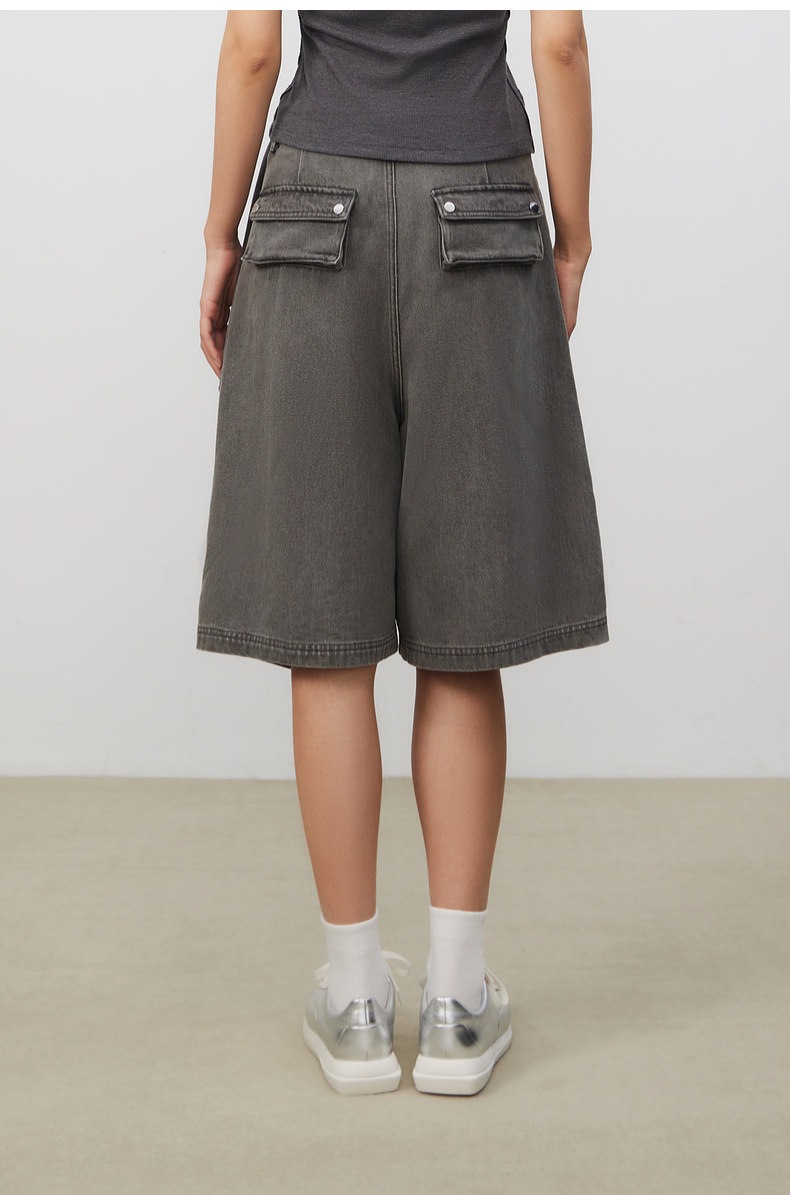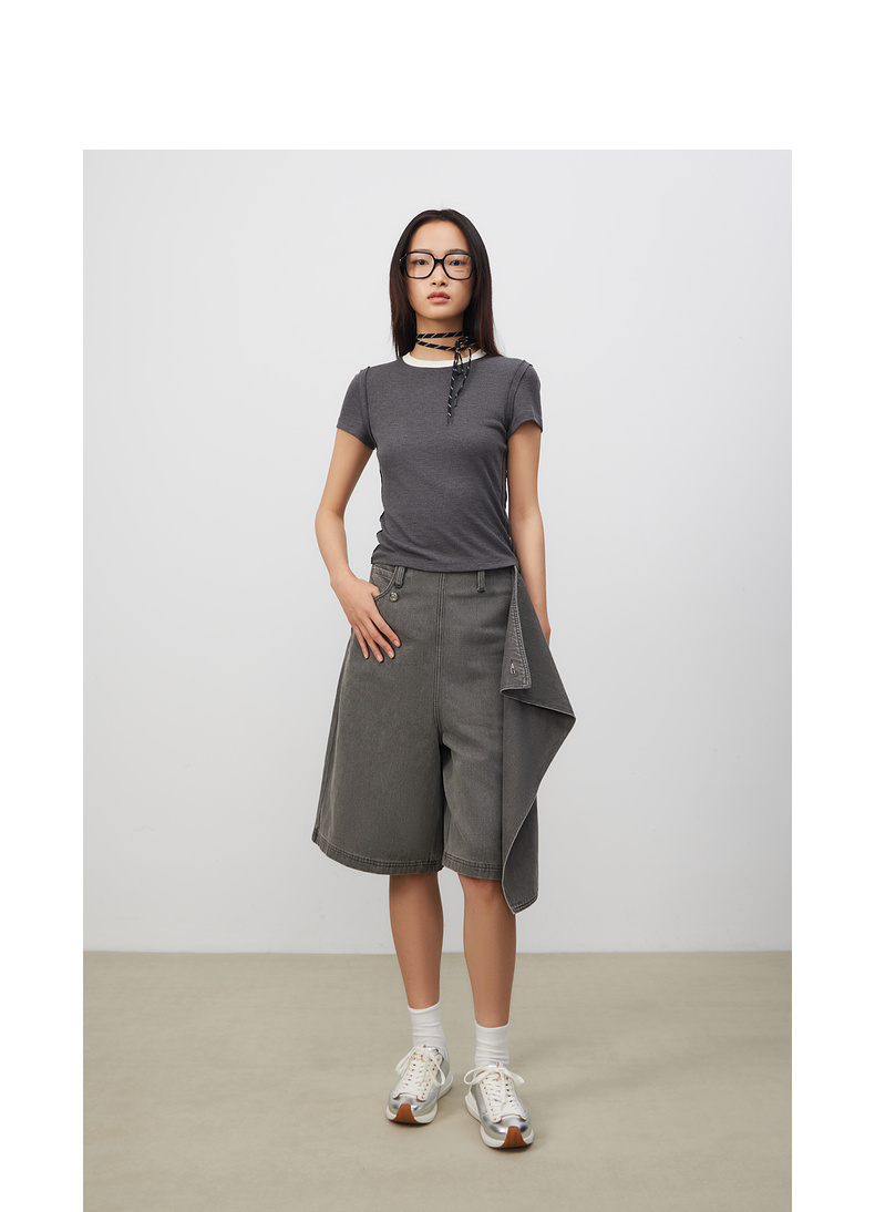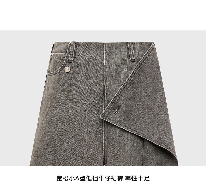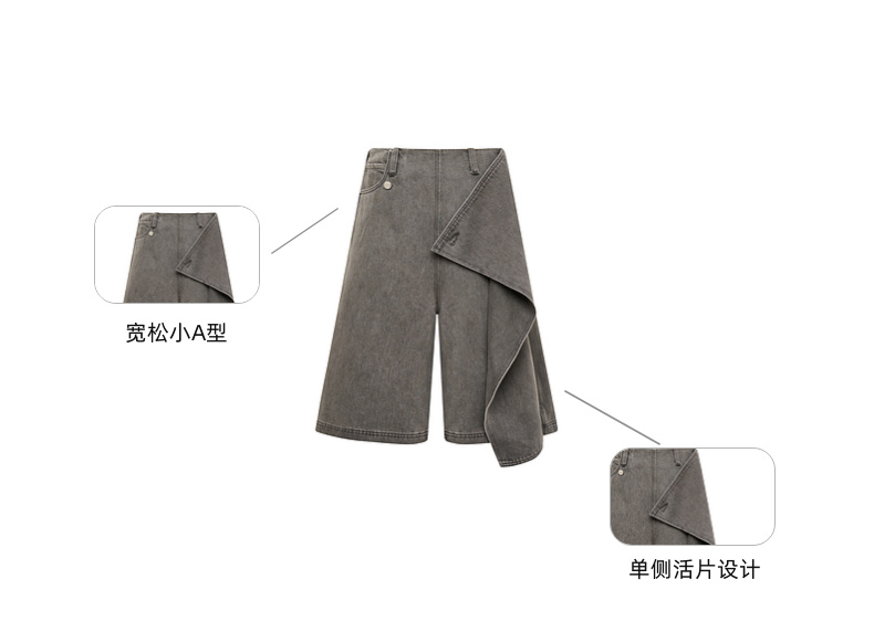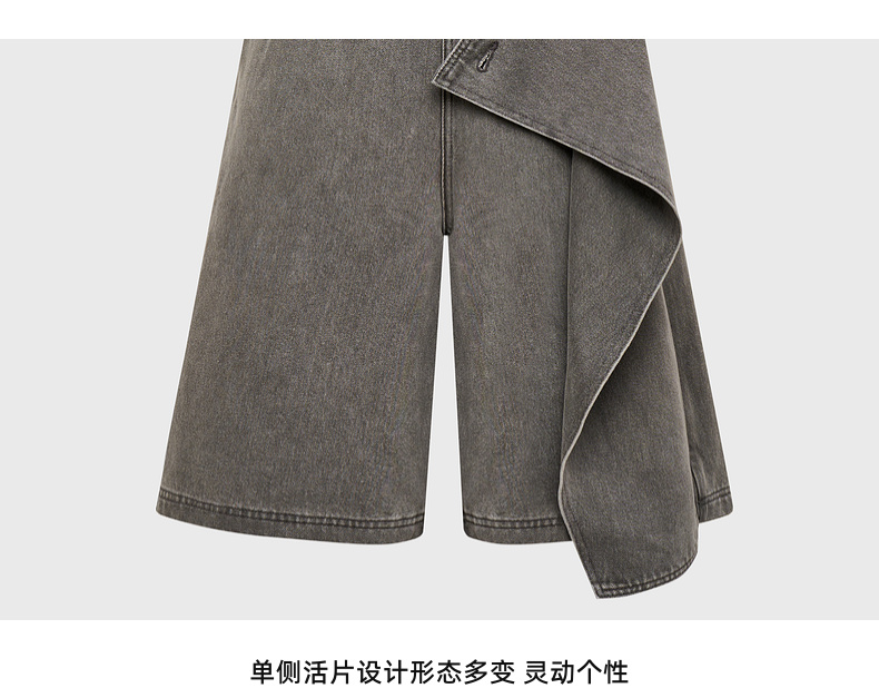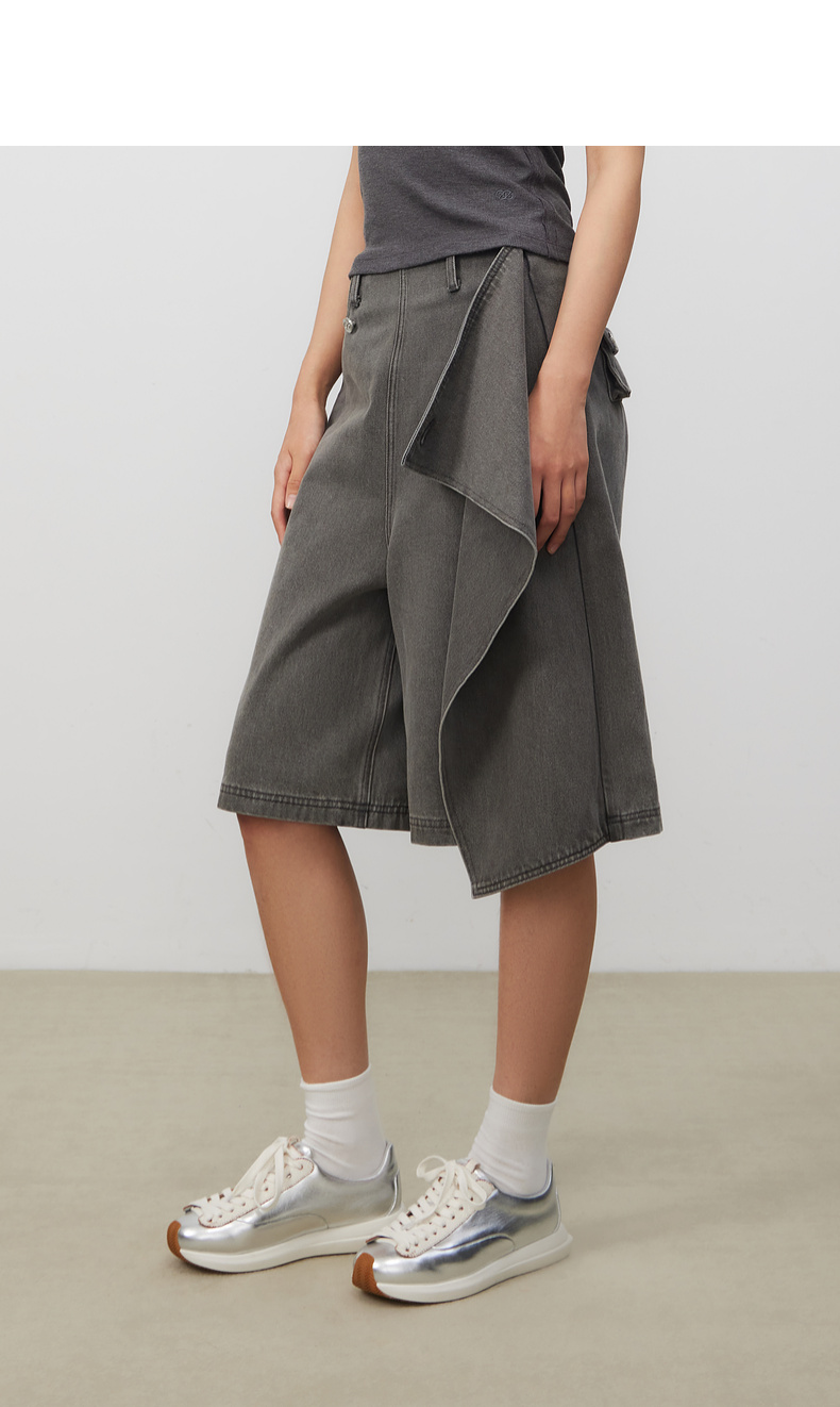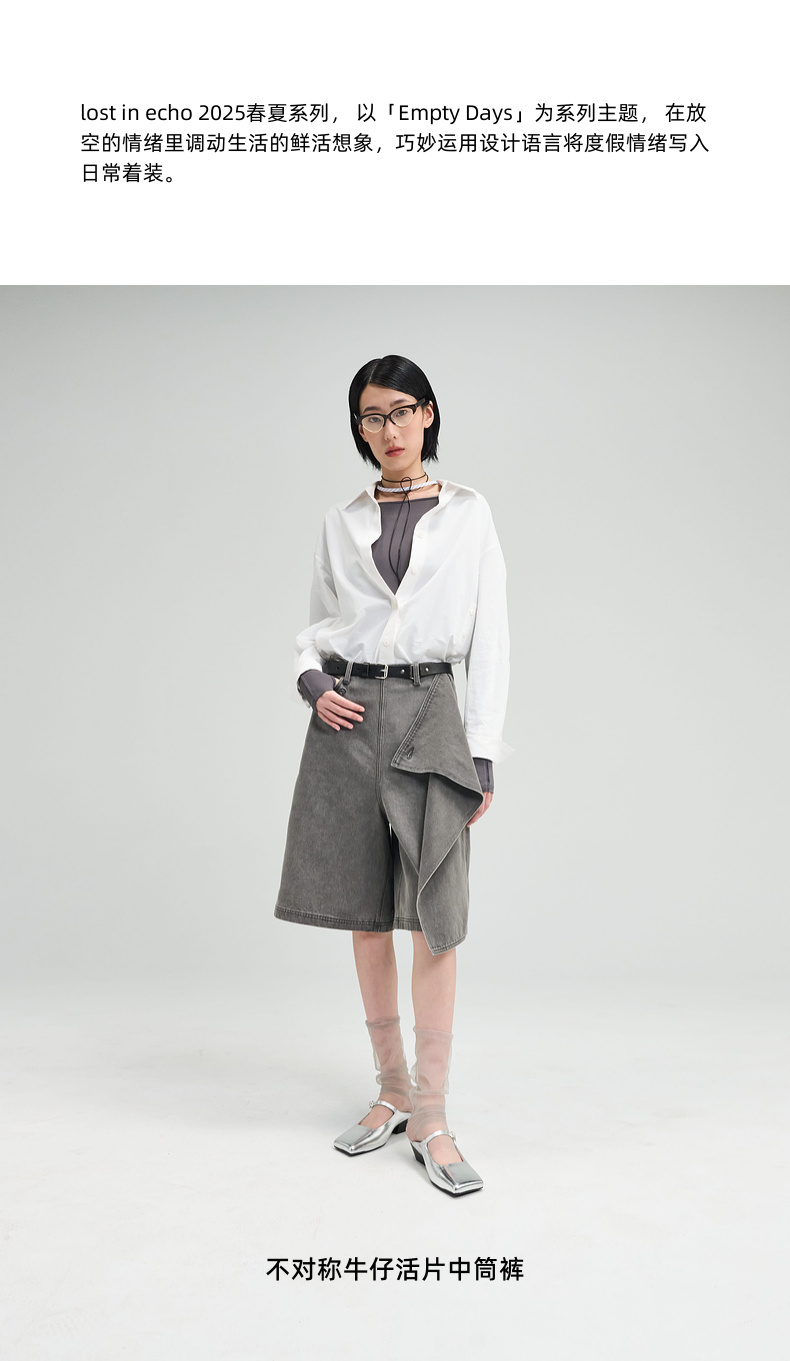 lost in echo2025春夏新款时髦不对称宽松A形牛仔活片中筒裤