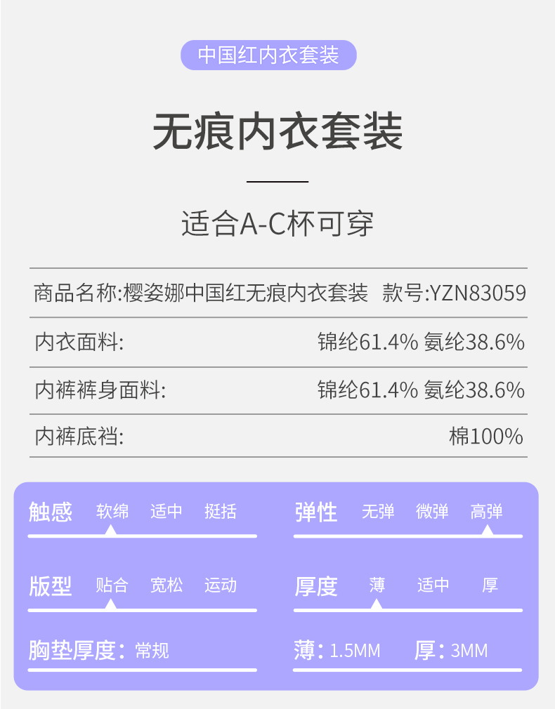 【内裤主面料】:61.5%锦纶,38.5%氨纶