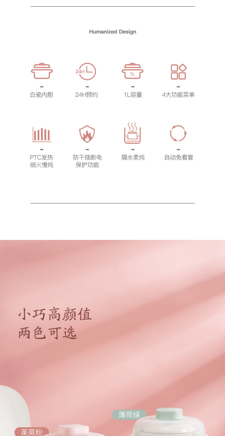 【家用电器】电炖锅-预约隔水陶瓷炖锅小家电迷你电炖盅养生炖汤锅