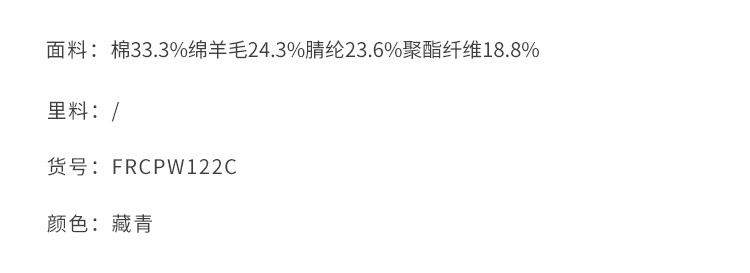 callisto藏青棉混纺针织裤 FRCPW122C