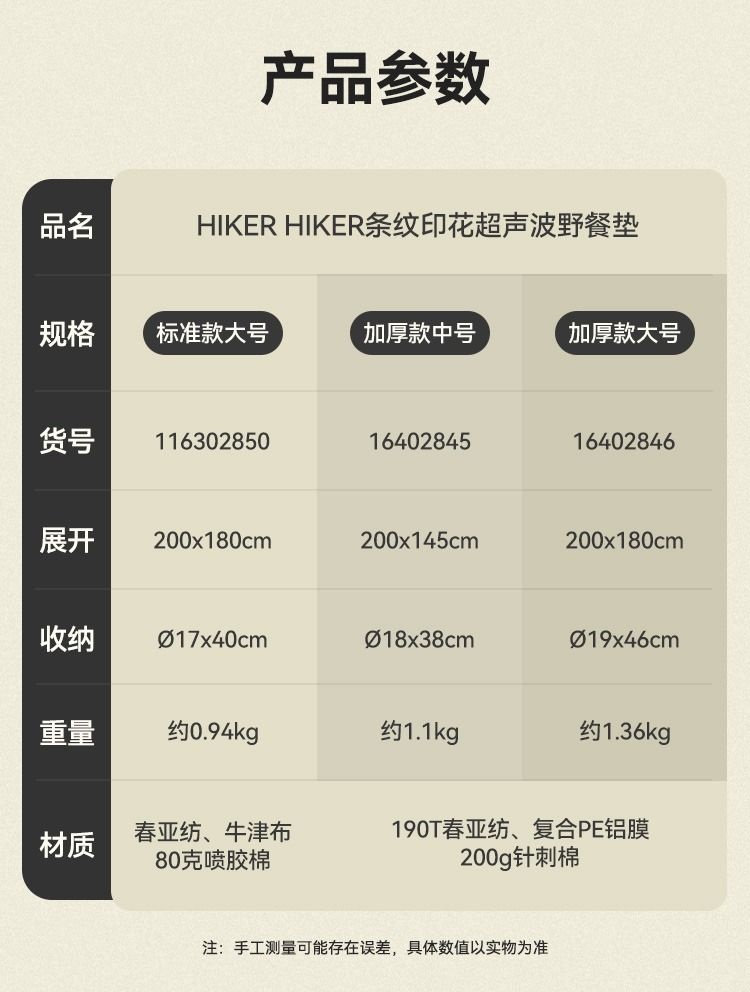 【HIKER】伯希和户外野餐垫露营防潮垫加厚超声波沙滩草坪地垫子