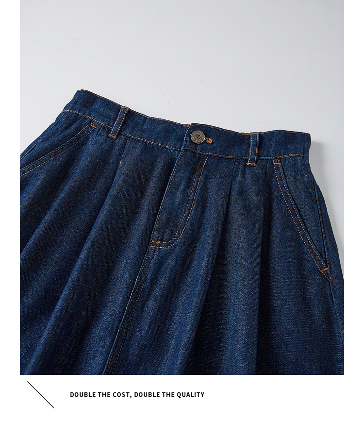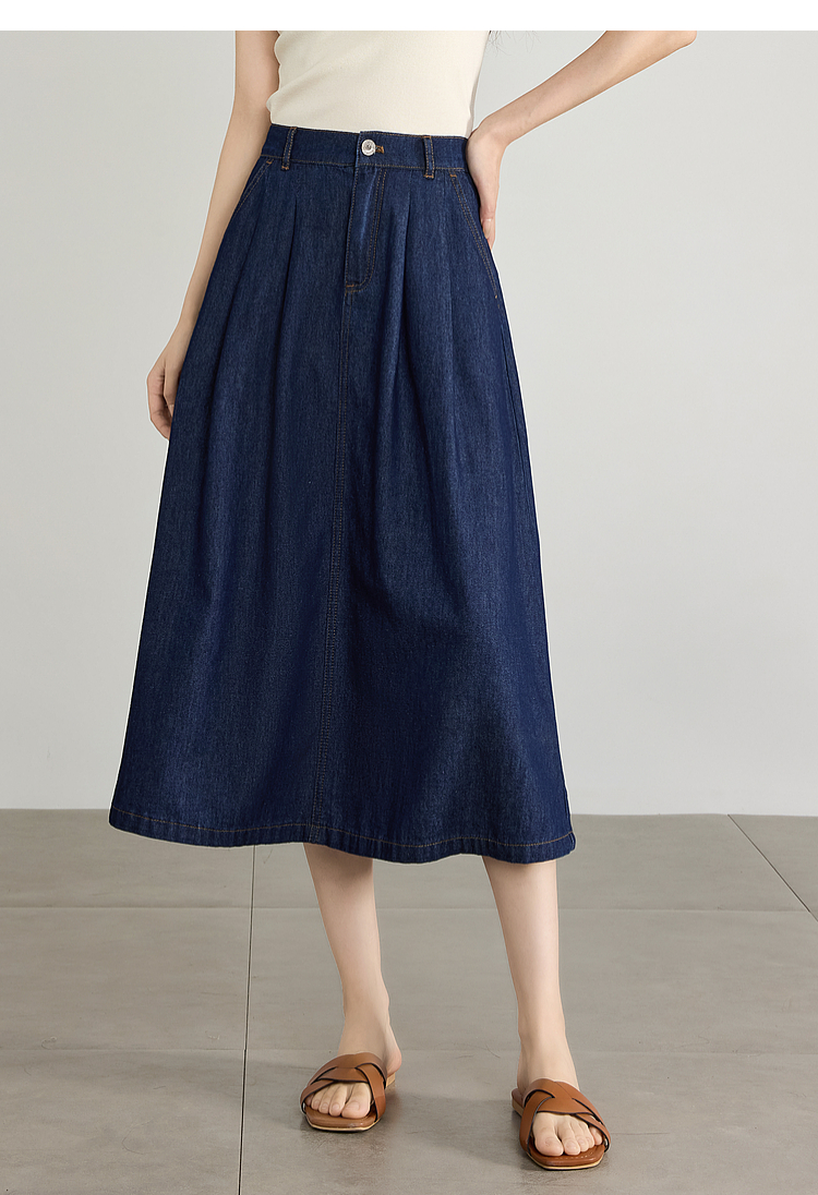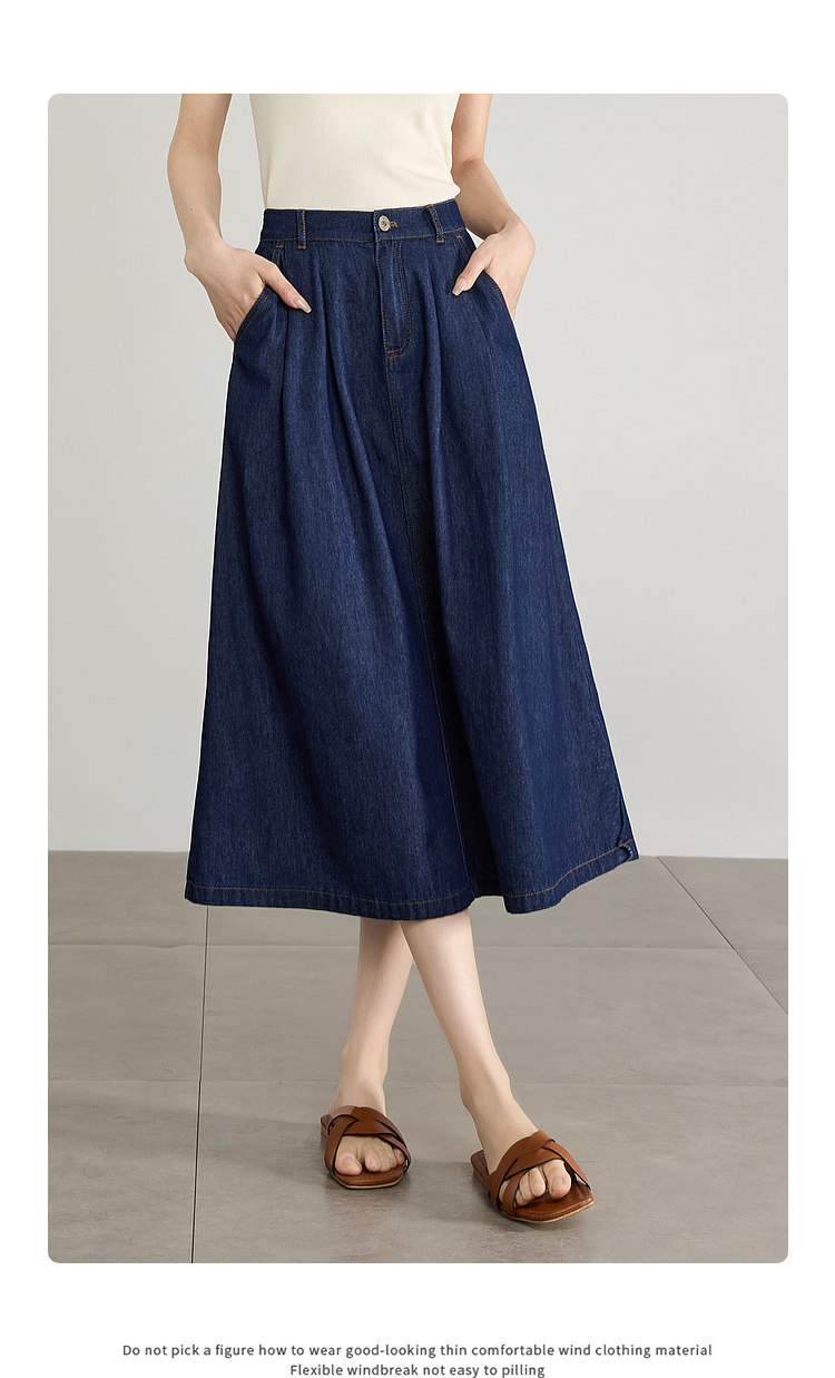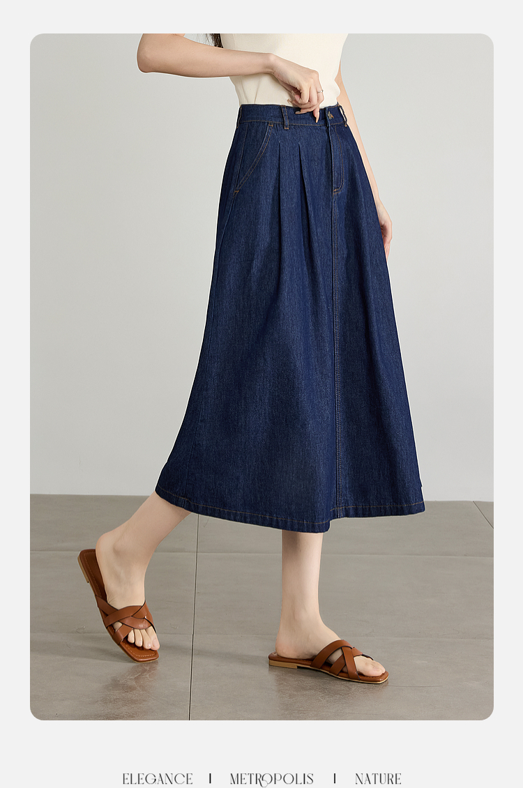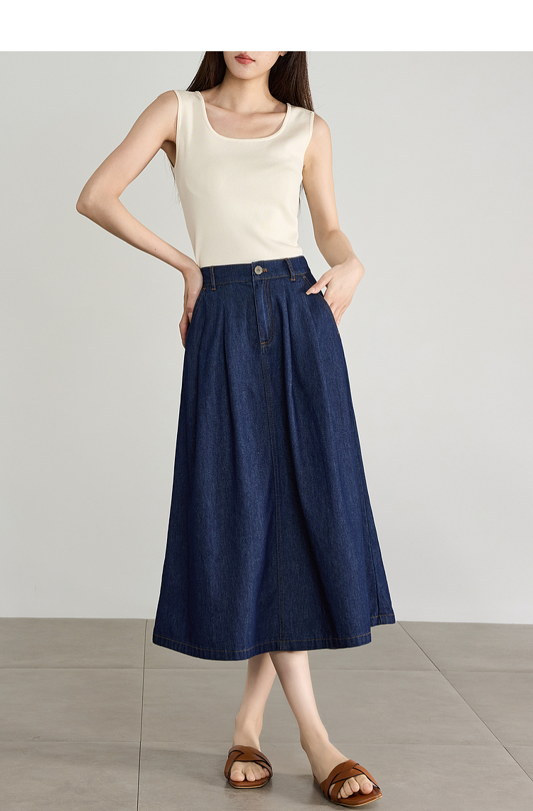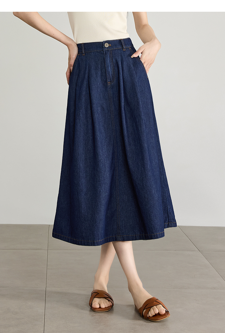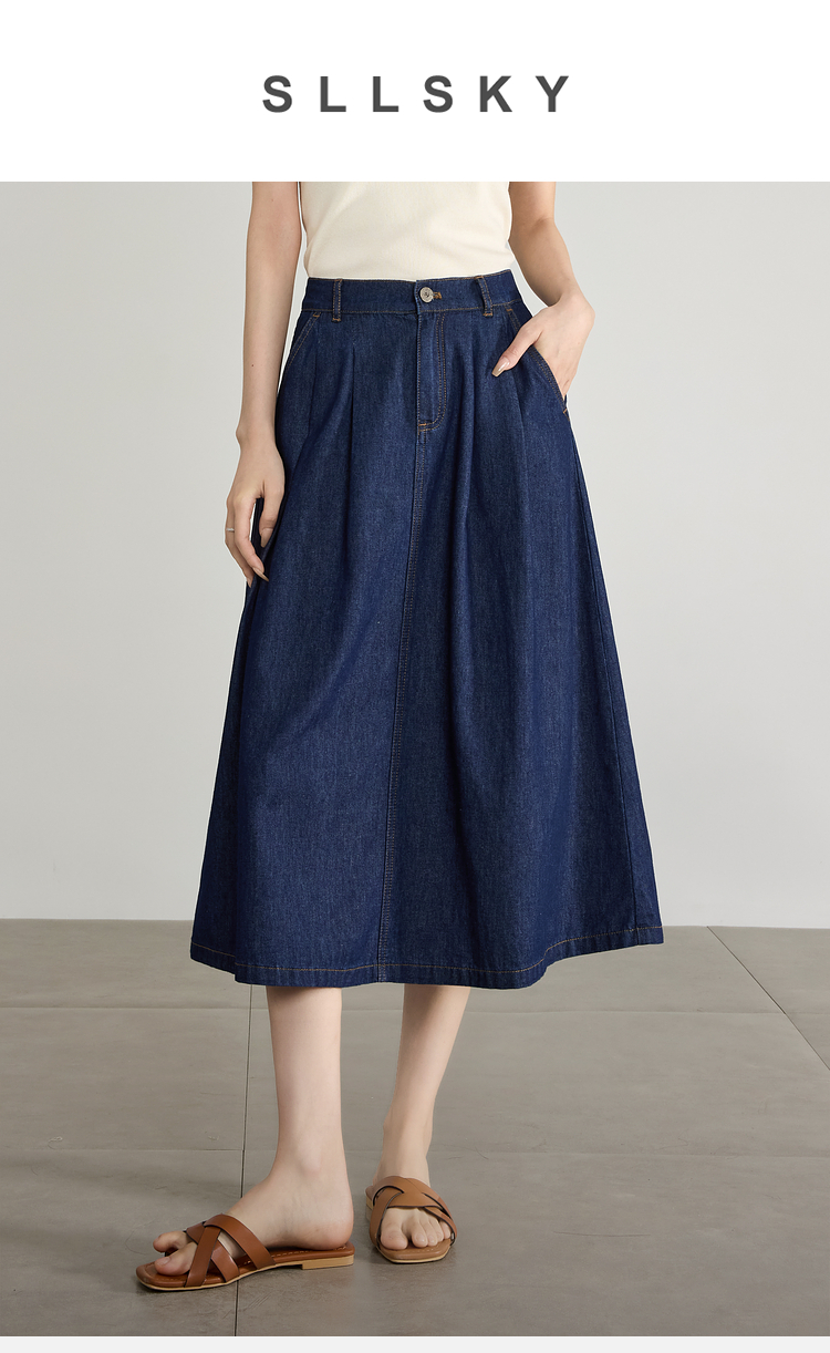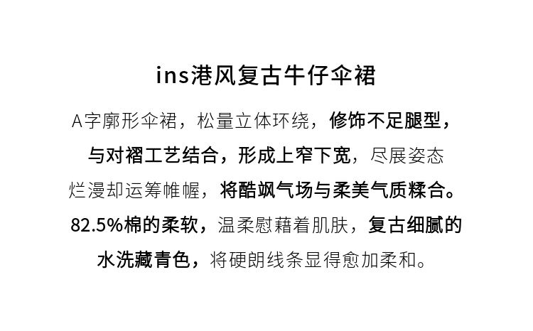 【五折购】熙世界港风复古牛仔半身裙2025夏装新款高腰气质中长款a字伞裙