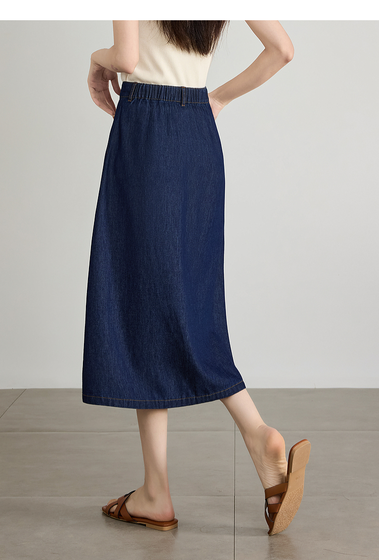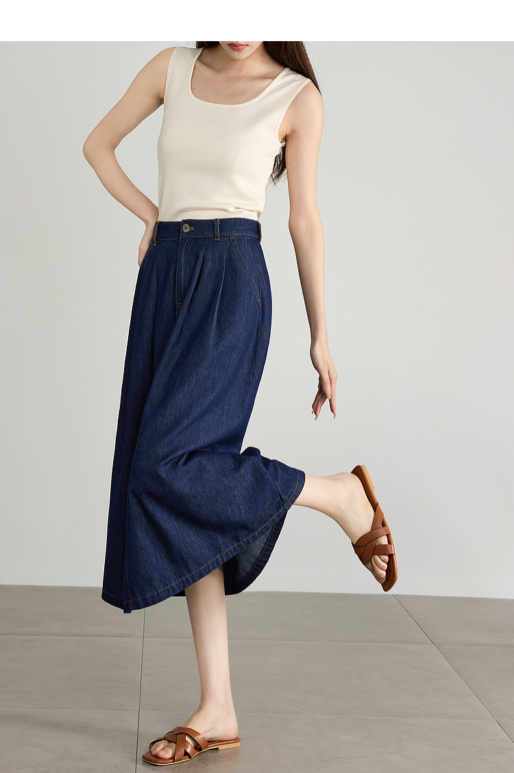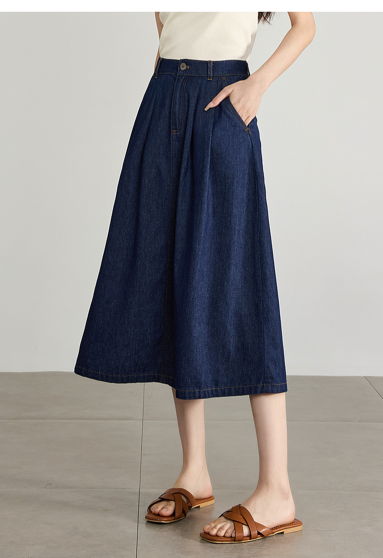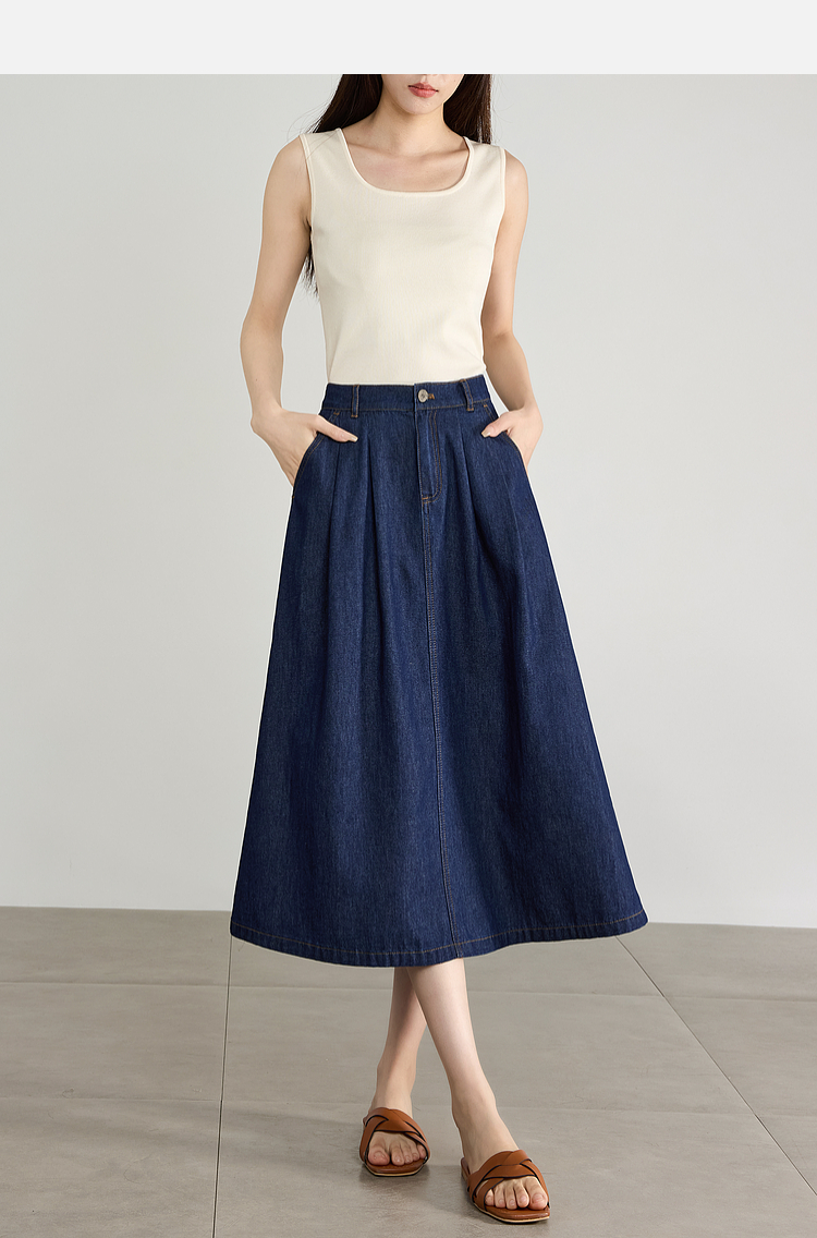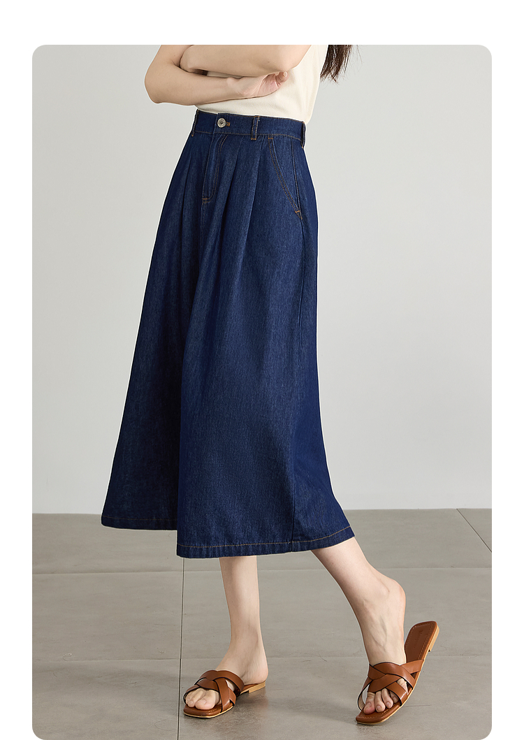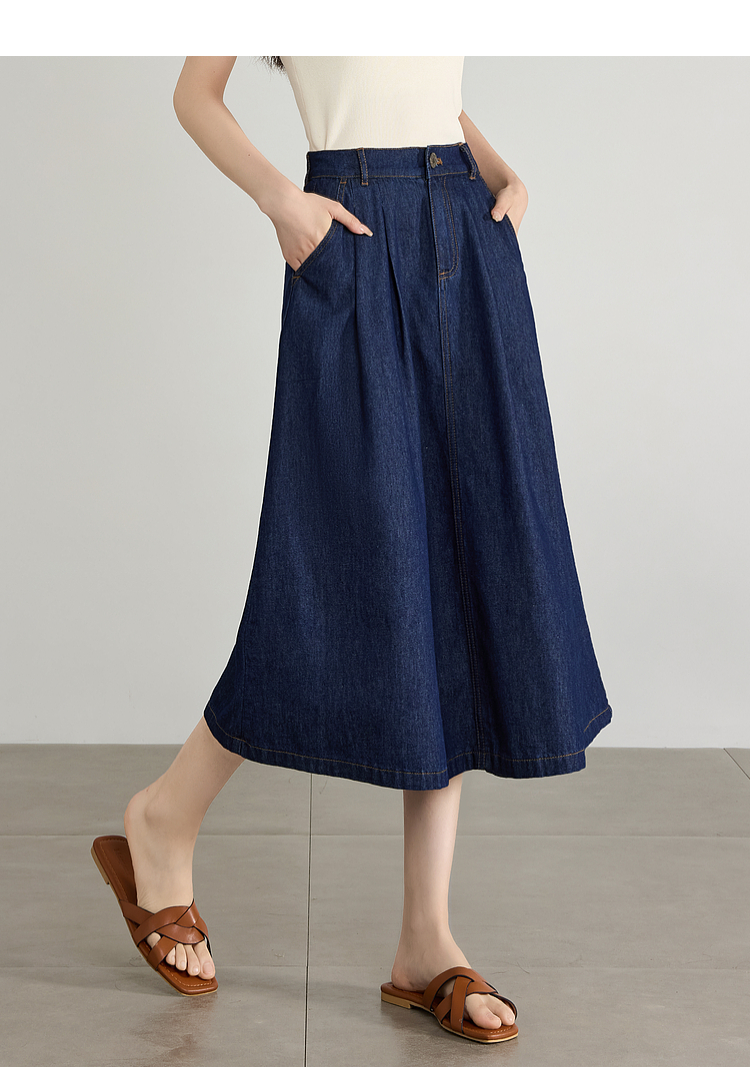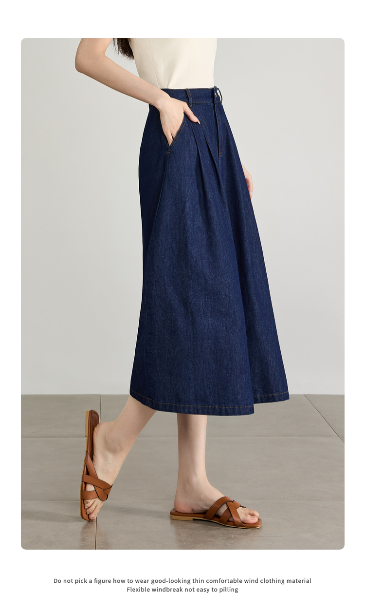 【五折购】熙世界港风复古牛仔半身裙2025夏装新款高腰气质中长款a字伞裙