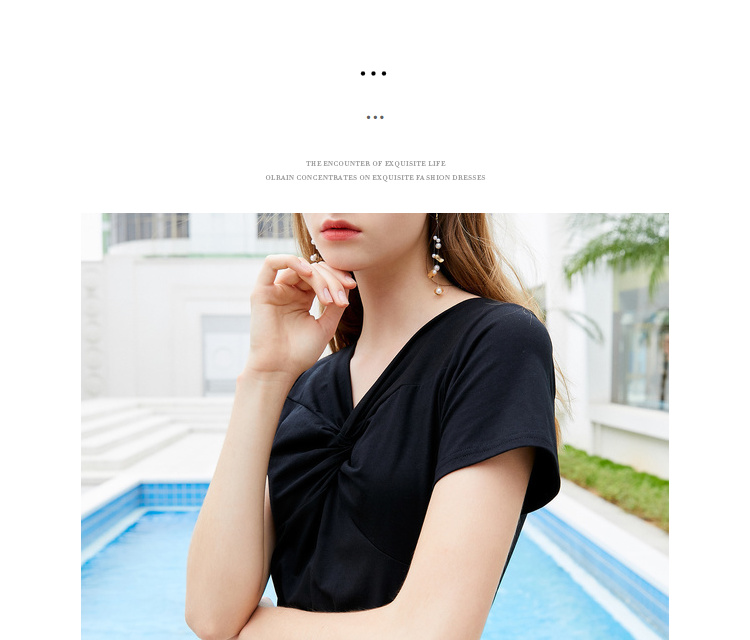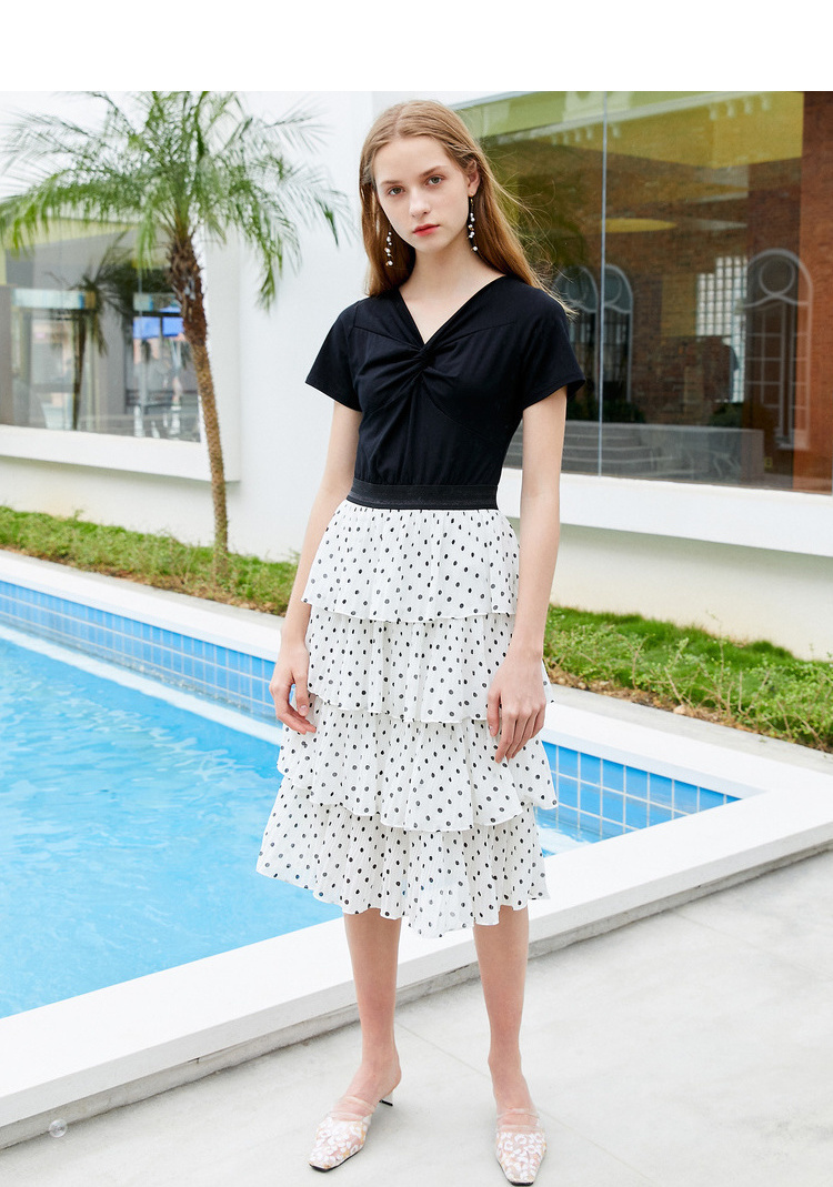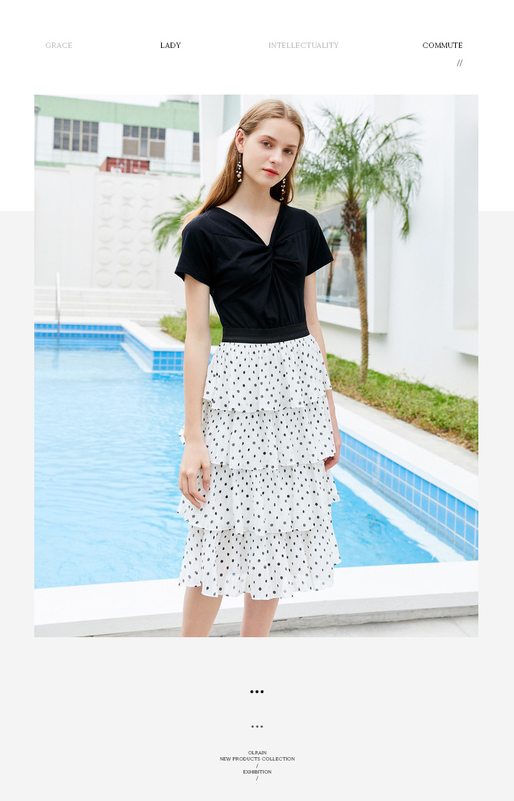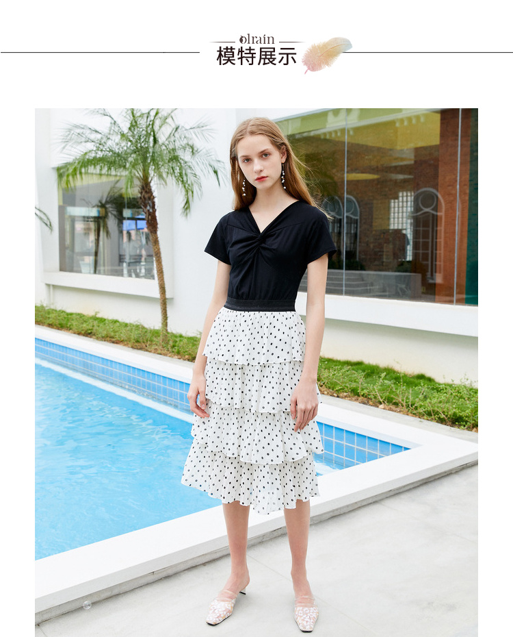 OLrain法式高级穿搭黑白波点短袖连衣裙女夏季2022气质显瘦裙