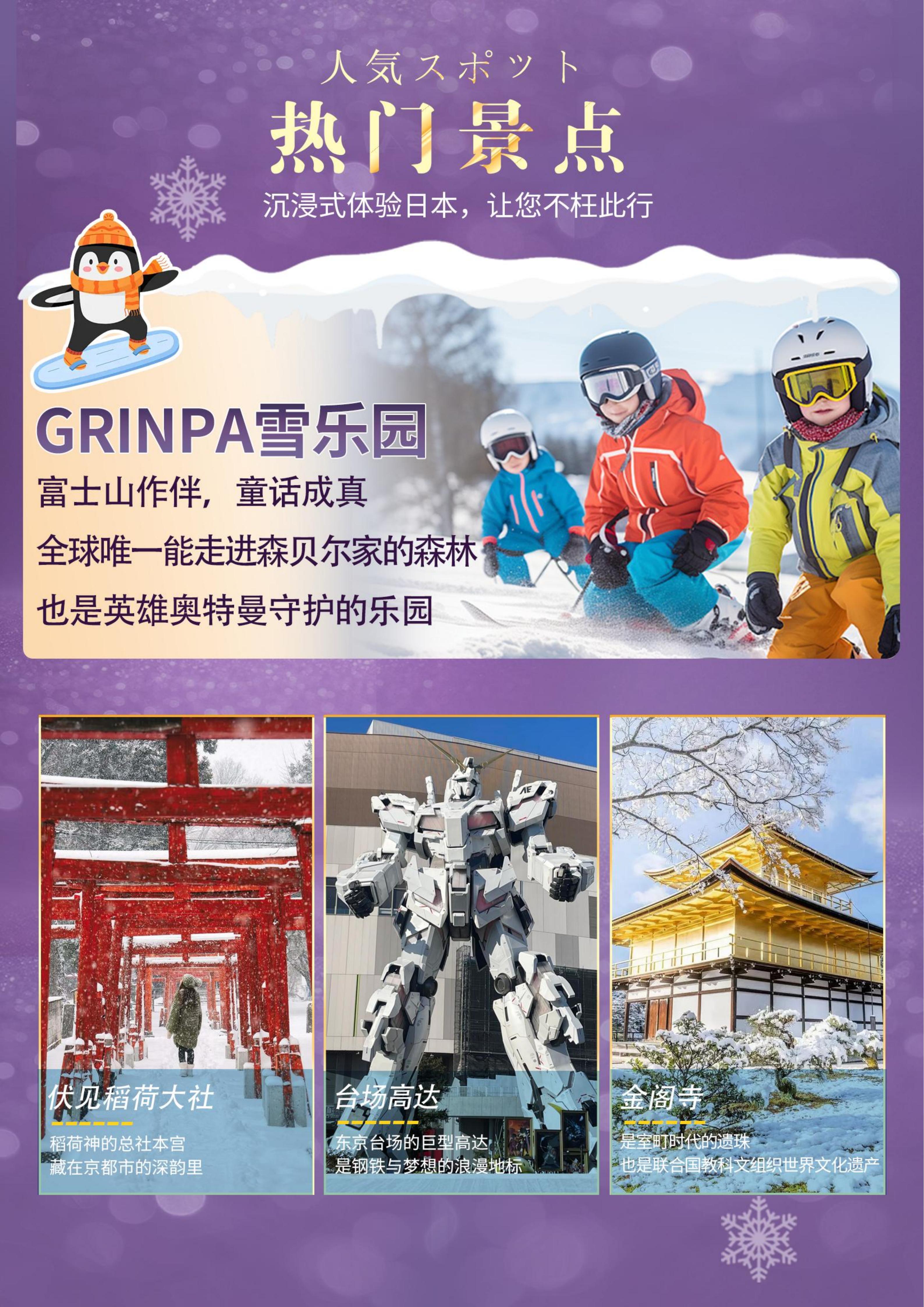 【春节、寒假】<日本本州6天全景游-深圳起止> 东京可选1天自由活动、箱根神社+水上鸟居+大涌谷、忍野八海、山中湖喂天鹅、富士山Grinpa雪乐园、京都金阁寺、伏见稻荷大社、和服体验、心斋桥、茶道体验
