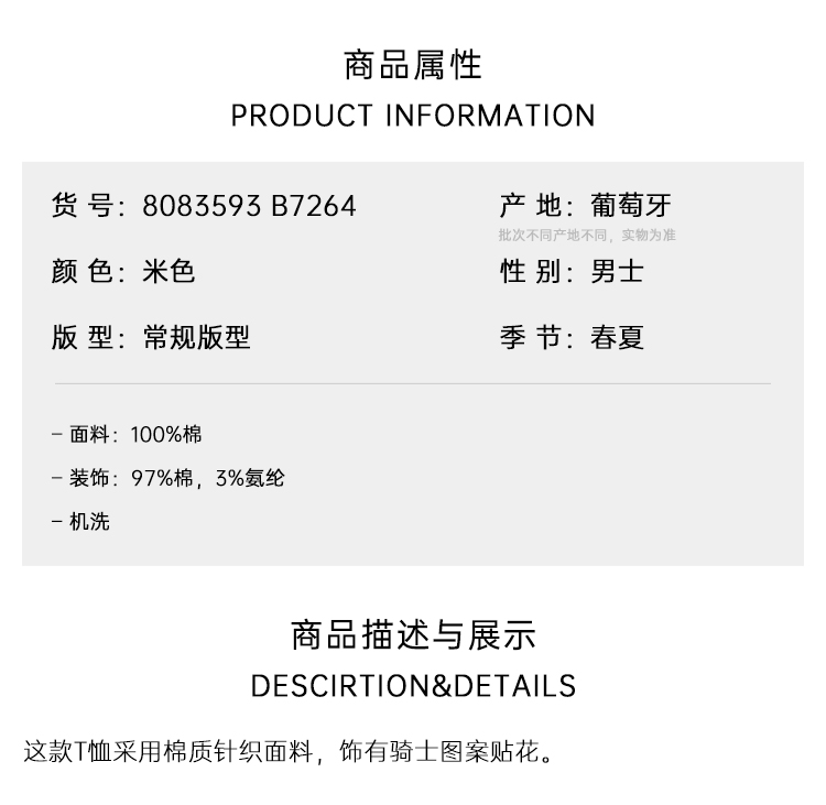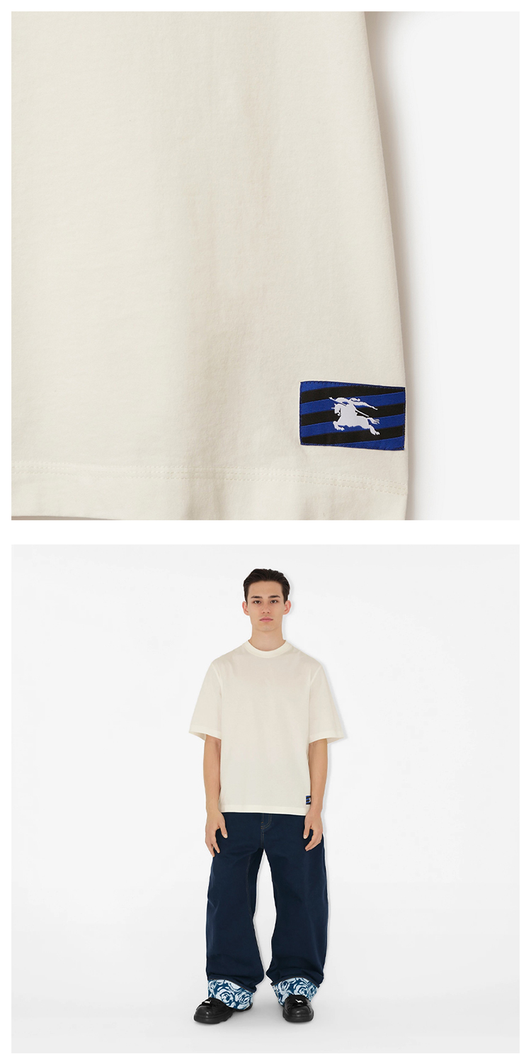 BURBERRY 巴宝莉 男士马术骑士徽标贴花棉质圆领短袖T恤 米色 8083593 B7264
