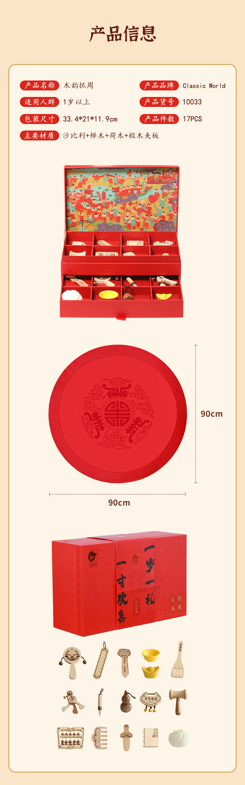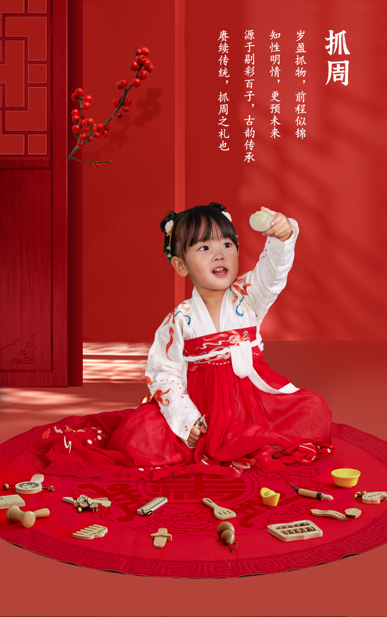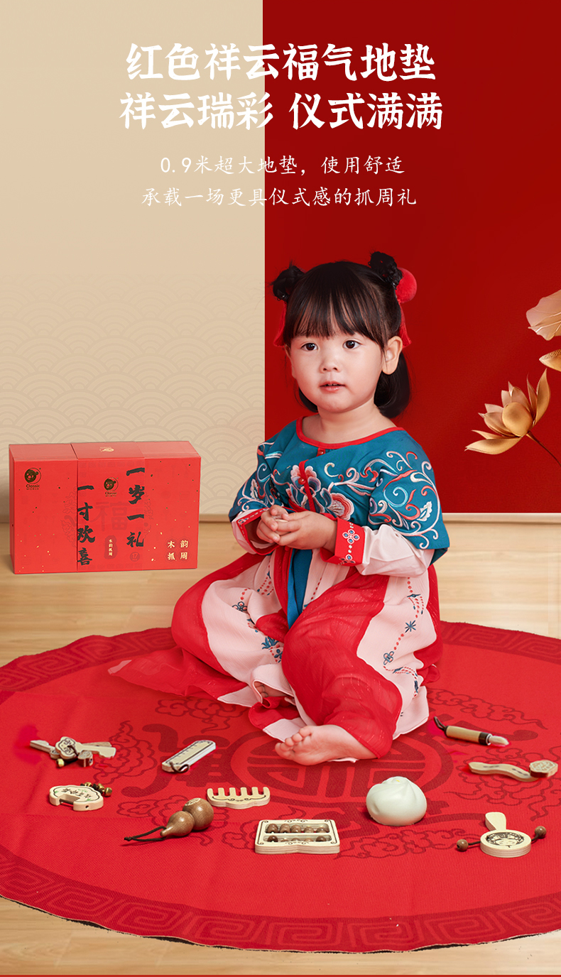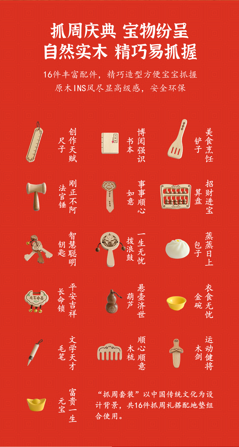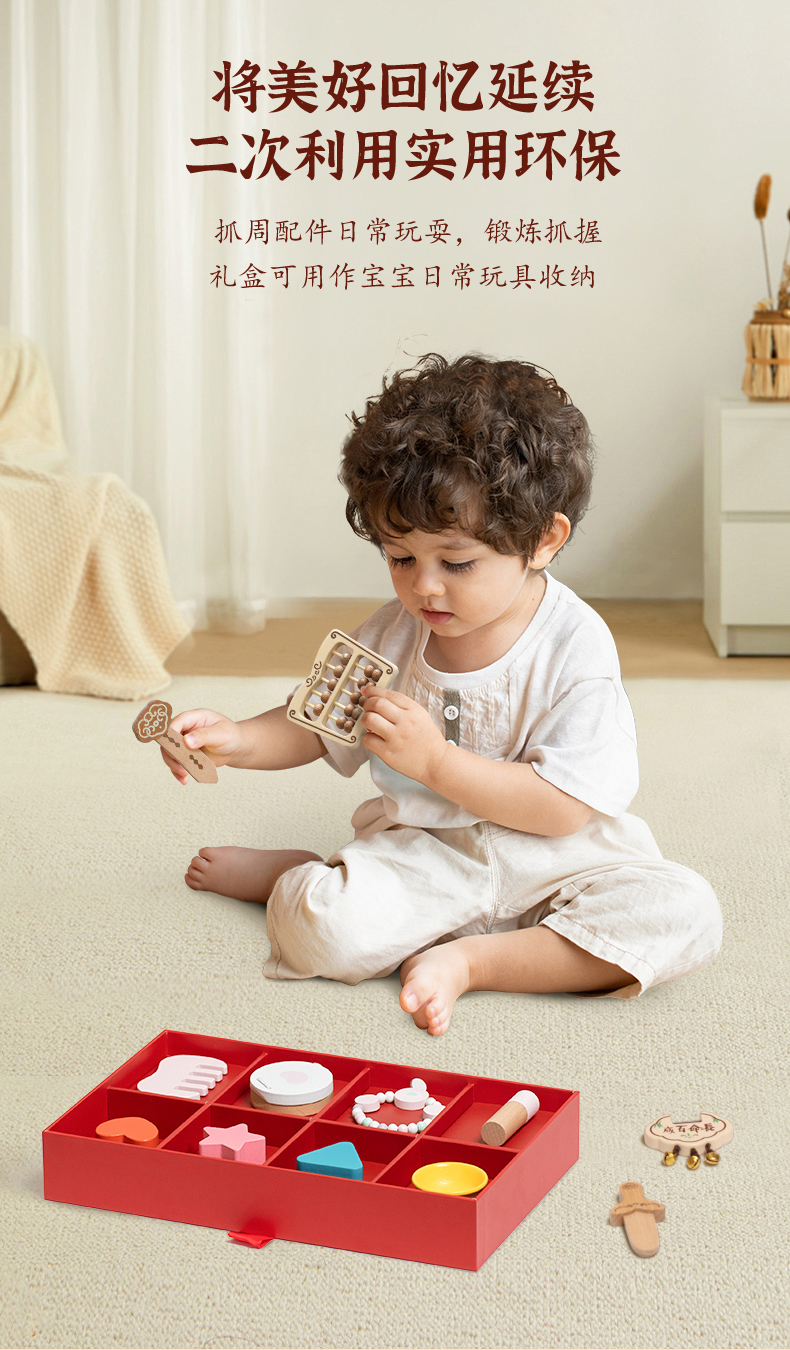 可来赛抓周阄用品套装道具一周岁礼男女孩生日布置中式原木风高端