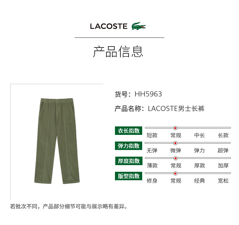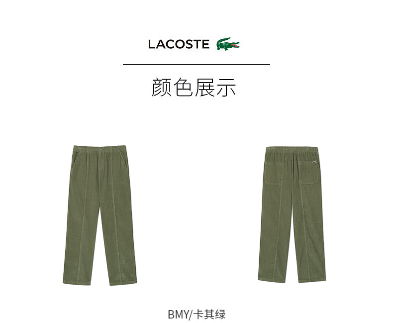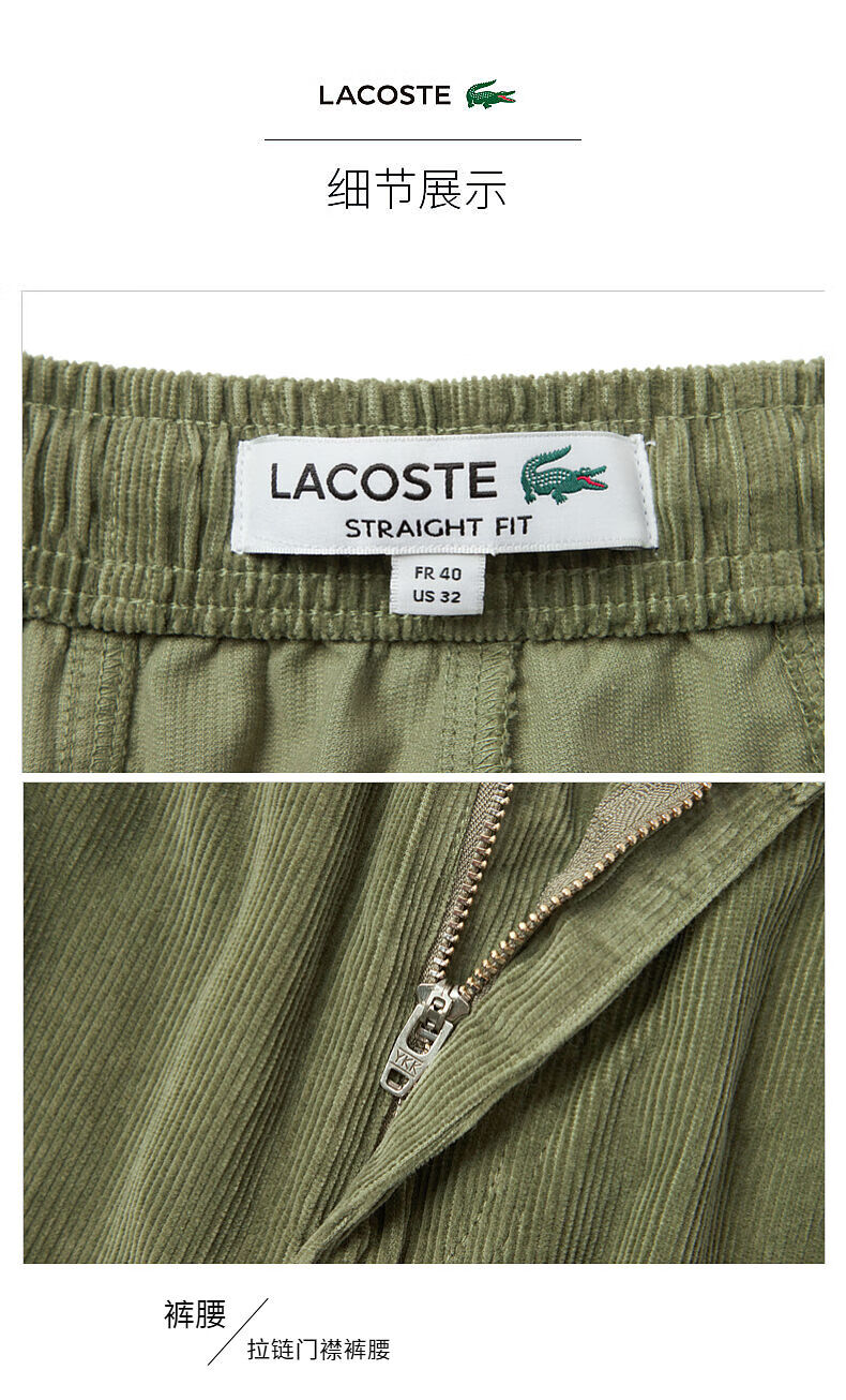 LACOSTE【王一博同款】法国鳄鱼男装新款纯棉直筒长裤HH5963-98