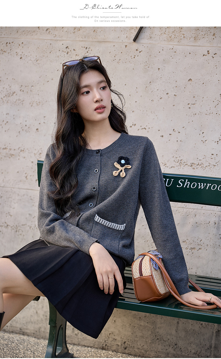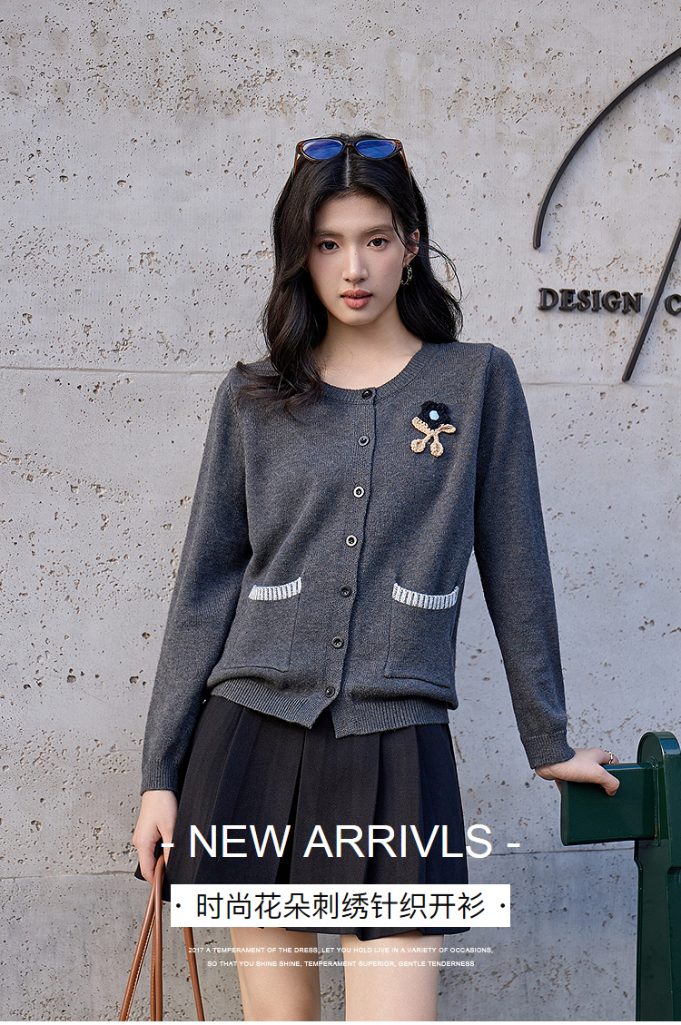 奢姿大码女装2025秋季胖妹妹时尚花朵刺绣针织开衫气质减龄上衣9854691075