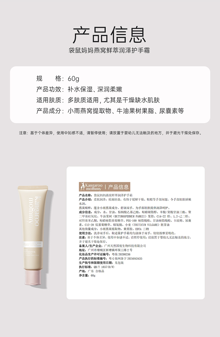 【燕窝护手霜】秋冬必备 改善手部粗糙干燥 时刻润护 双手细腻 燕窝鲜萃润泽护手霜(60g)