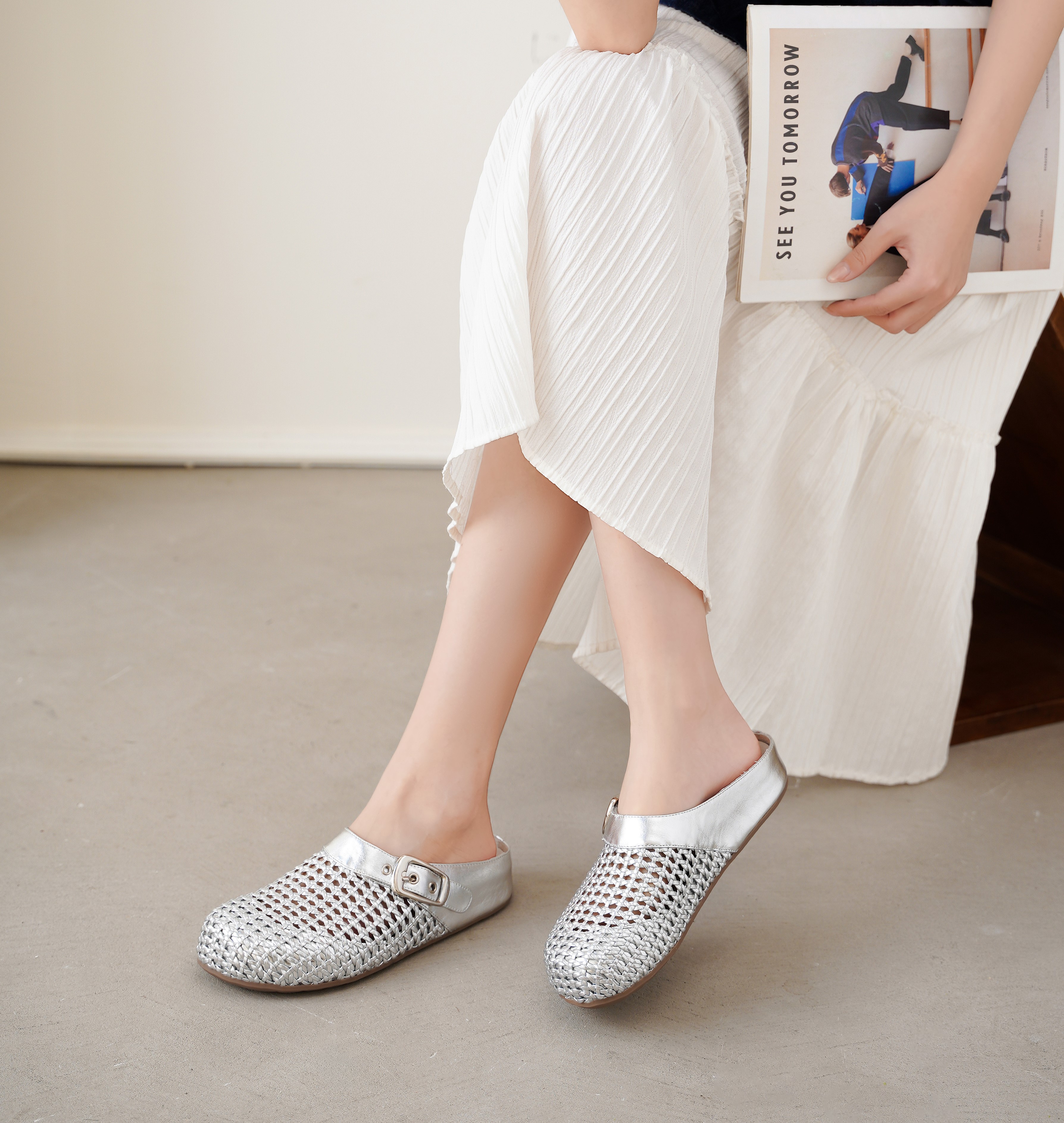 【夏季新款】西村名物2025年夏季新款舒适平底包头后空拖鞋T25AH16381