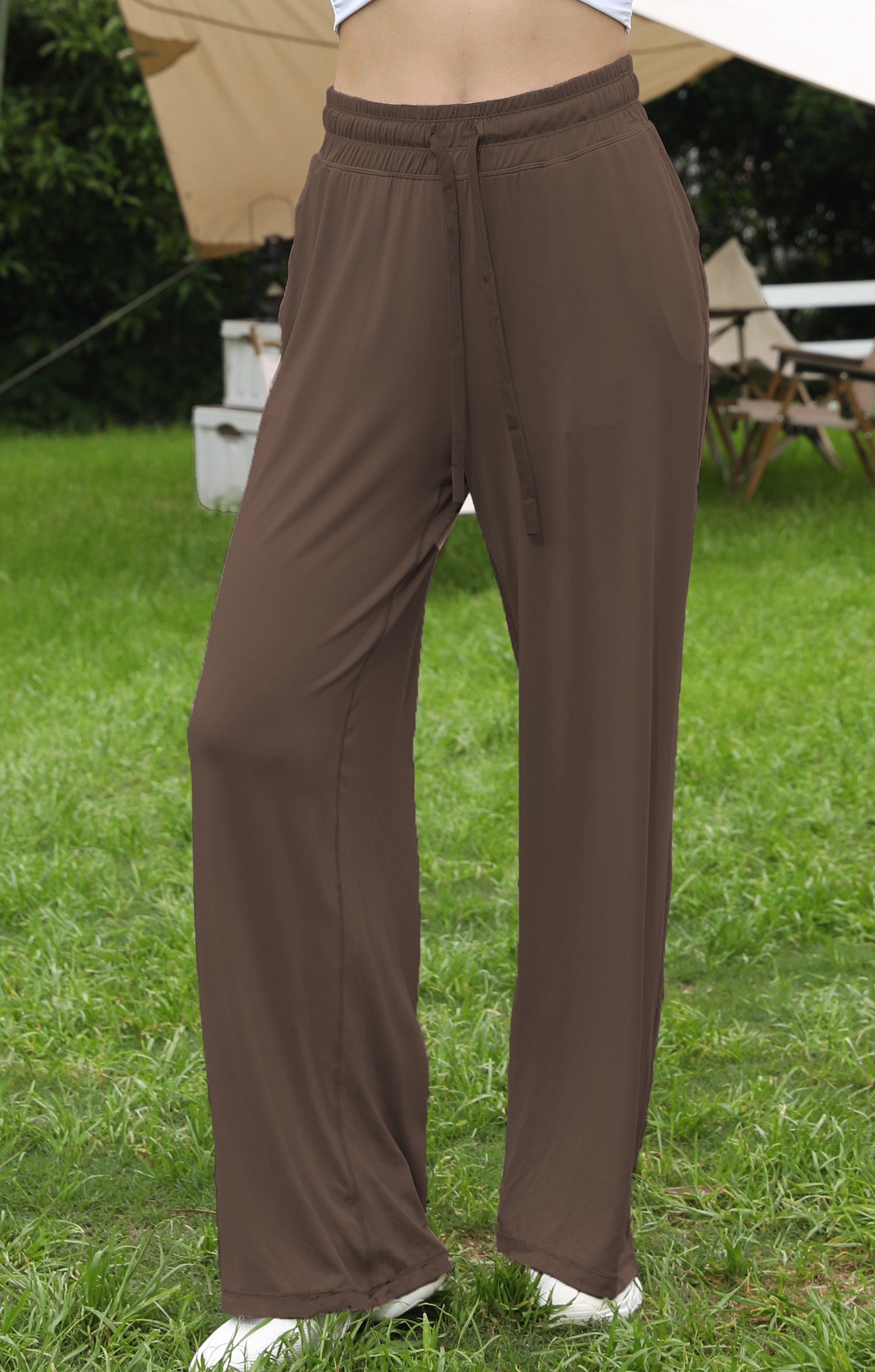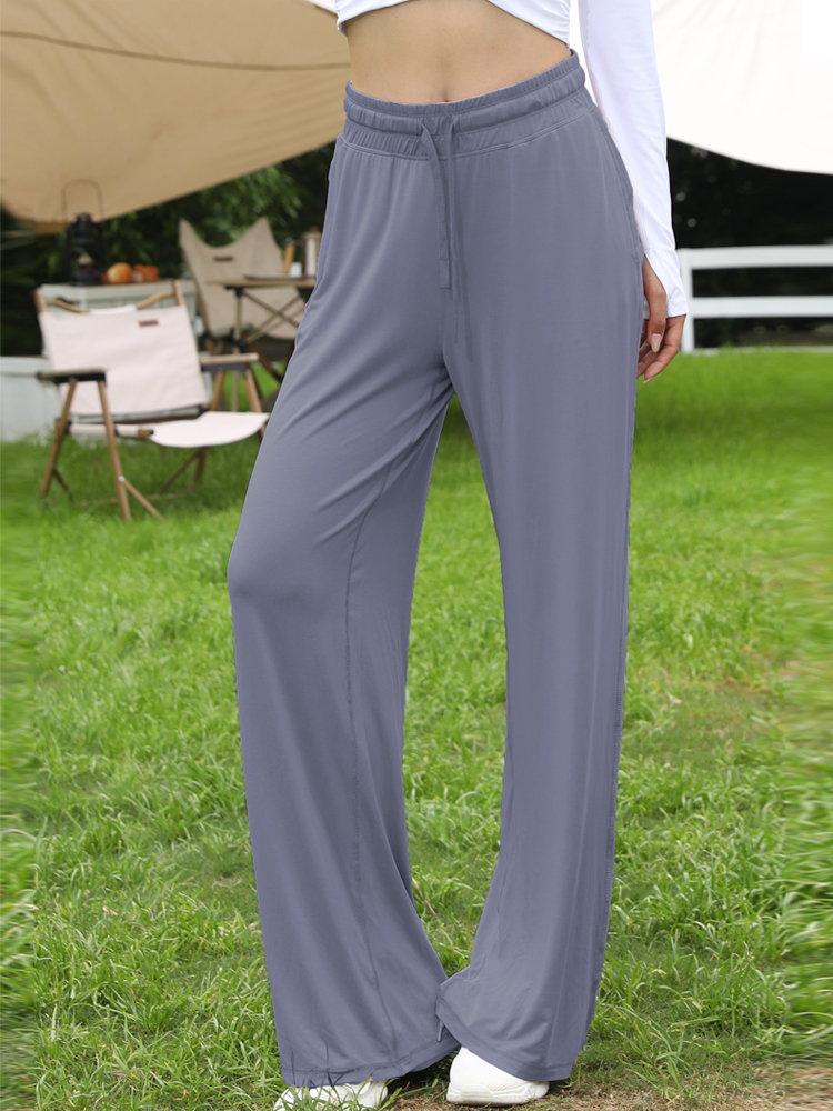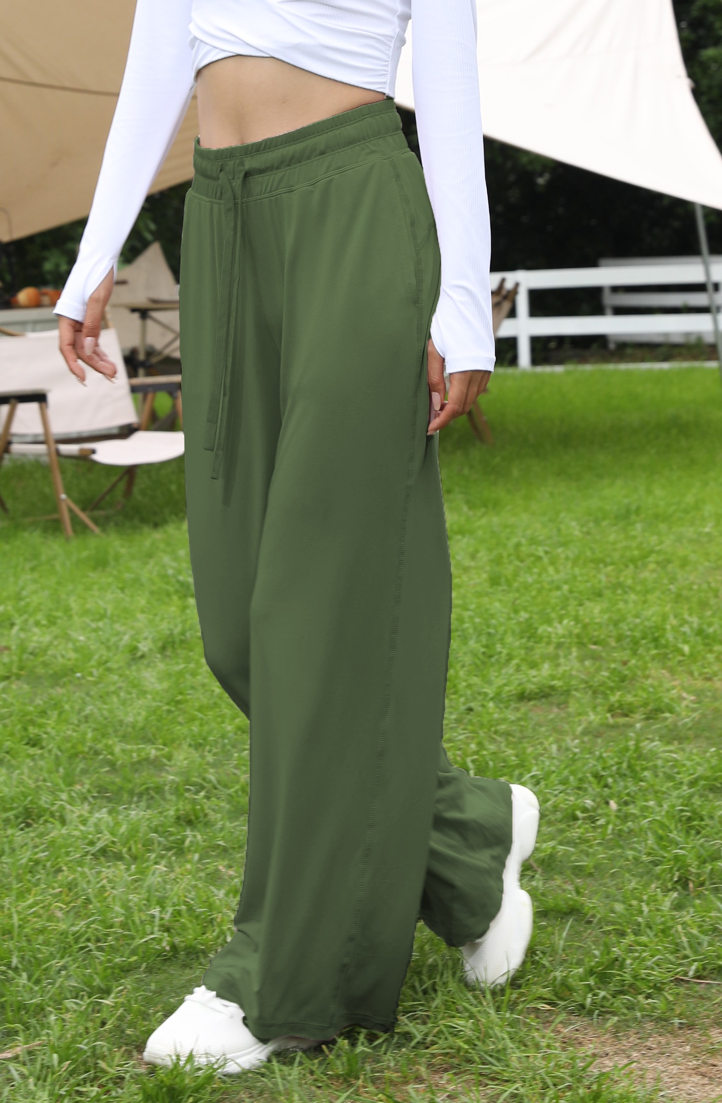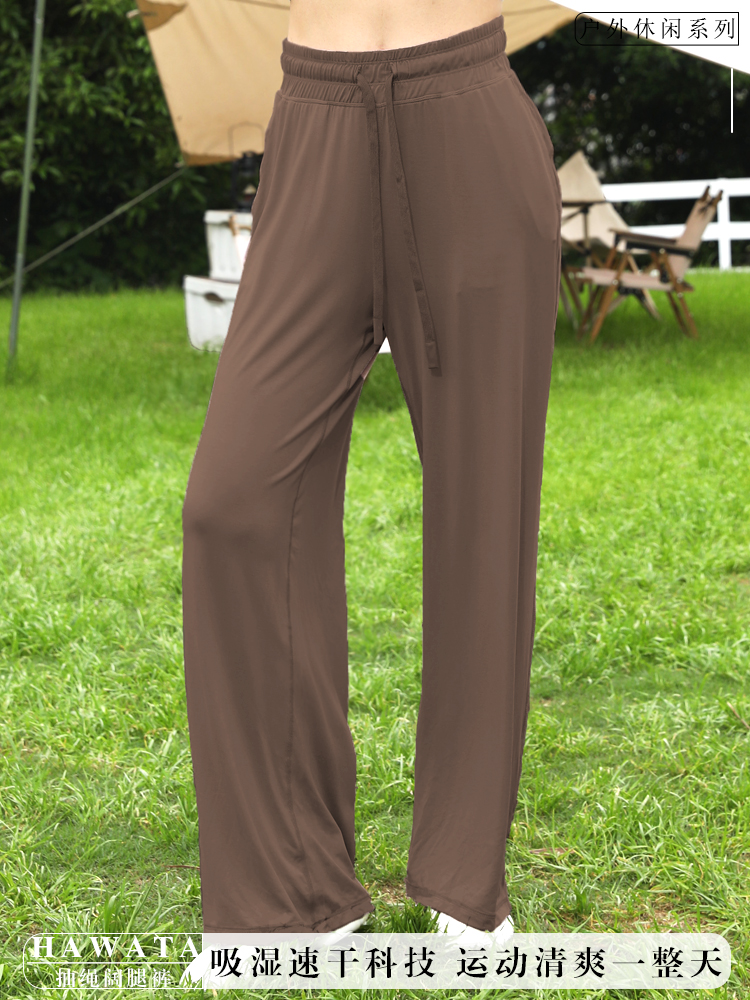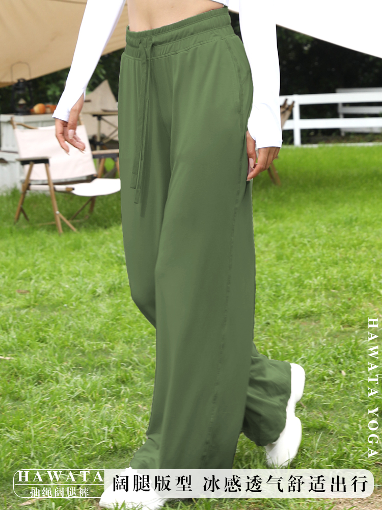 哈瓦塔抽绳冰感柔软阔腿休闲裤H34113