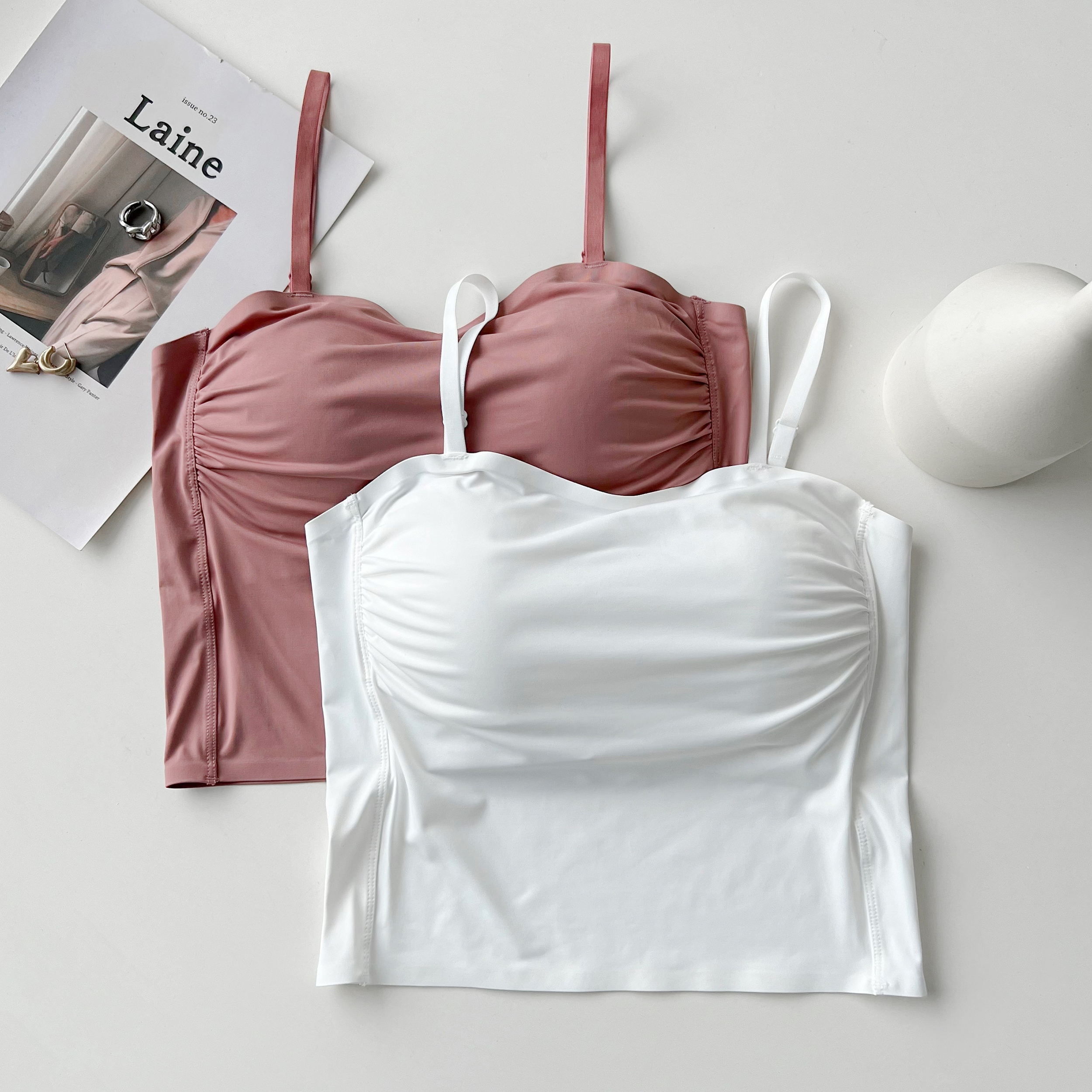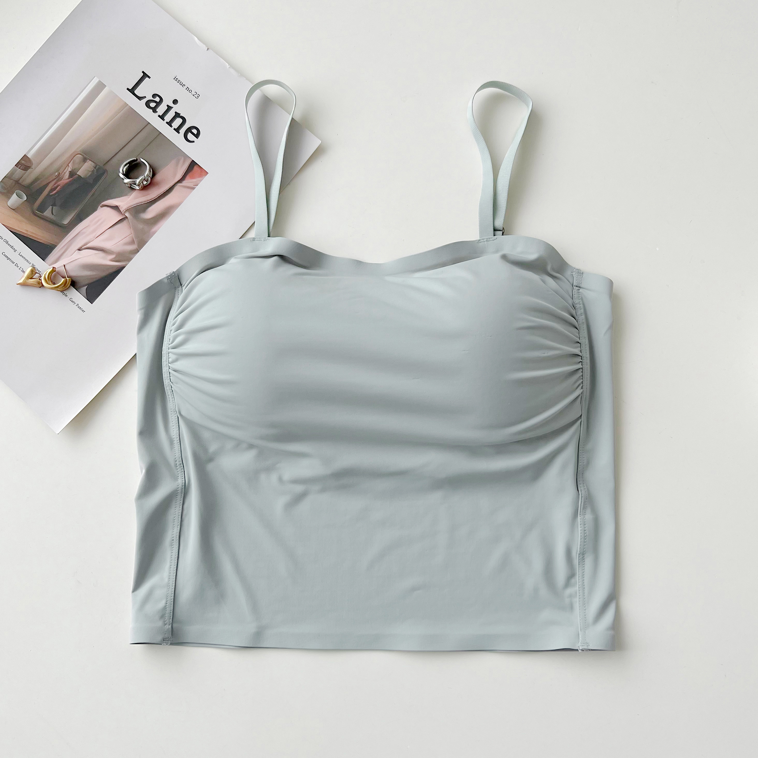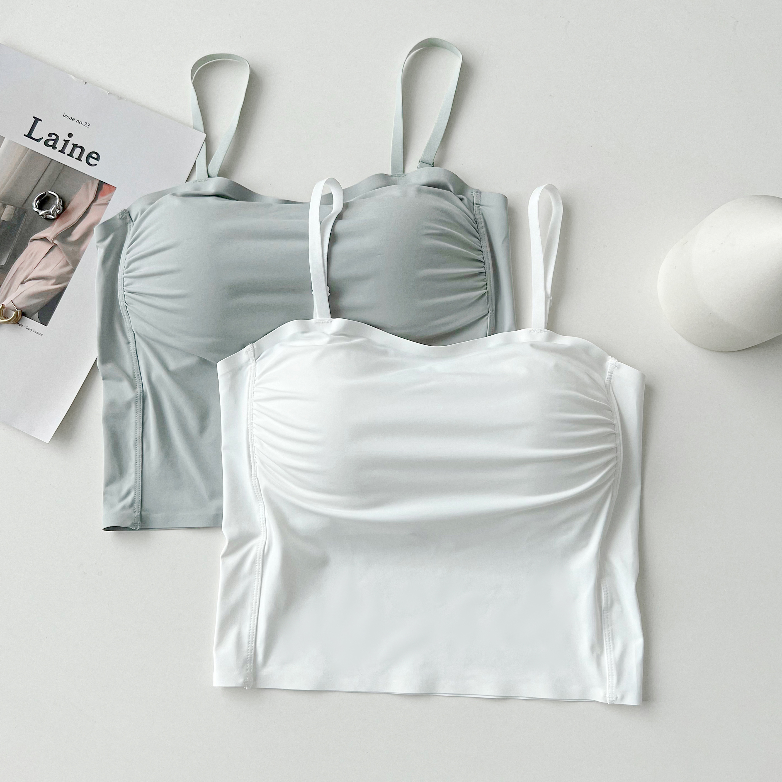 老米优品🎈巨好穿!!《无痕冰丝凉感褶皱吊带背心》自带胸垫免文胸👙冰凉凉体感瞬间降温,修身弹力好 DD240524A~~