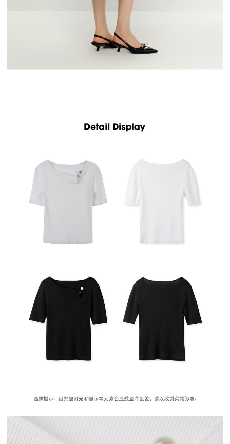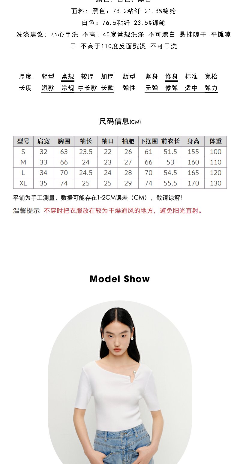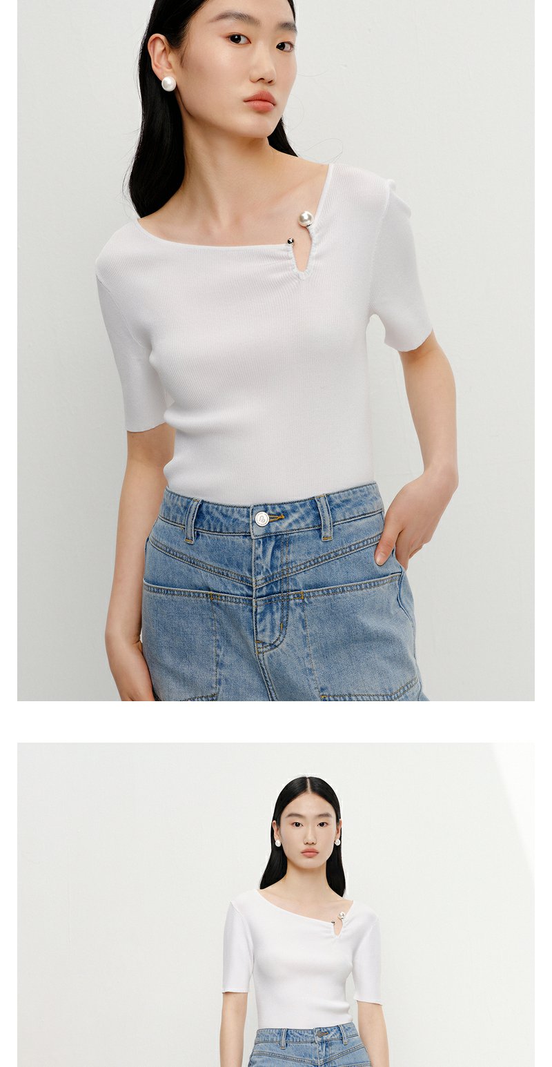 NEELLY纳俪商场同款针织衫女短袖夏季镂空别致设计感短款上衣修身N23042A01037