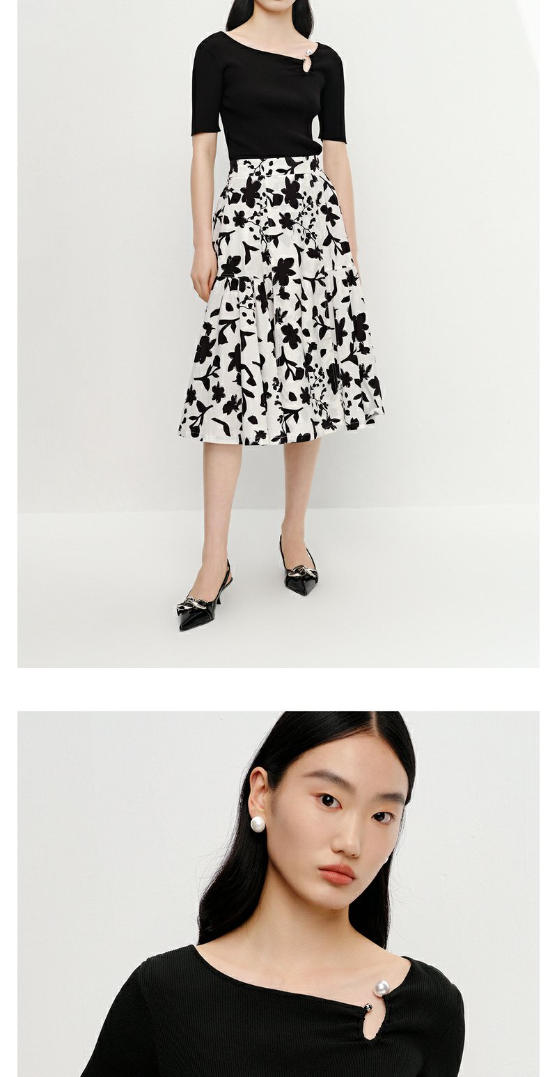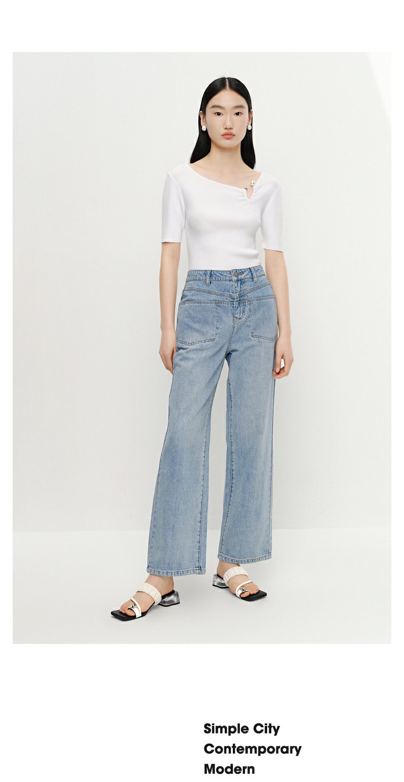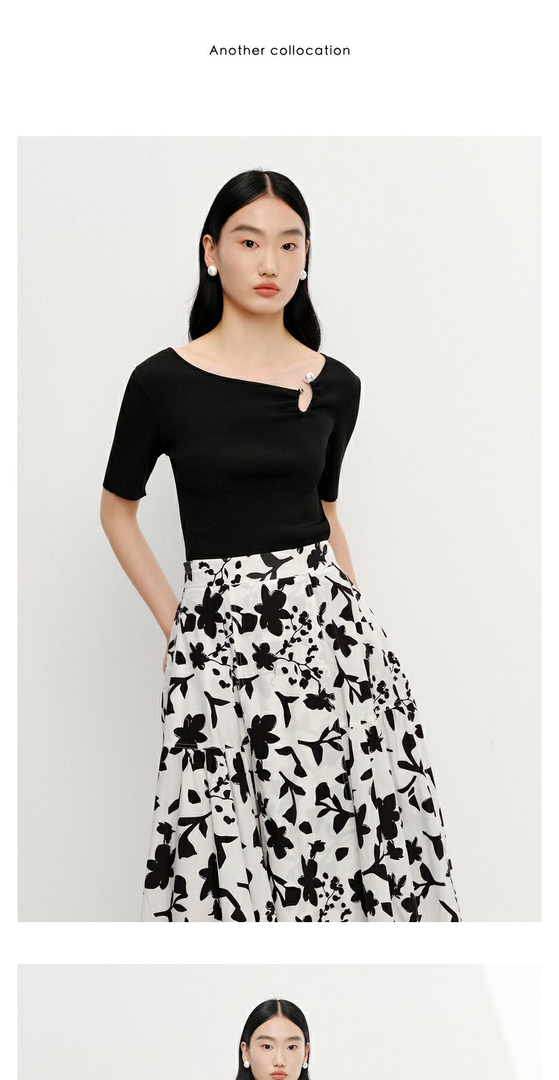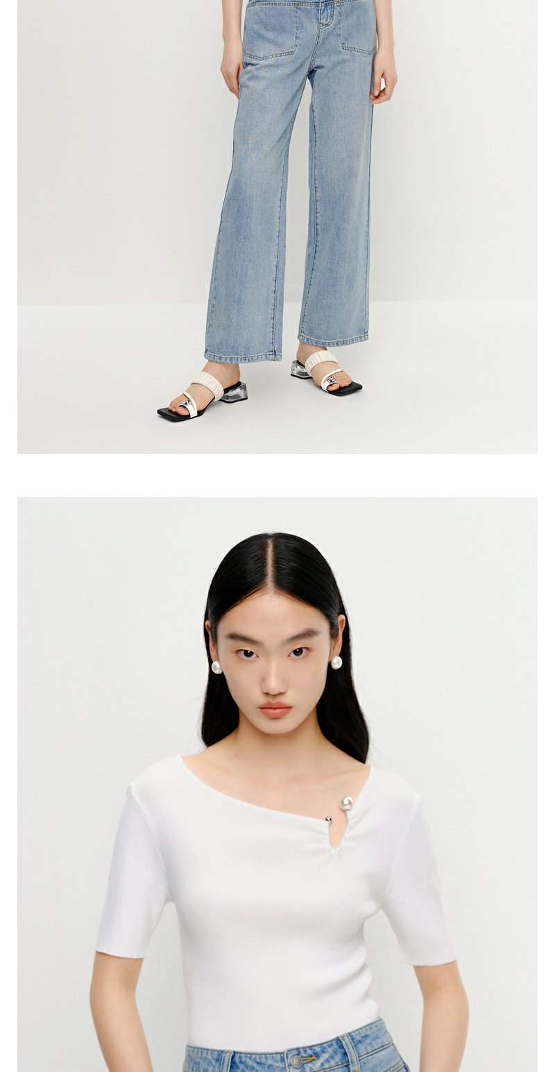 NEELLY纳俪商场同款针织衫女短袖夏季镂空别致设计感短款上衣修身N23042A01037