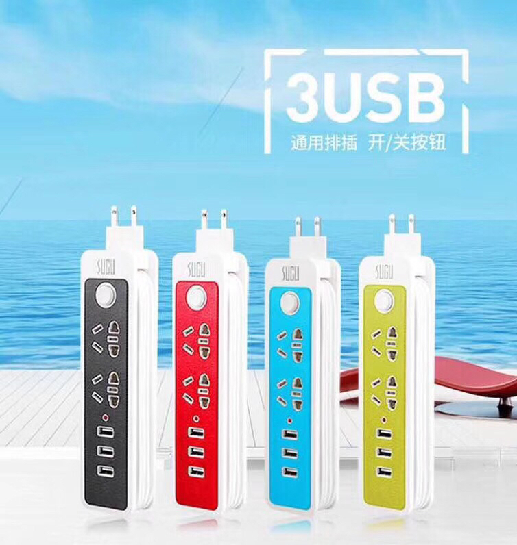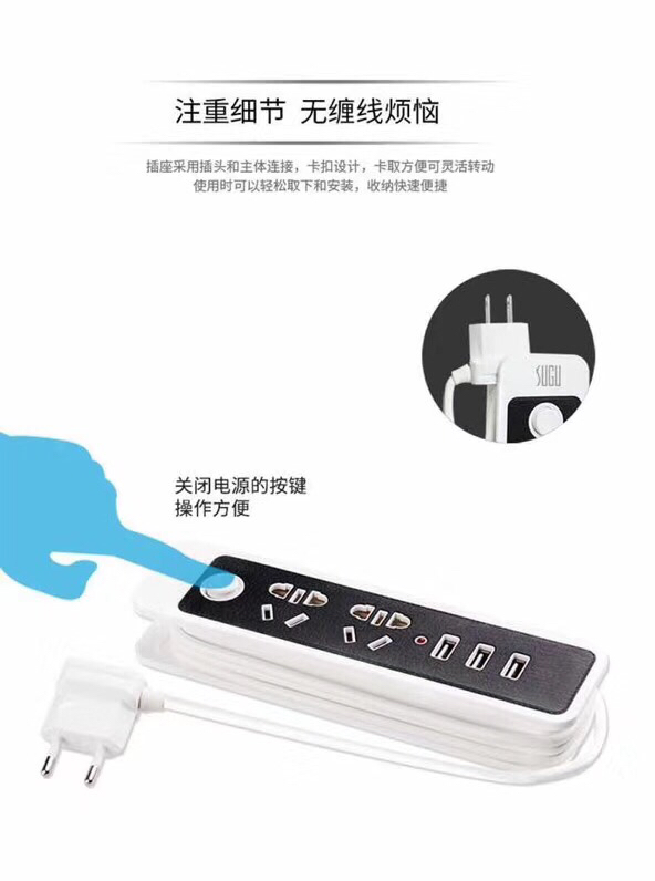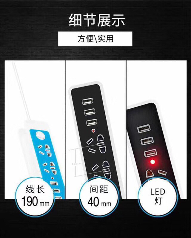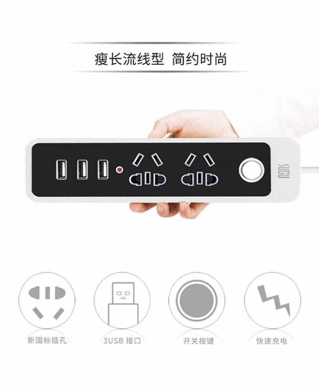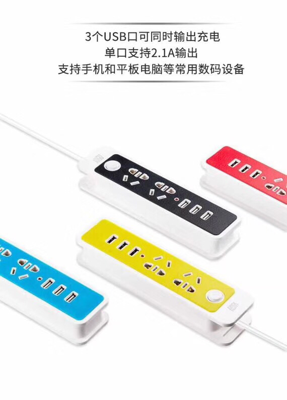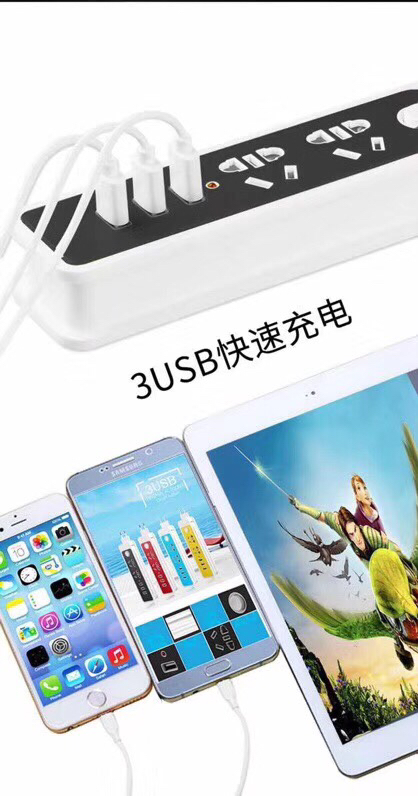 2、三个usb口(2个1A+1个2.1A)+两个交流电口,满足手机,pad,等日常使用。智能输入输出,还有过载保护,安全可靠,随时保护你的在充设备。