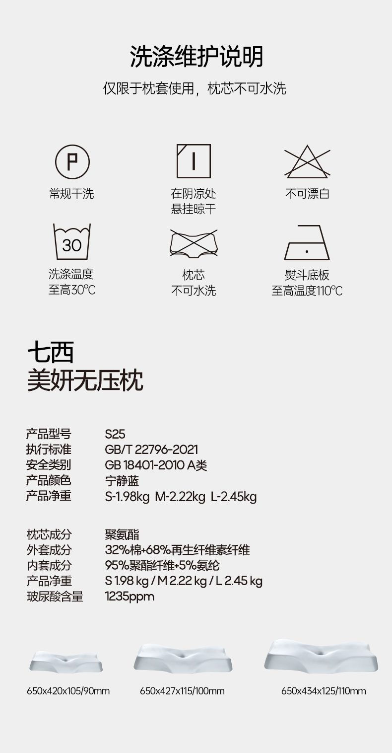 【30天试睡,不满意随时退】7C七西美妍无压枕3.0(S25)记忆棉护颈椎助睡眠枕头枕芯 软硬分区延长深度睡眠枕