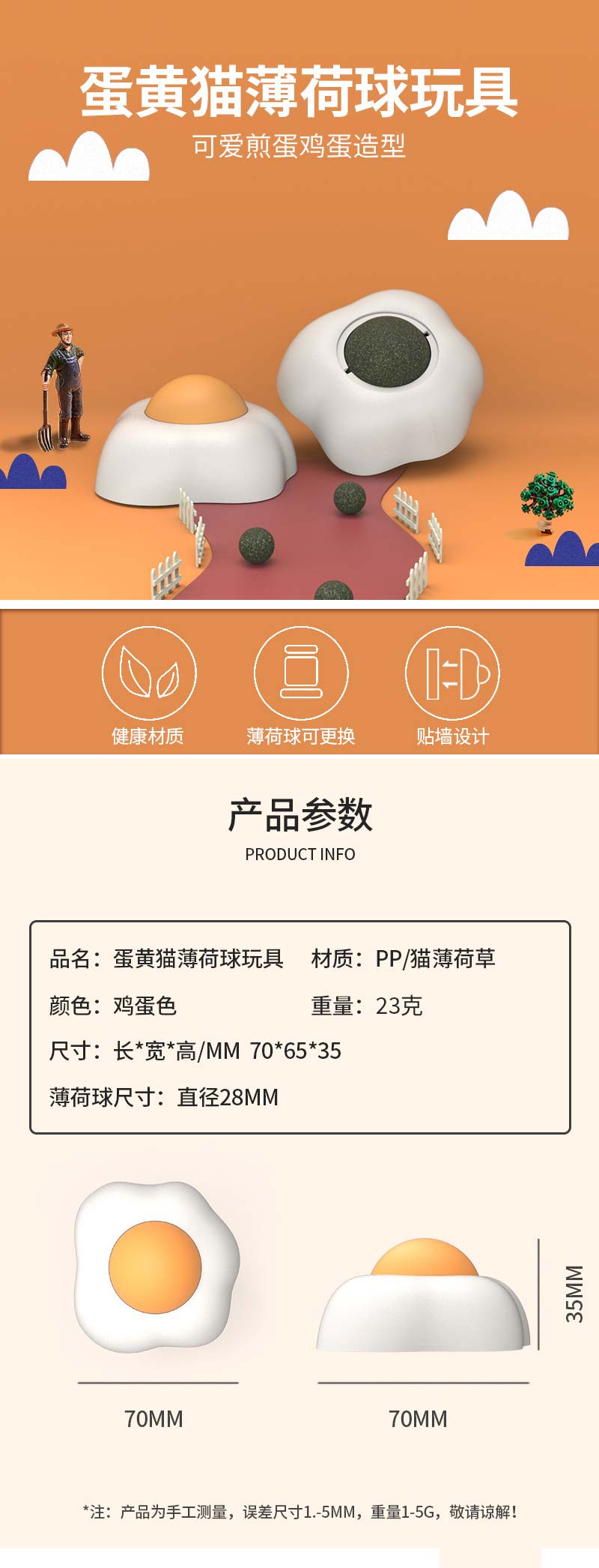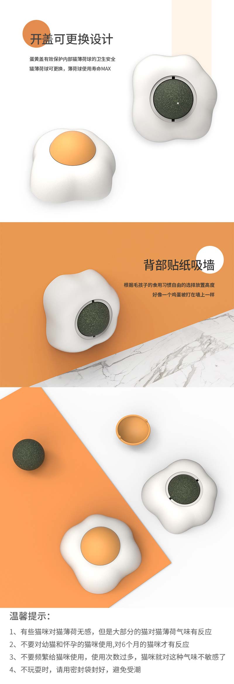 荷包蛋猫薄荷球 舔舔乐自嗨猫玩具 背部可贴 缓解压力 助排毛球