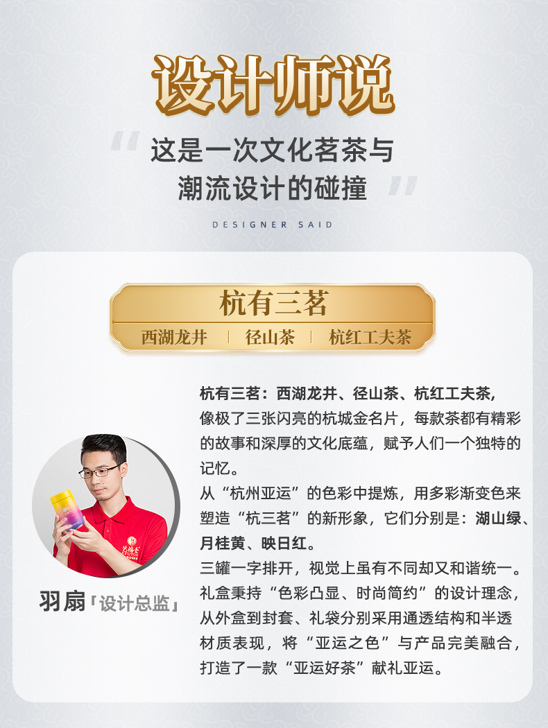 “艺福堂茶业”创立于2008年,是一家集生产、销售、科研为一体的现代茶业企业,主打西湖龙井,兼营世界各地名优茗茶及花草茶,是中国茶行业为数不多的年销售额过5亿的品牌之一,是杭州亚运会官方指定用茶!