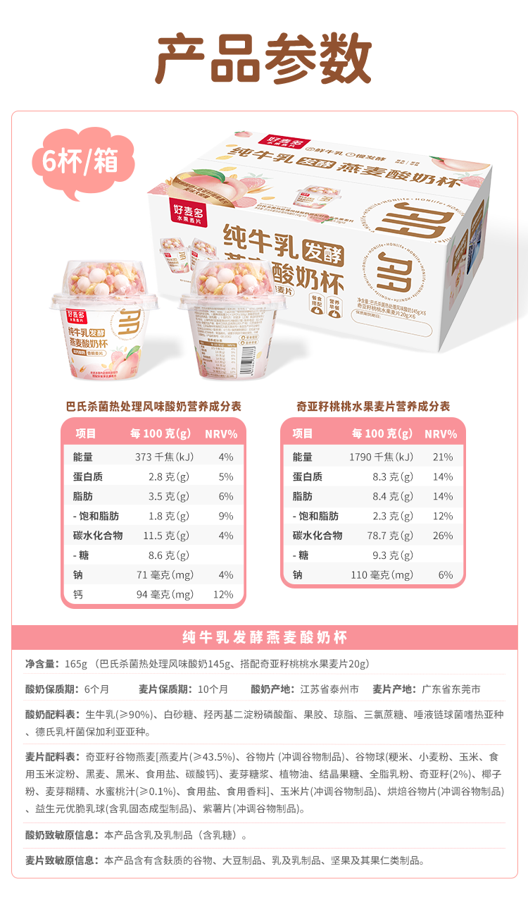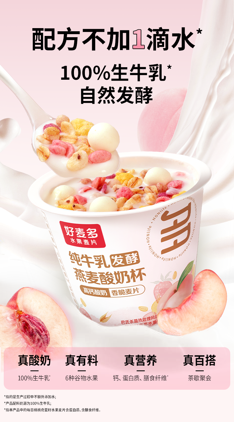 【轻卡饱腹】好麦多 燕麦酸奶杯(桃桃)165g*6