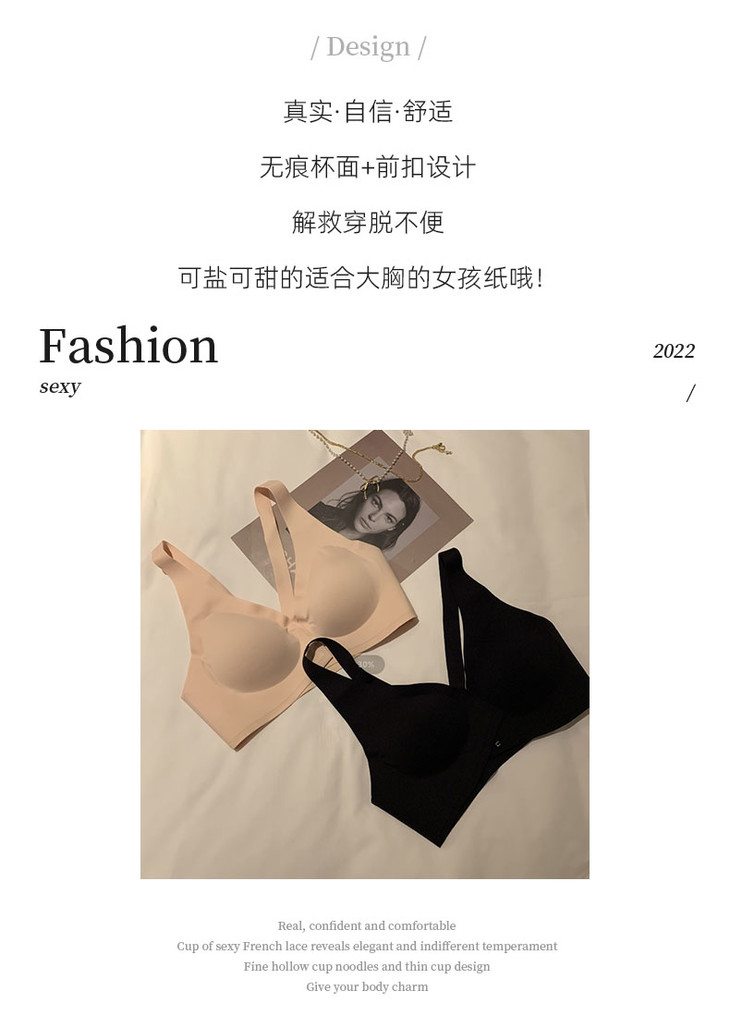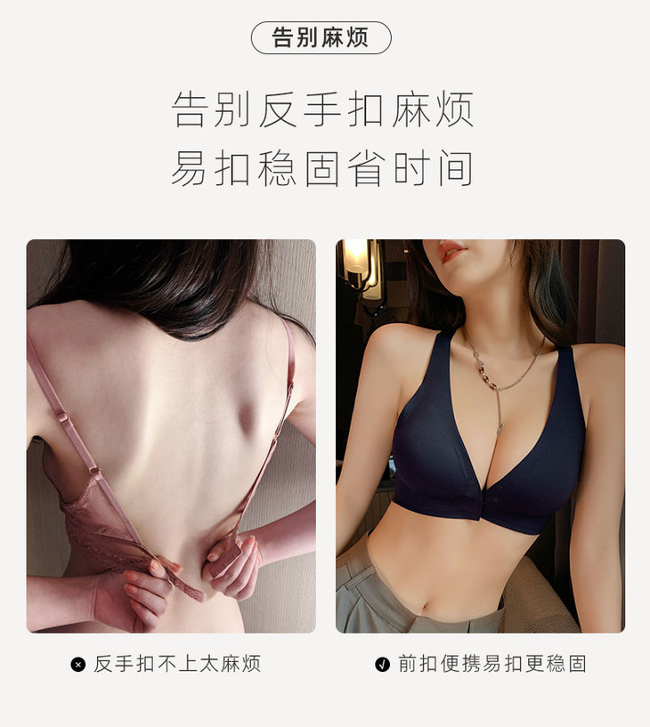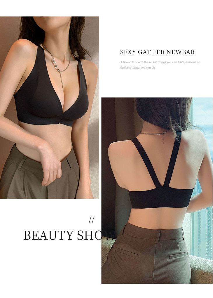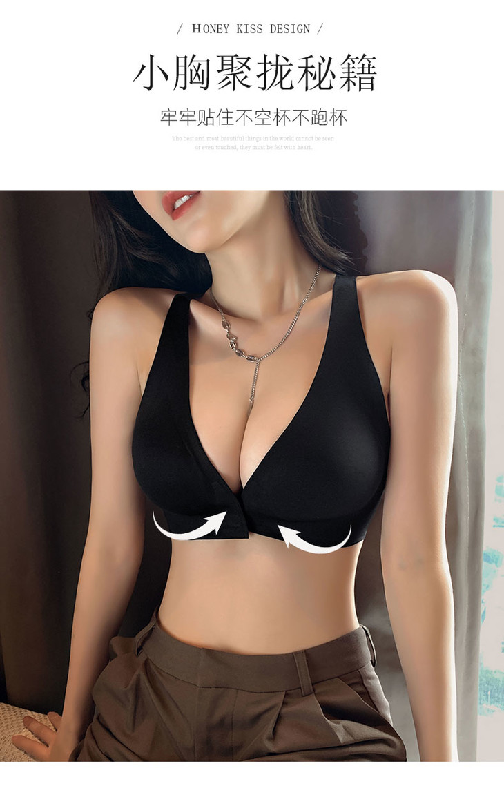 (两件立减20,加购物车自动满减)【有力承托 一扣即聚】深V前扣美背内衣 一片式无痕 穿衣无感 无钢圈收副乳