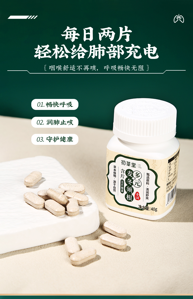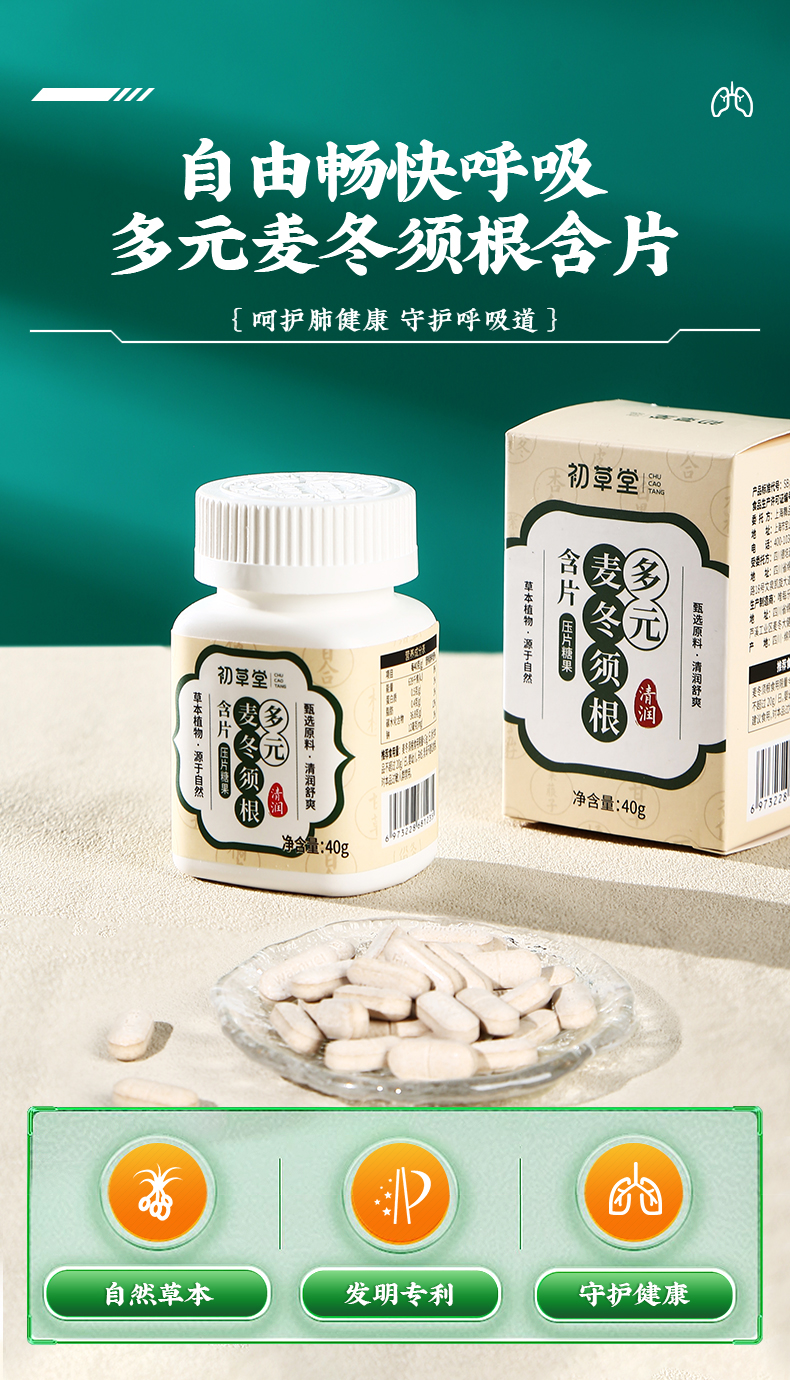 【买2送1 买3送2】初草堂多元麦冬须根含片 北京大学药学院研发 华西医院临床验证 15味草本 药食同源 40粒/瓶