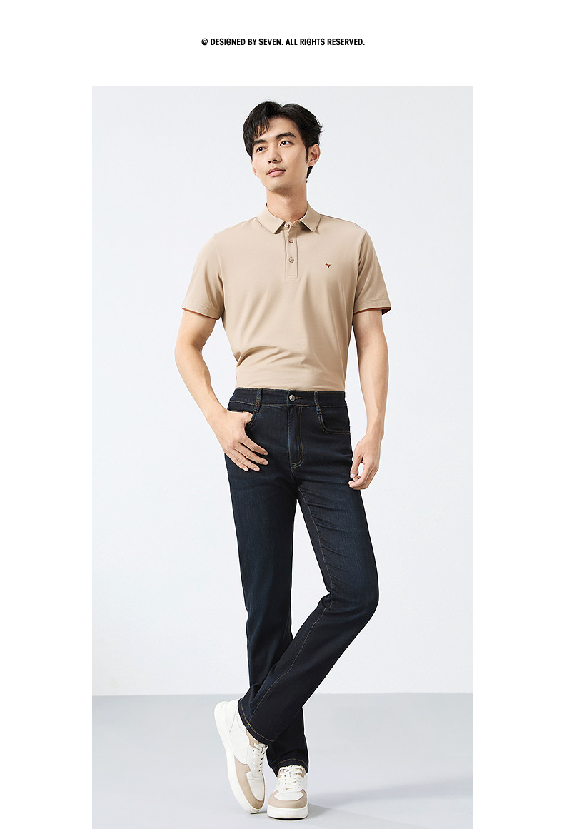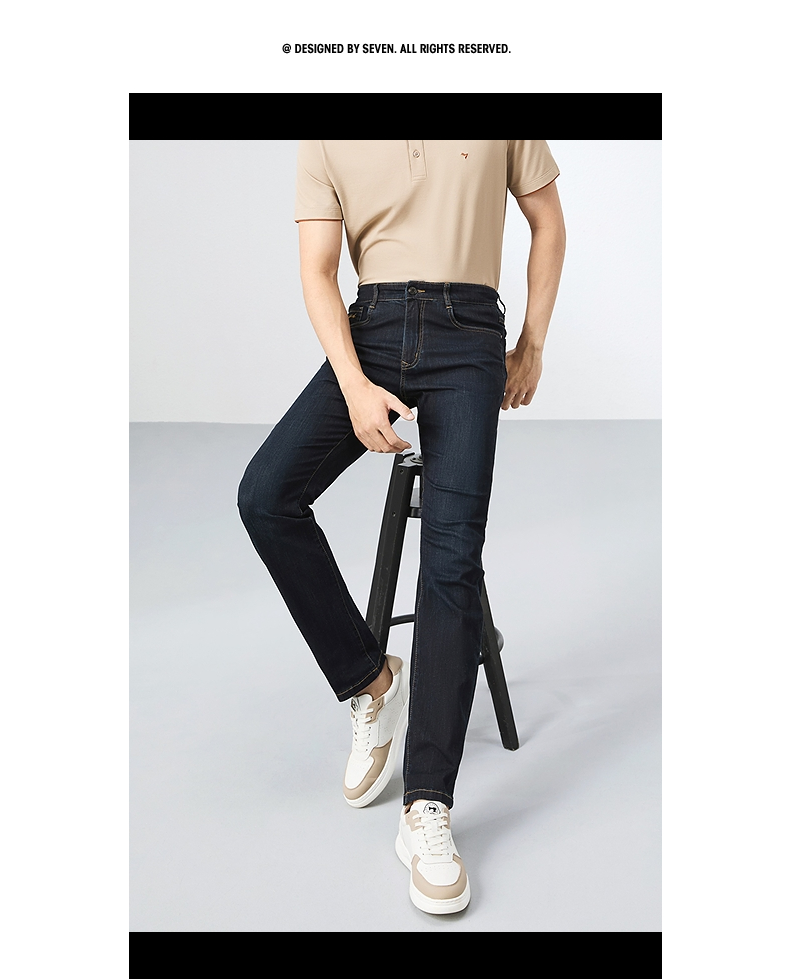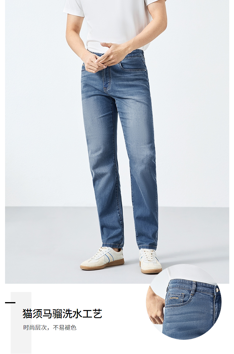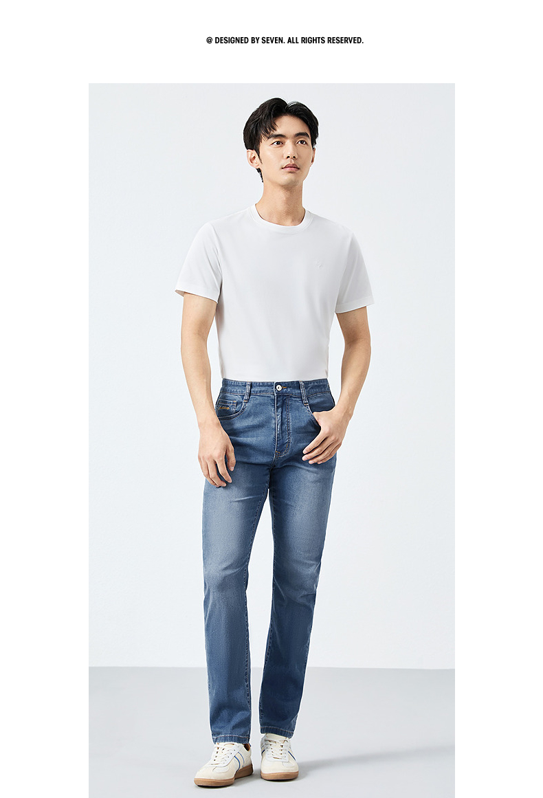 【含莱赛尔】柒牌弹力牛仔裤男2025春夏新款商务直筒耐磨水洗长裤128H72810