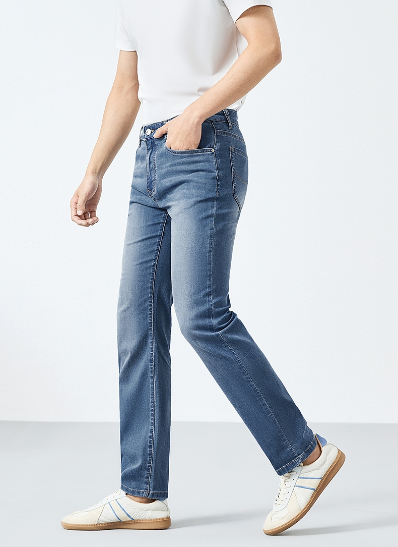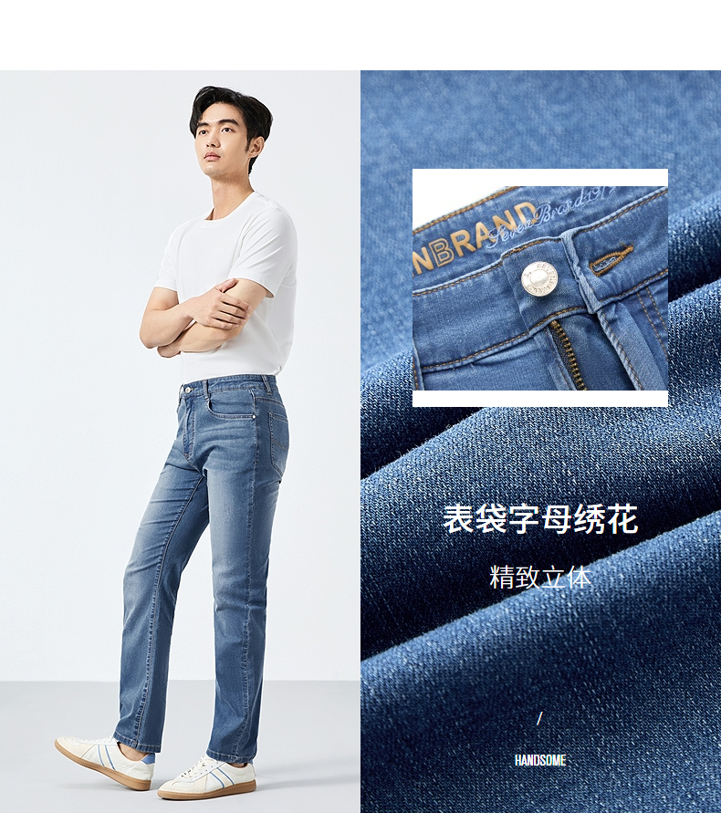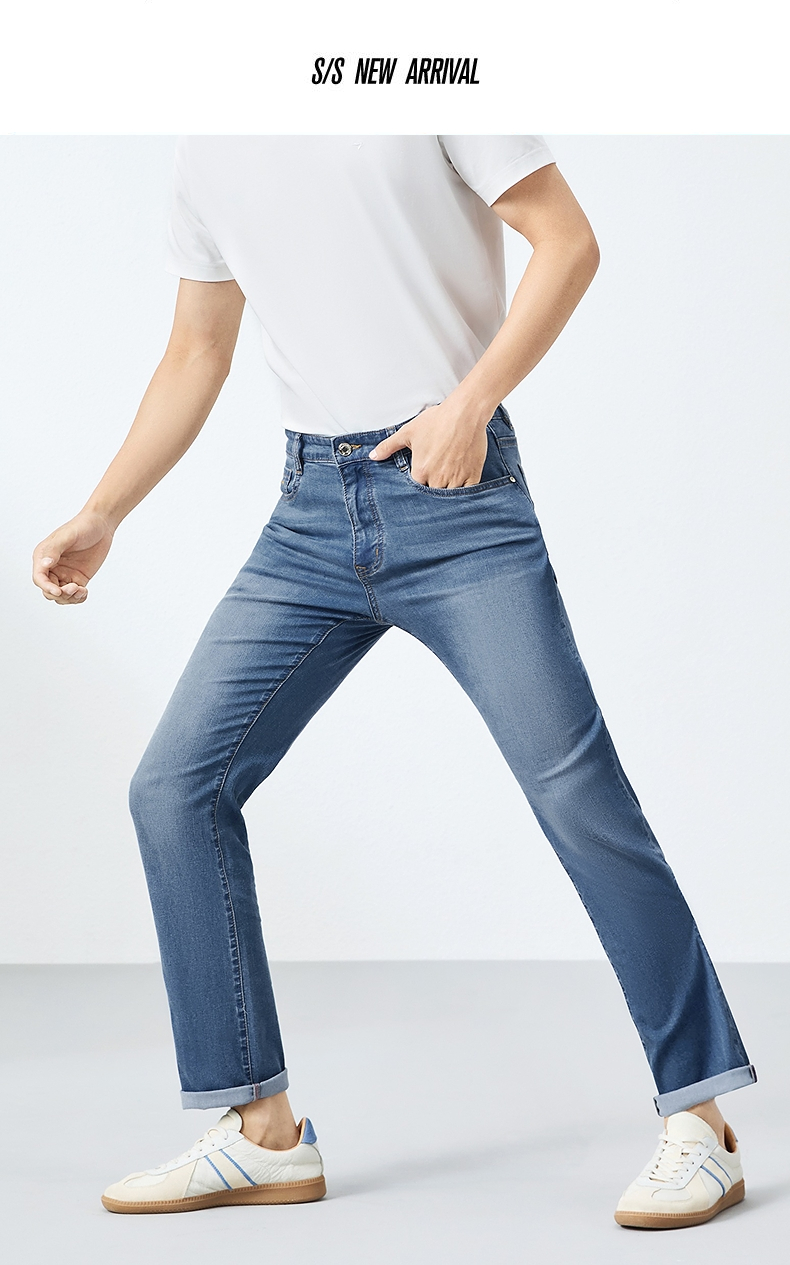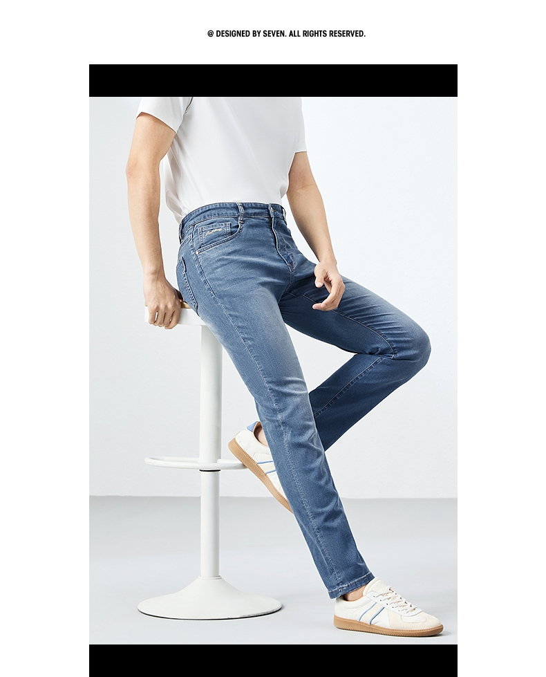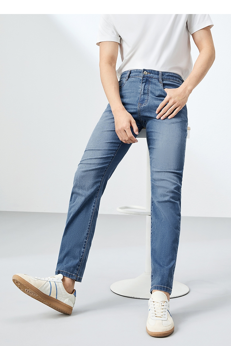 【含莱赛尔】柒牌弹力牛仔裤男2025春夏新款商务直筒耐磨水洗长裤128H72810