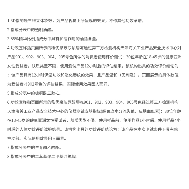 稚优泉玻尿酸唇冻精华口红唇釉唇油唇蜜彩水光镜面保湿滋润修护女