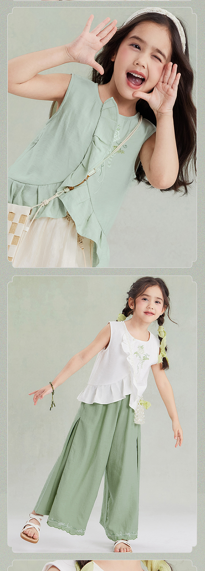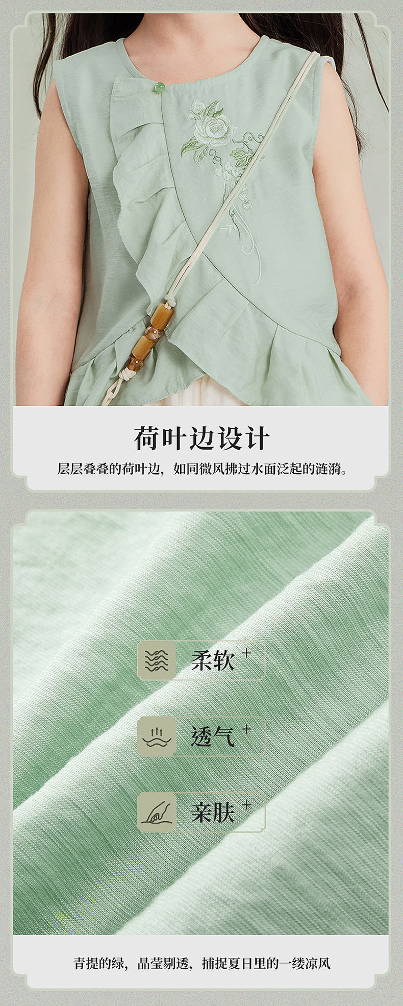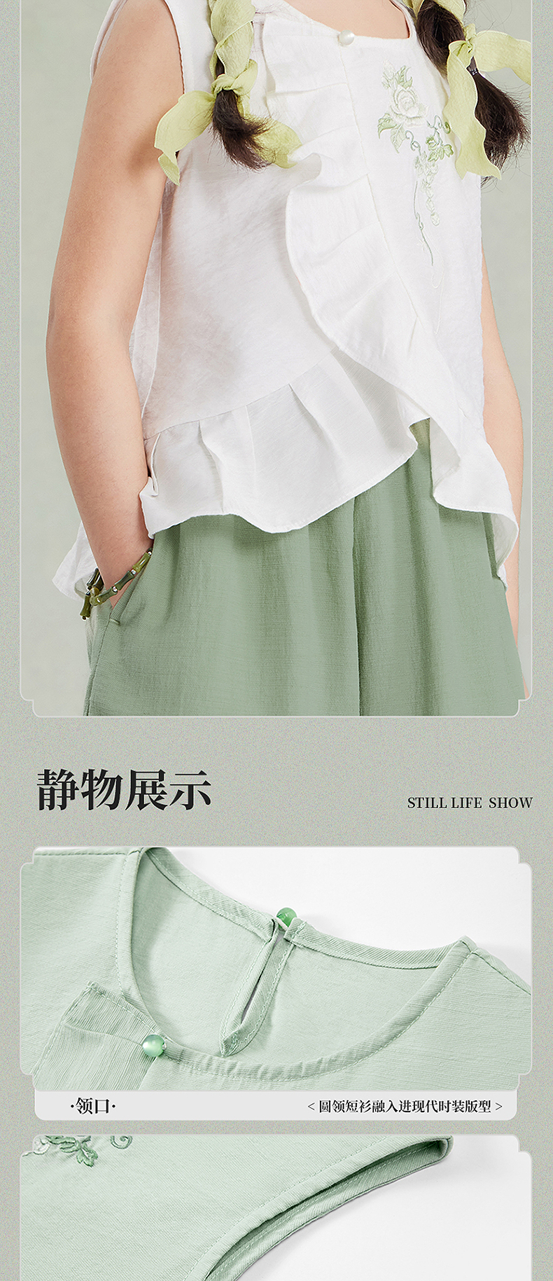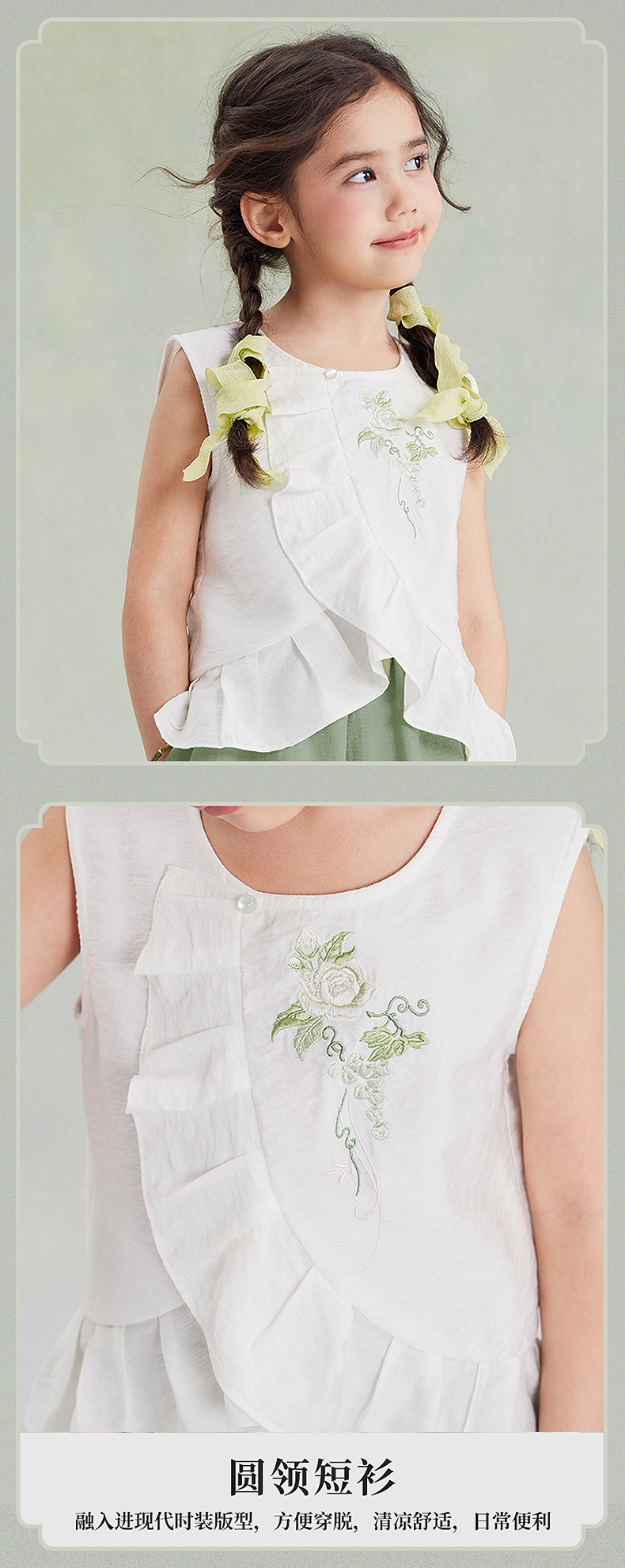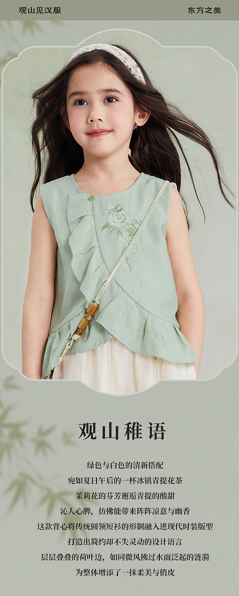 笛莎Deesha观山见女童背心2025夏季女童汉服圆领短衫
