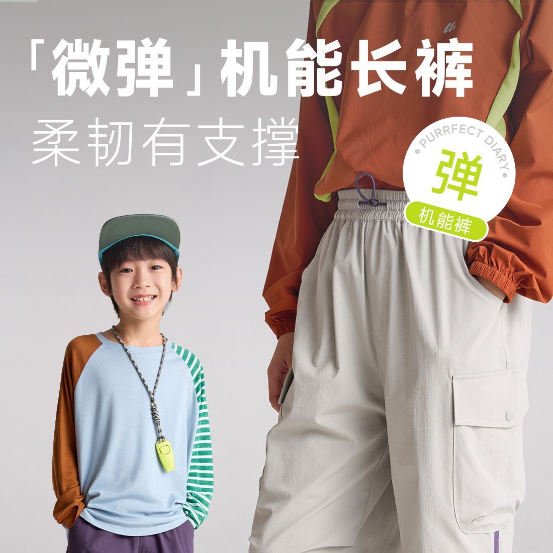 【咕噜日记】儿童机能裤2025秋季男童口袋工装裤束脚直筒长裤不易皱PQK2503