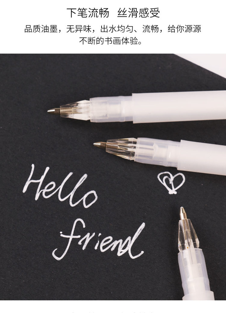 中盛 手绘高光白笔绘画笔水性油漆笔 白色水彩笔DIY黑卡相册用笔