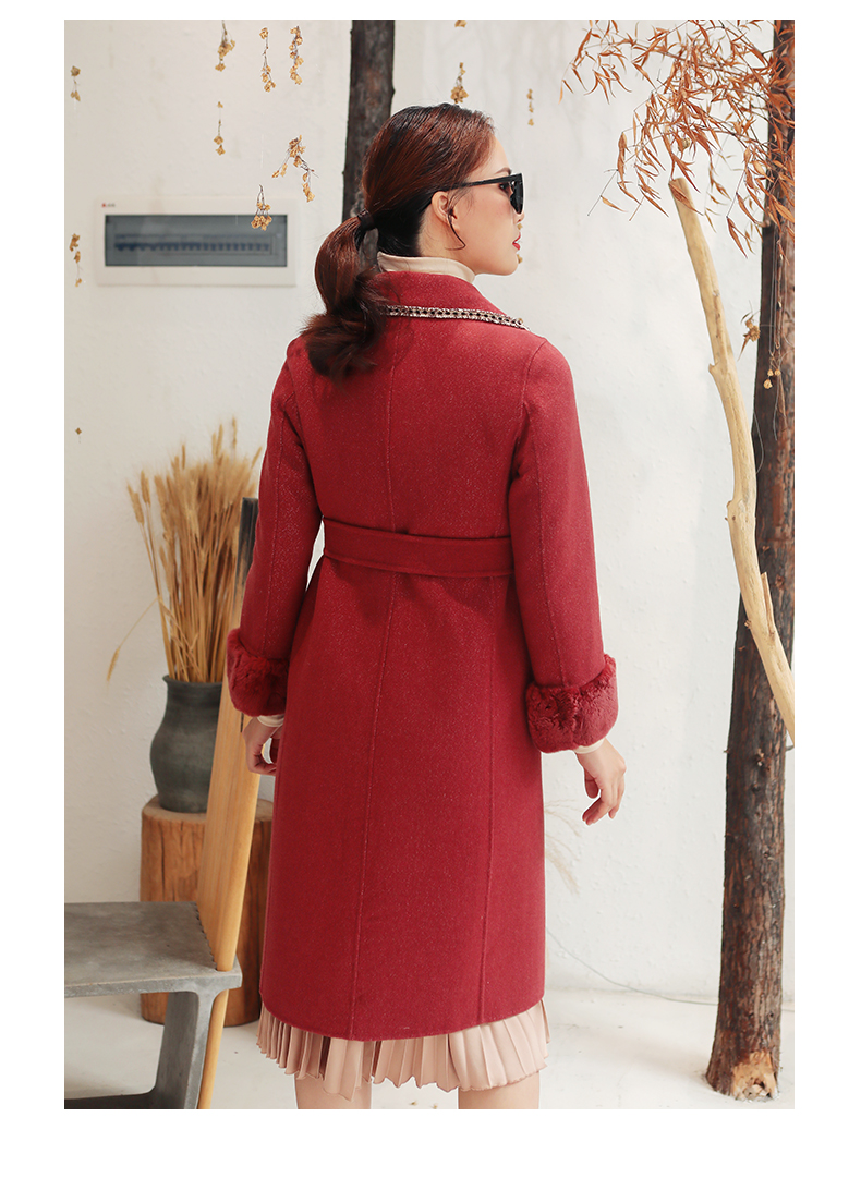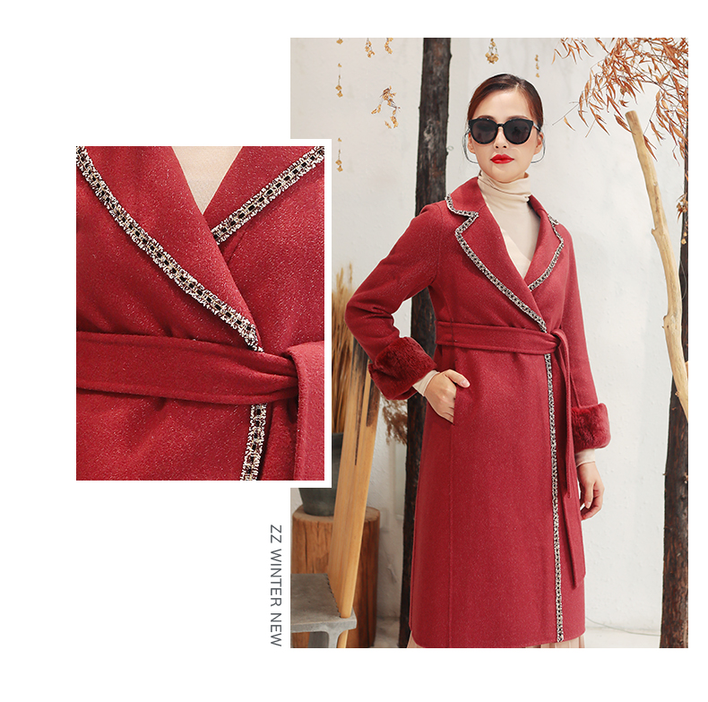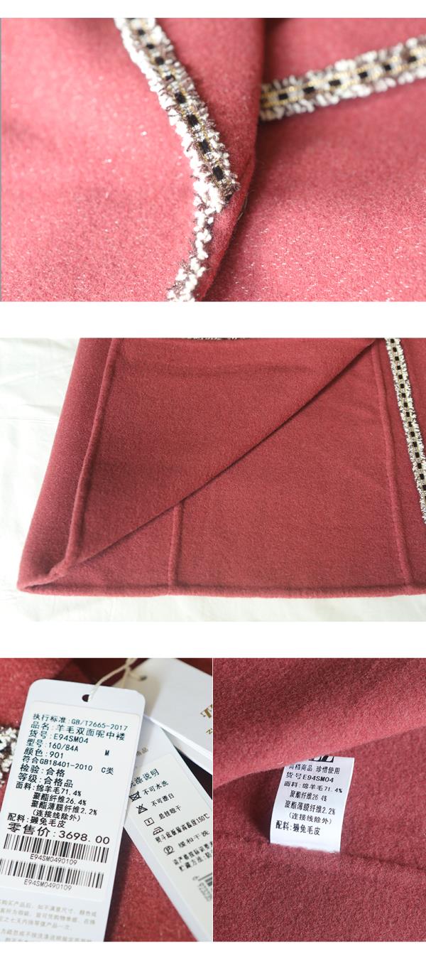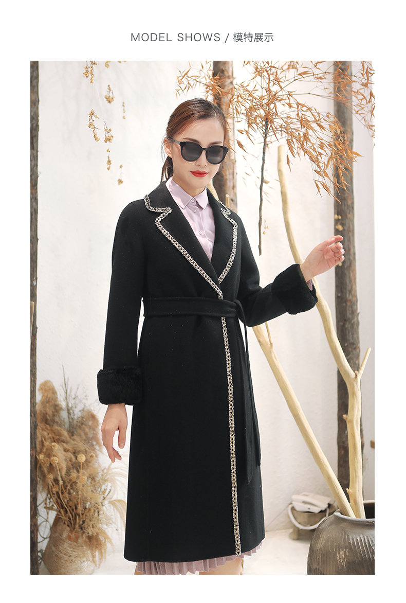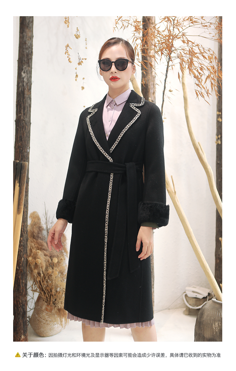 佐尔美秋冬新款气质复古收腰獭兔毛袖羊毛双面呢大衣女E94SM04