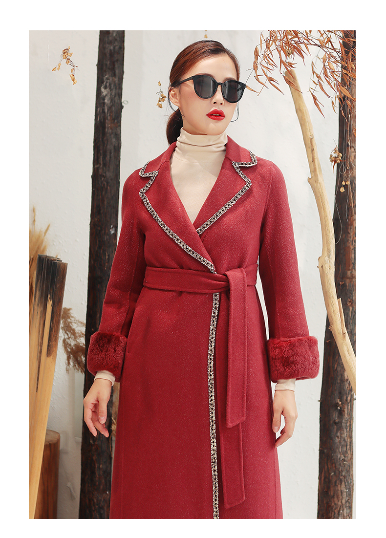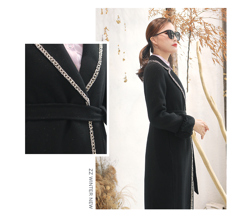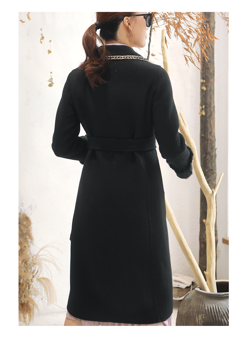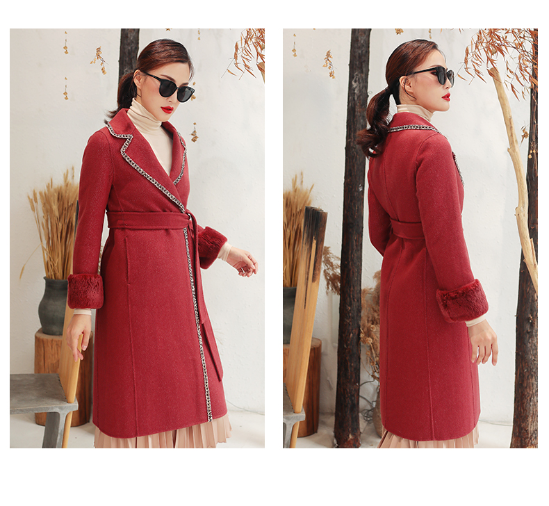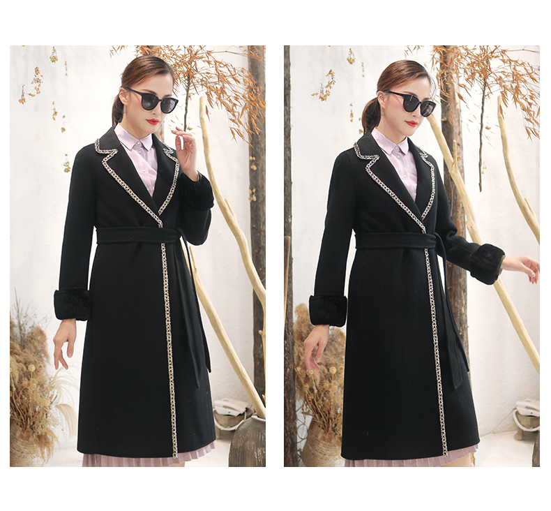 佐尔美秋冬新款气质复古收腰獭兔毛袖羊毛双面呢大衣女E94SM04