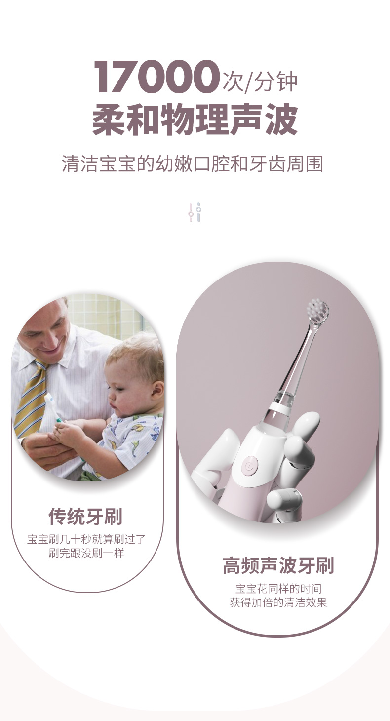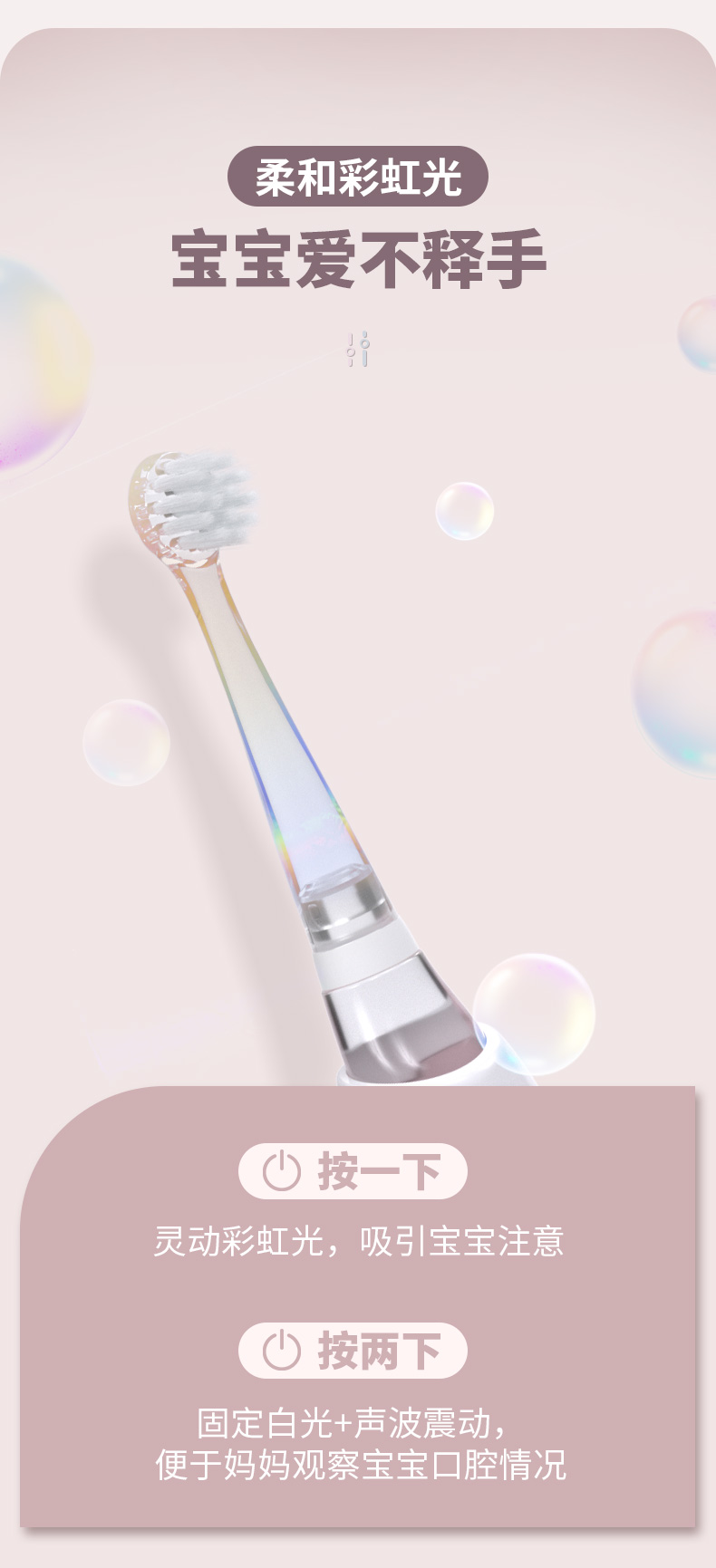 KUTA-K1儿童电动声波牙刷宝宝电动牙刷1岁半2-3-6岁以上软毛声波带LED★新增 粉&蓝糖果色