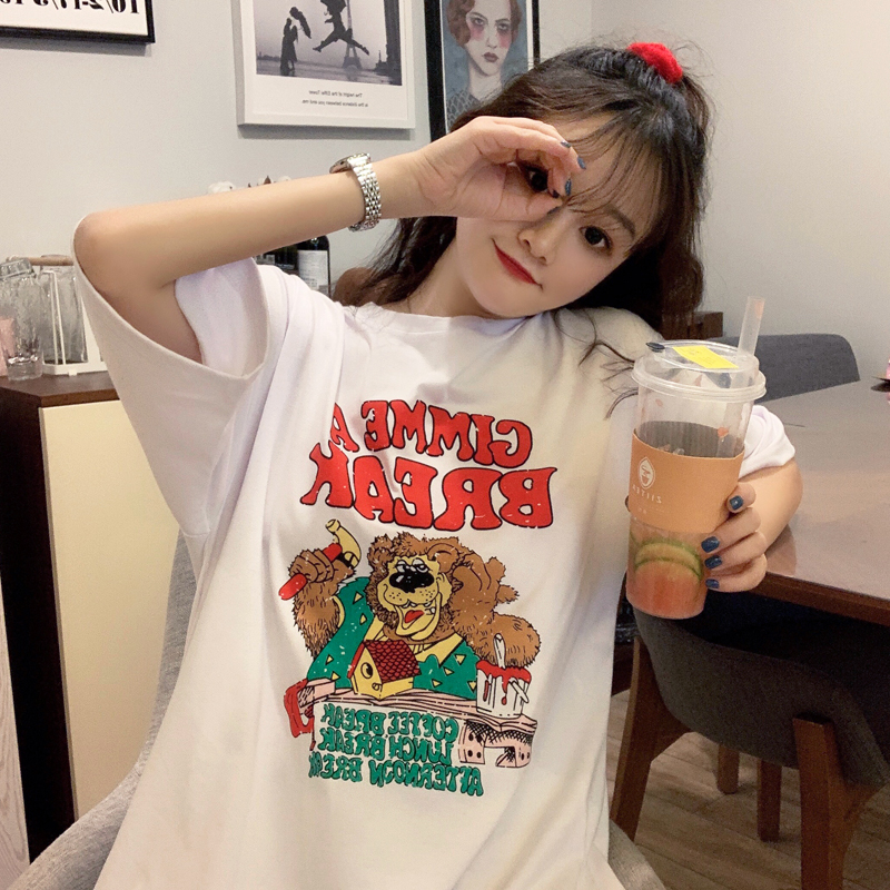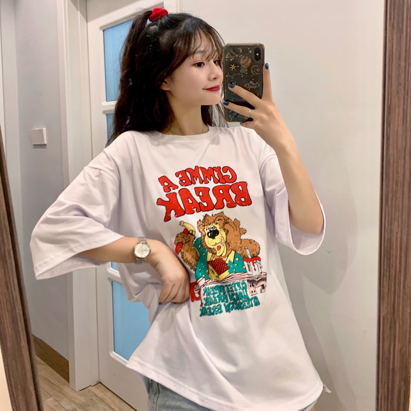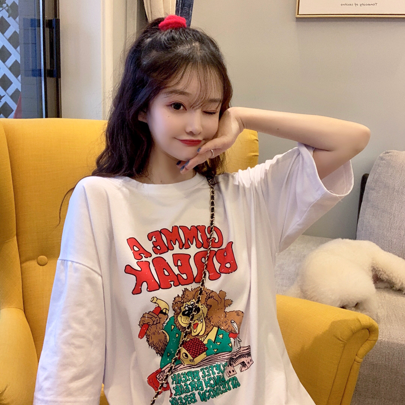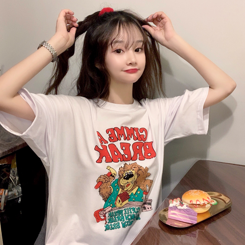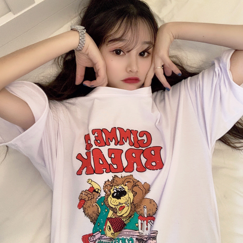 早春夏季短袖T恤女宽松韩版ins潮慵懒风bf原宿洋气mschf上衣