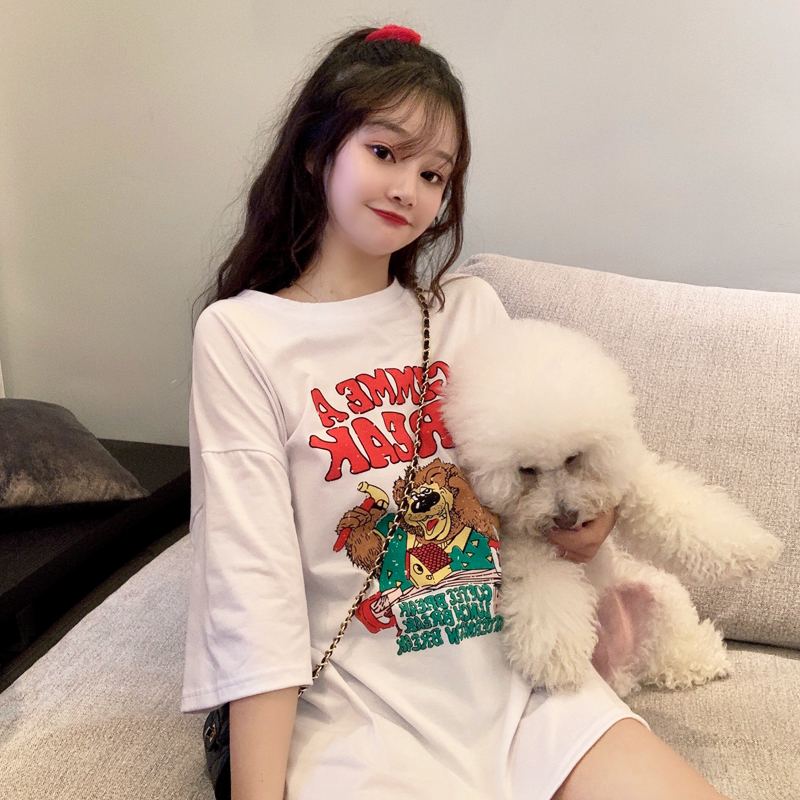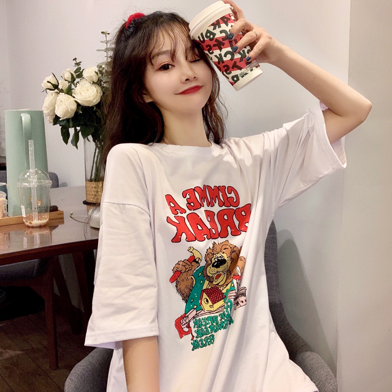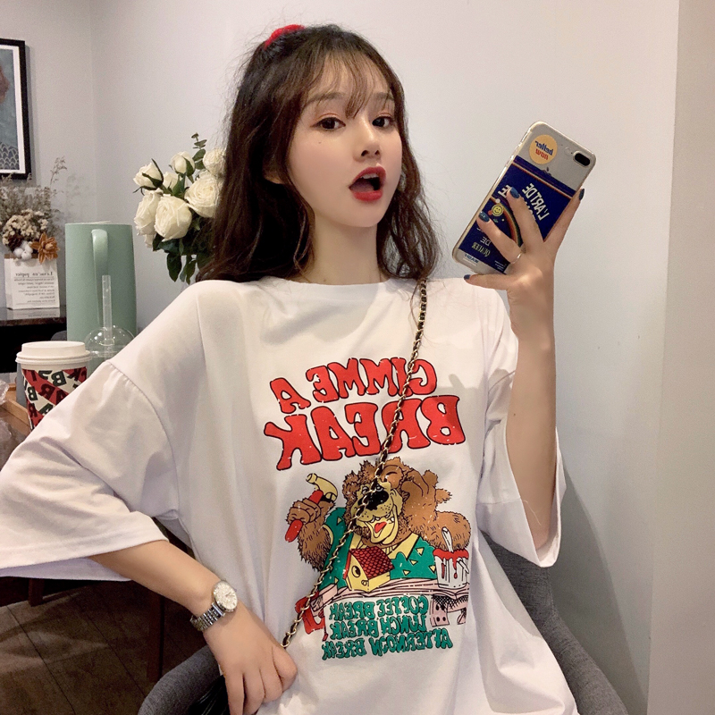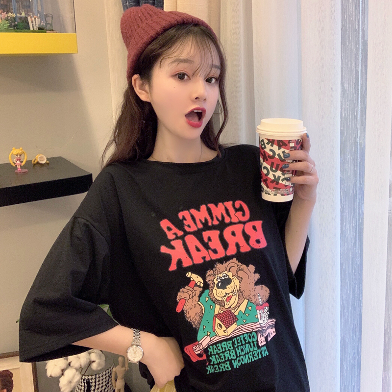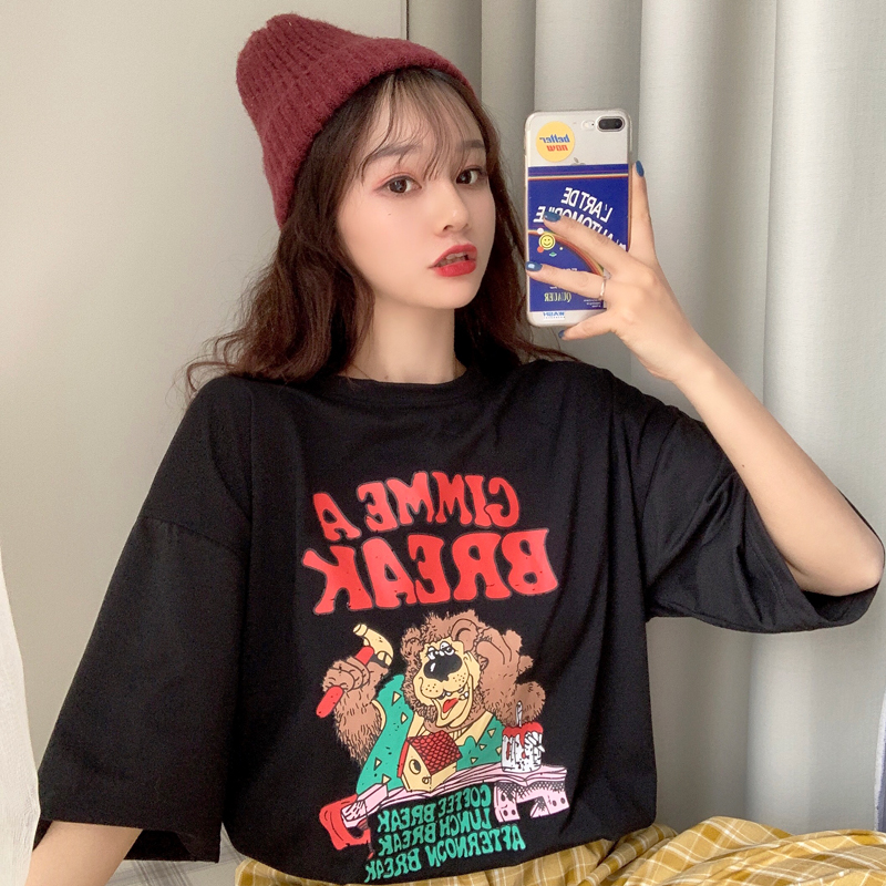 早春夏季短袖T恤女宽松韩版ins潮慵懒风bf原宿洋气mschf上衣