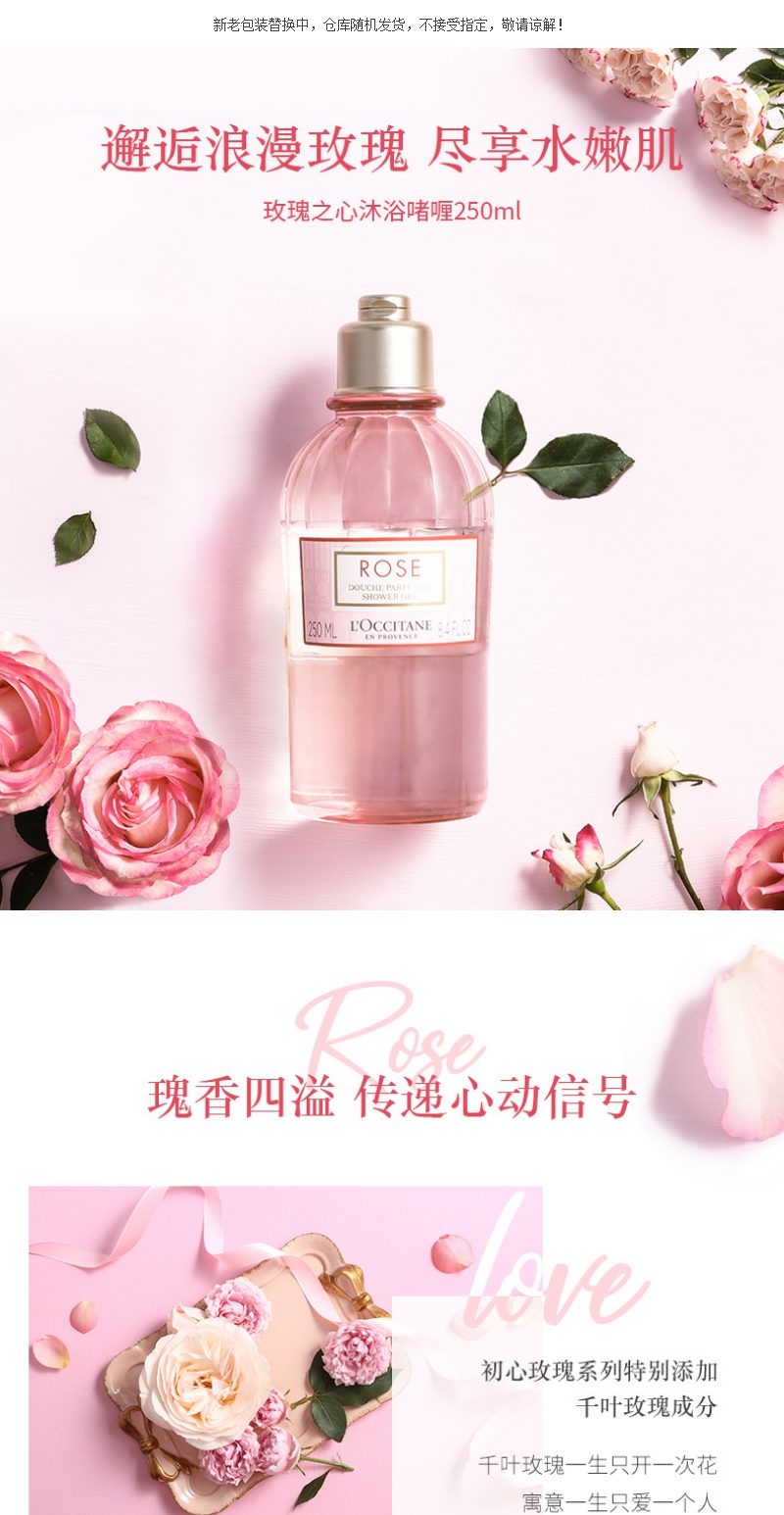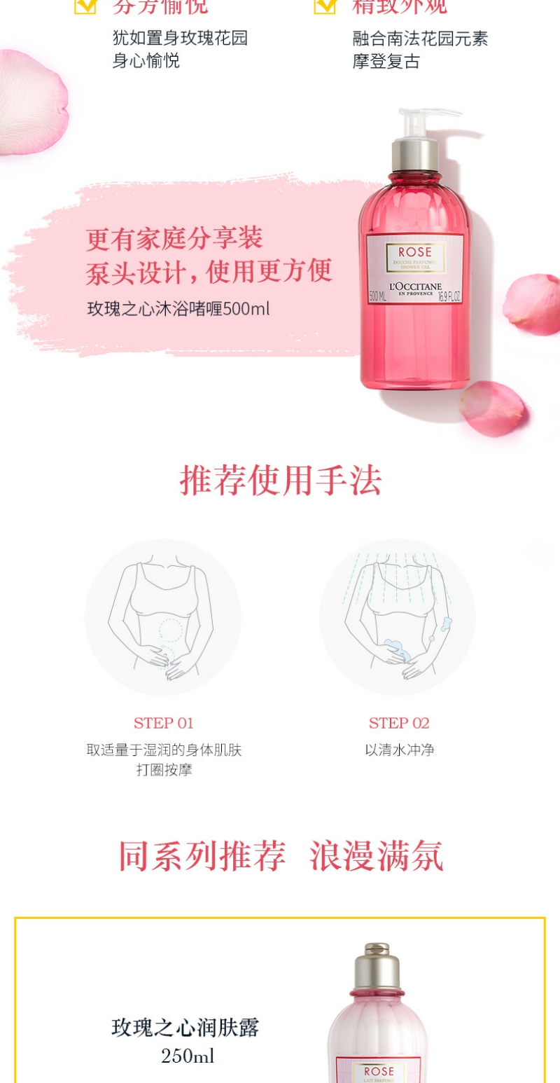【YZ】欧舒丹玫瑰之心沐浴啫喱500ml泡沫沐浴露女细腻全身清洁淡雅香体