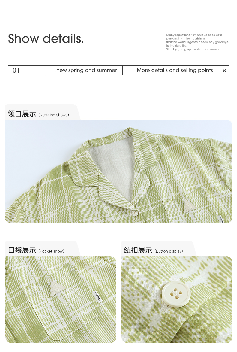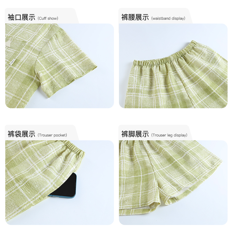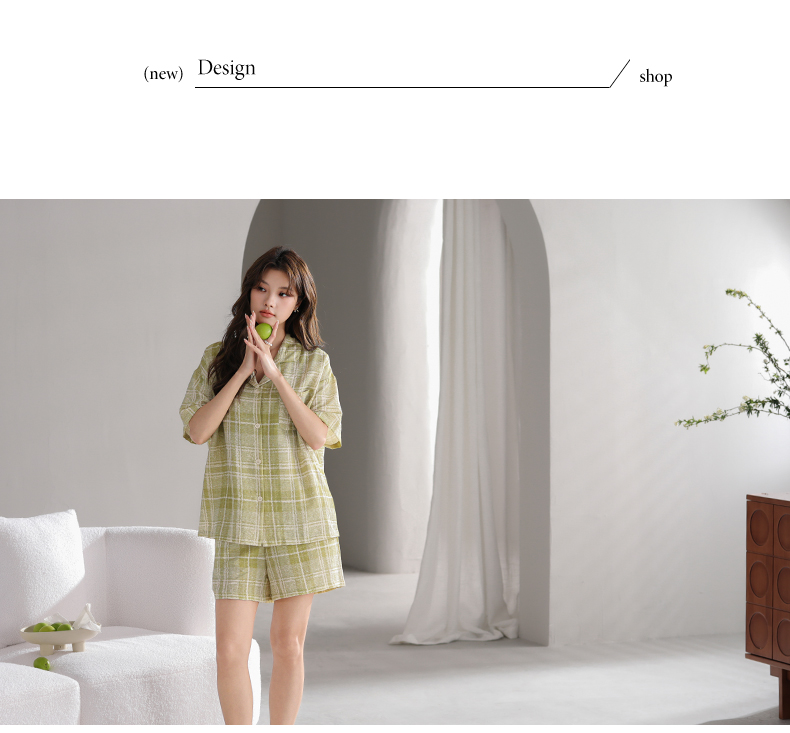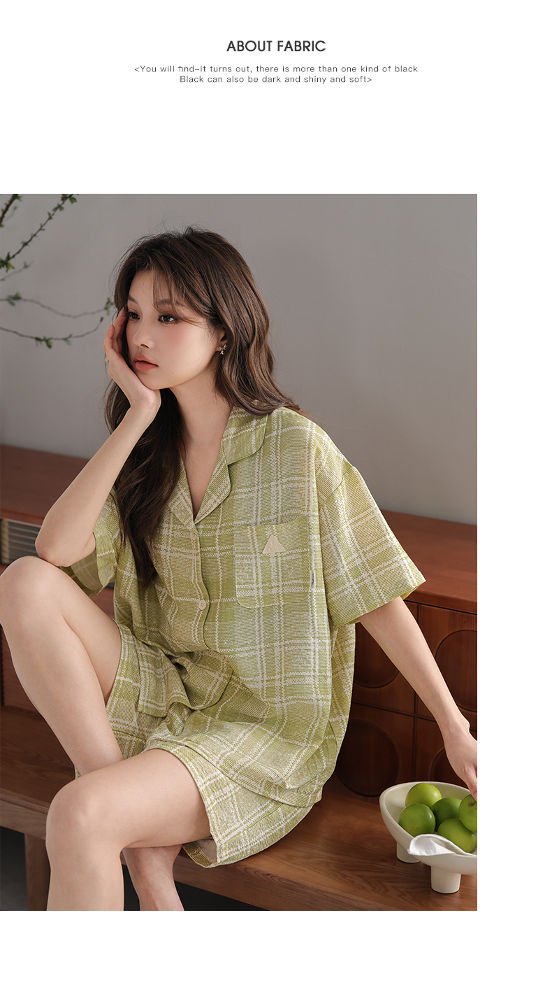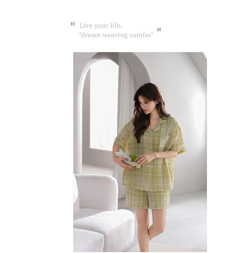 可人儿小众设计师新款泡泡绵夏季女士短袖睡衣时尚可外出家居服套